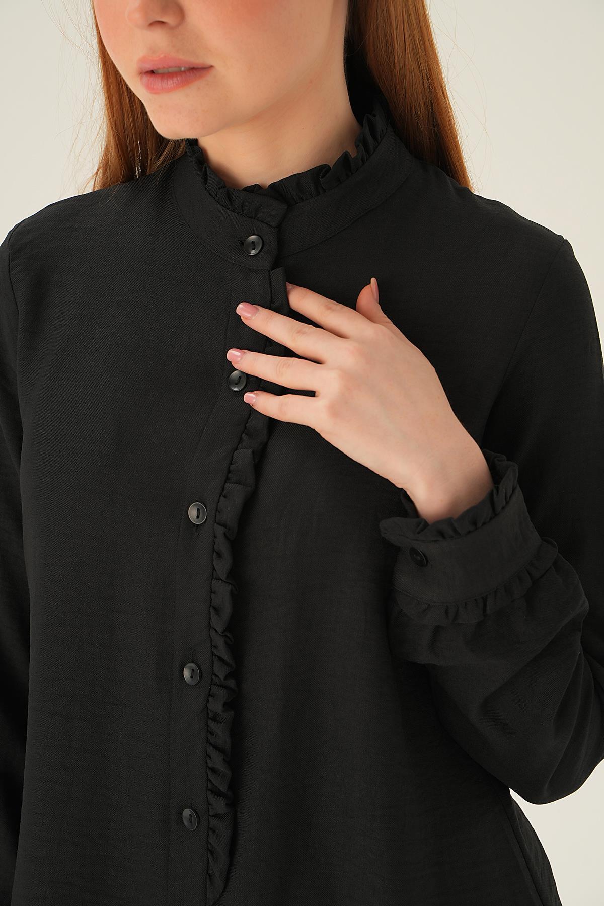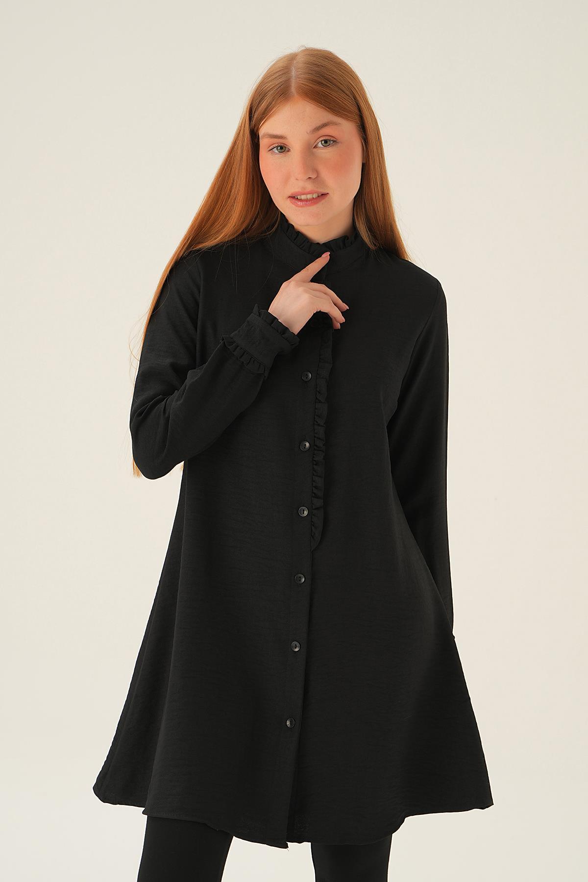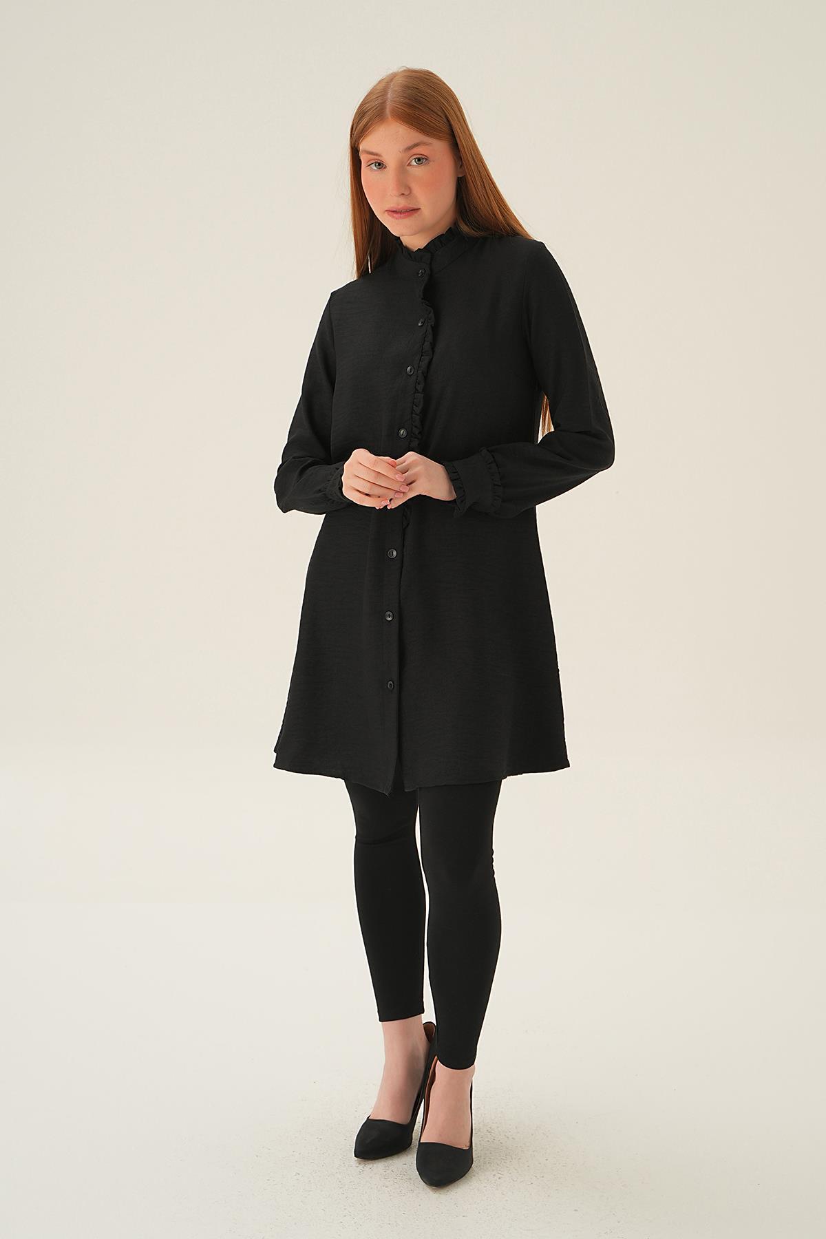 Siyah Kol Yaka Fırfır Detay Tunik 15454