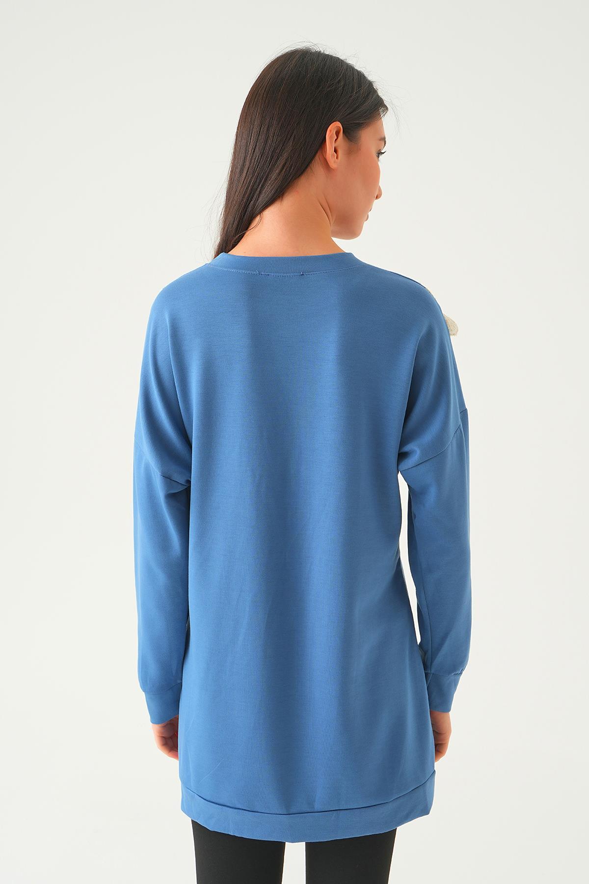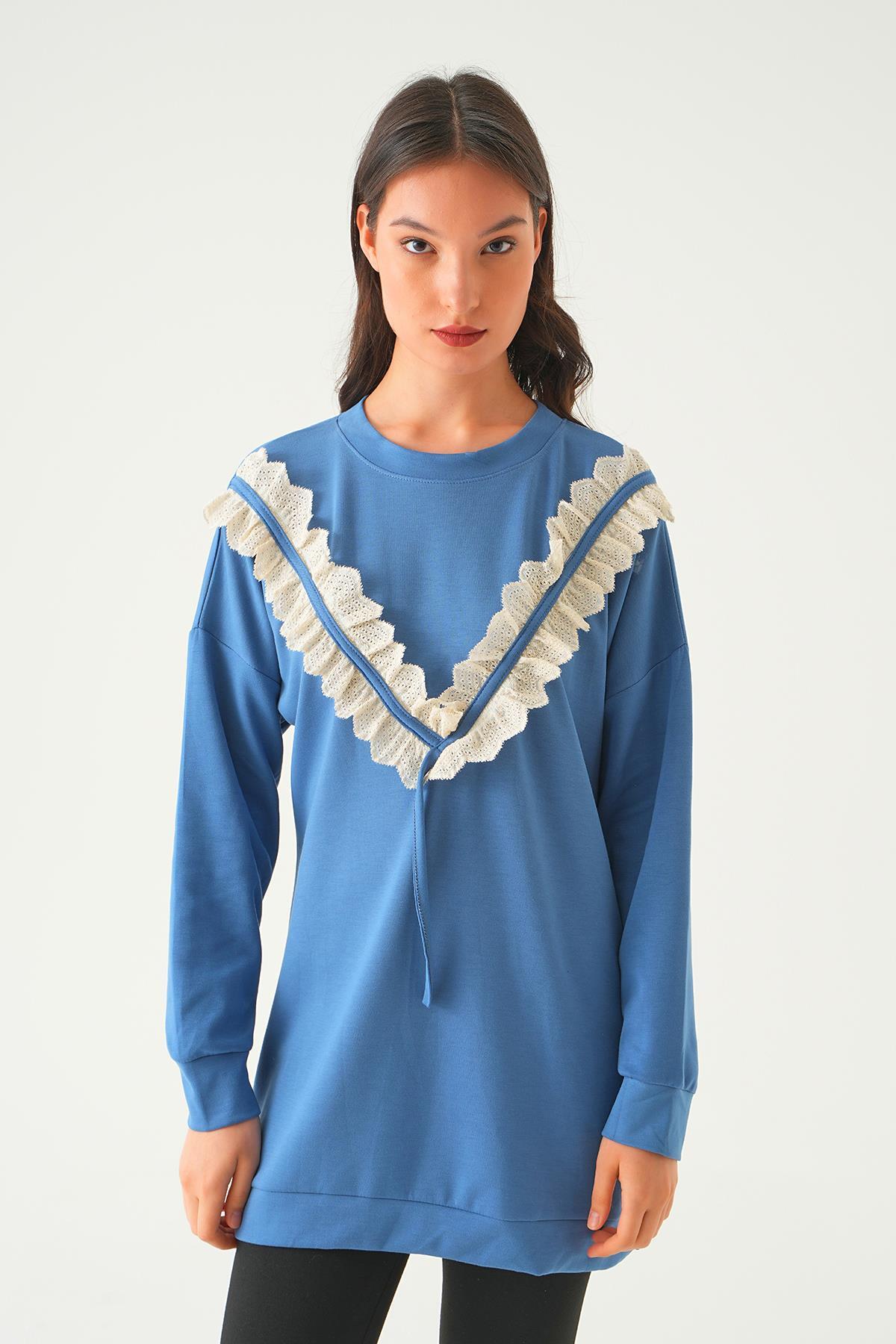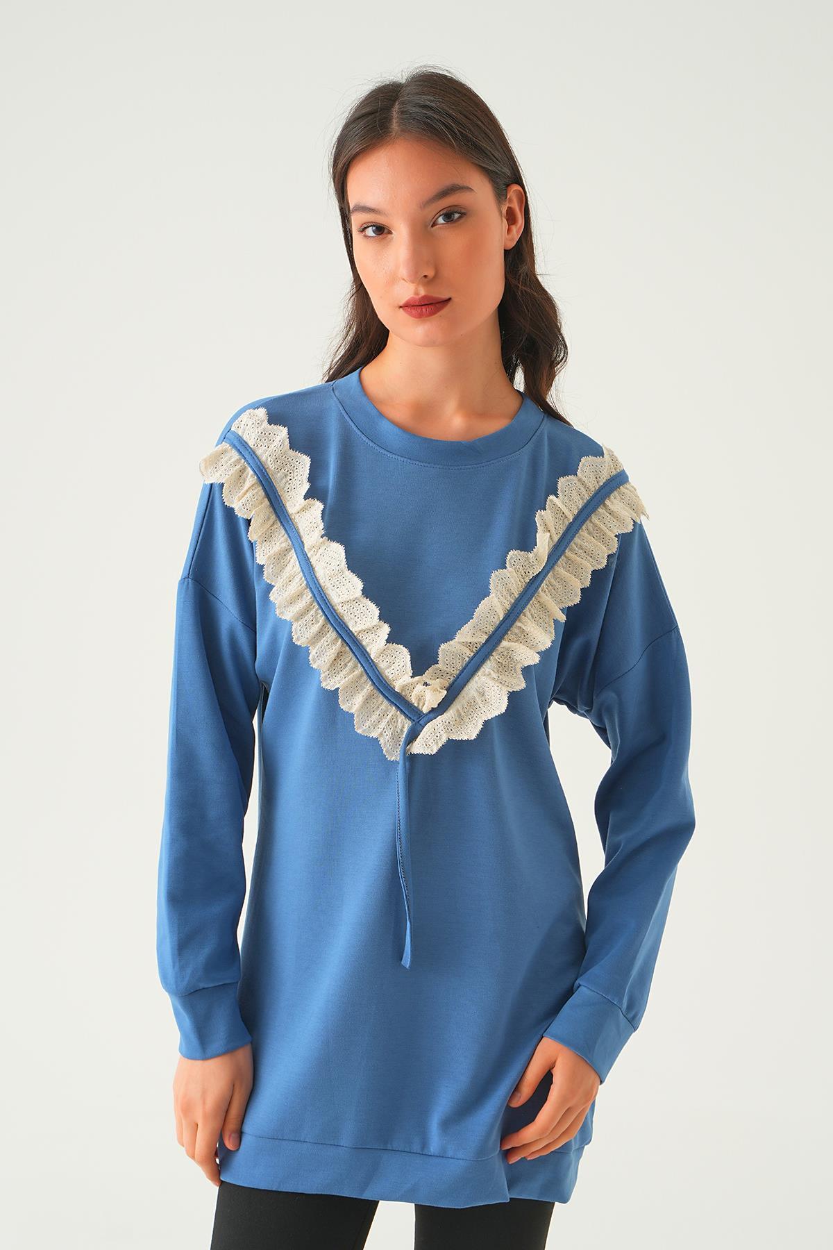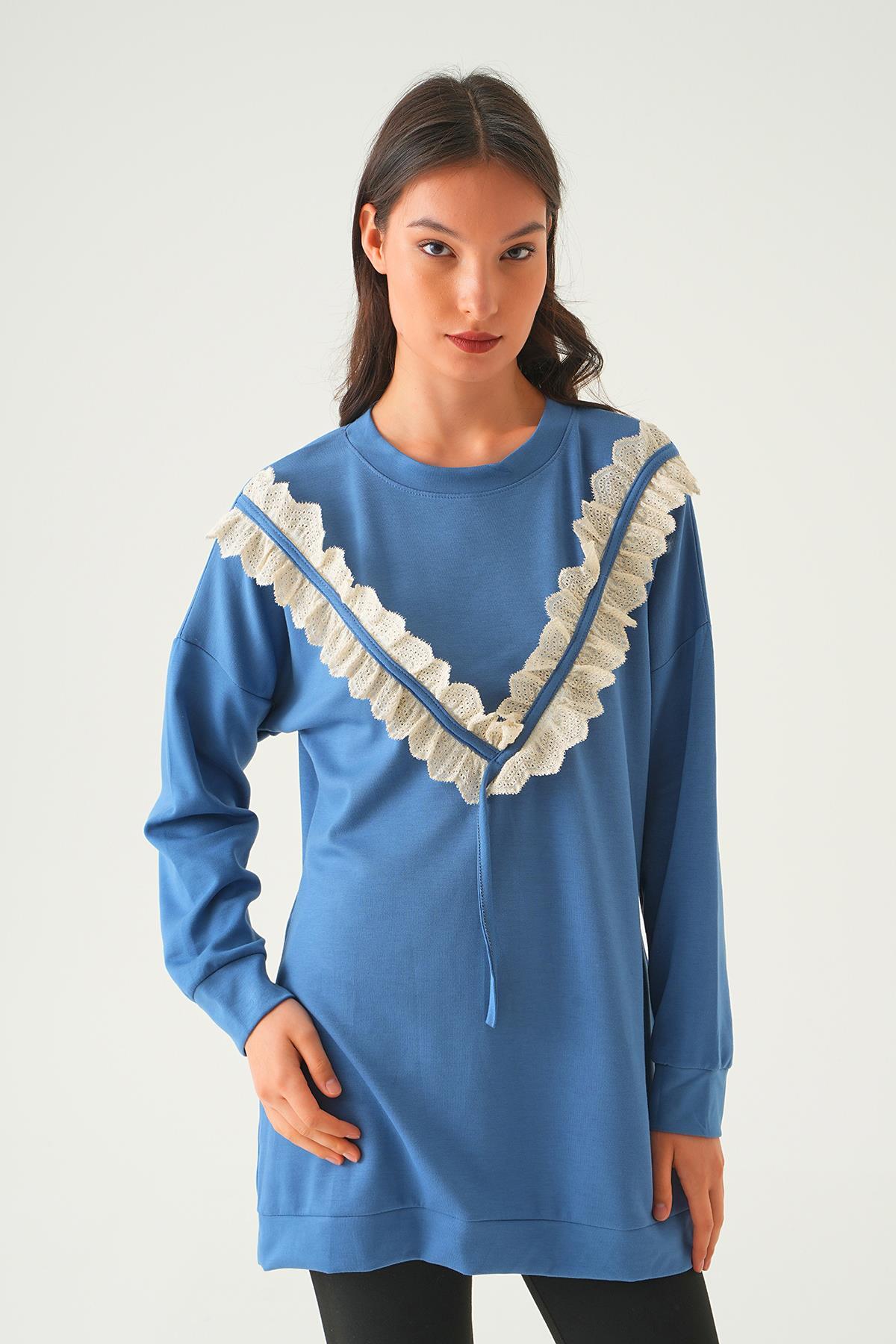 İndigo V Dantel Detay Tunik 15808