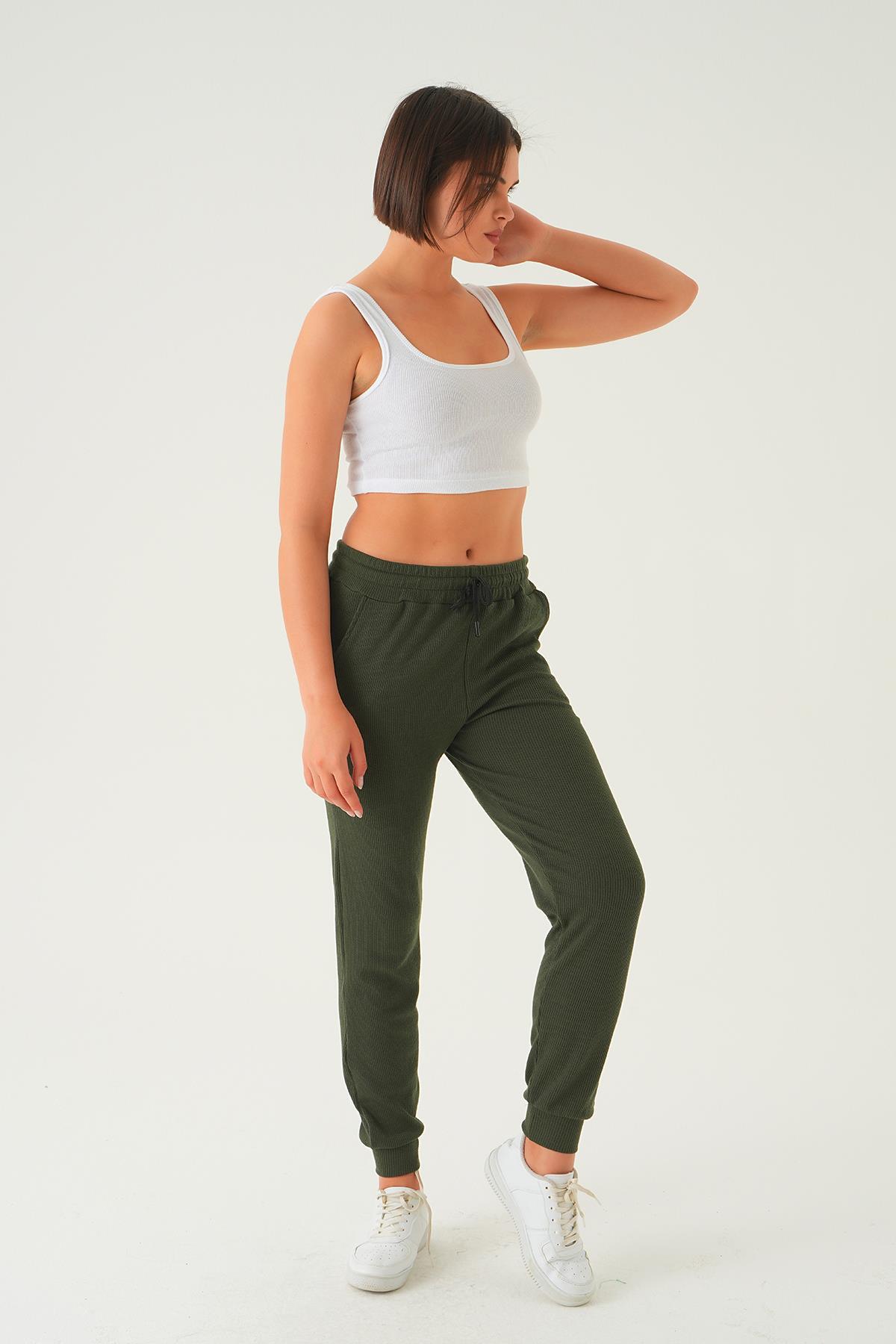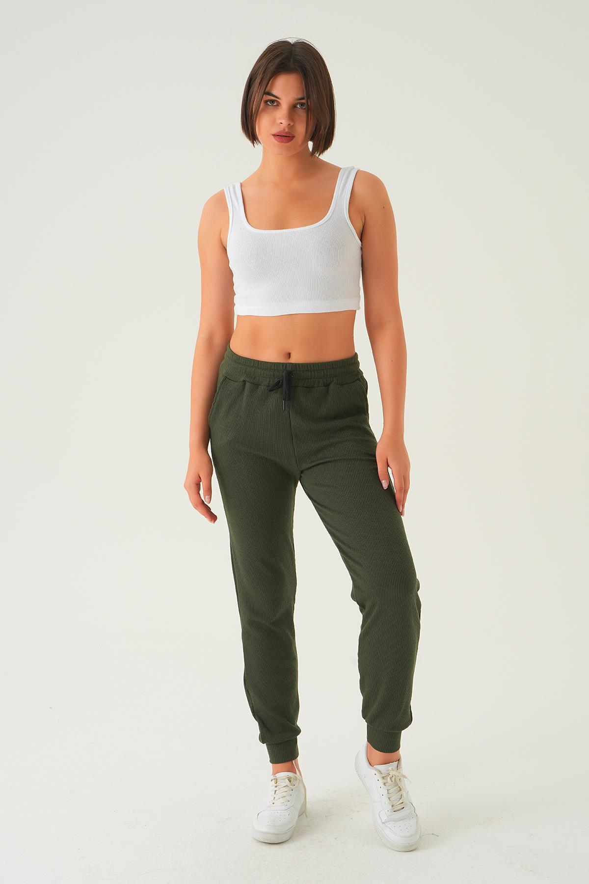 Haki Bel Bağcık Cepli Eşofman 15816