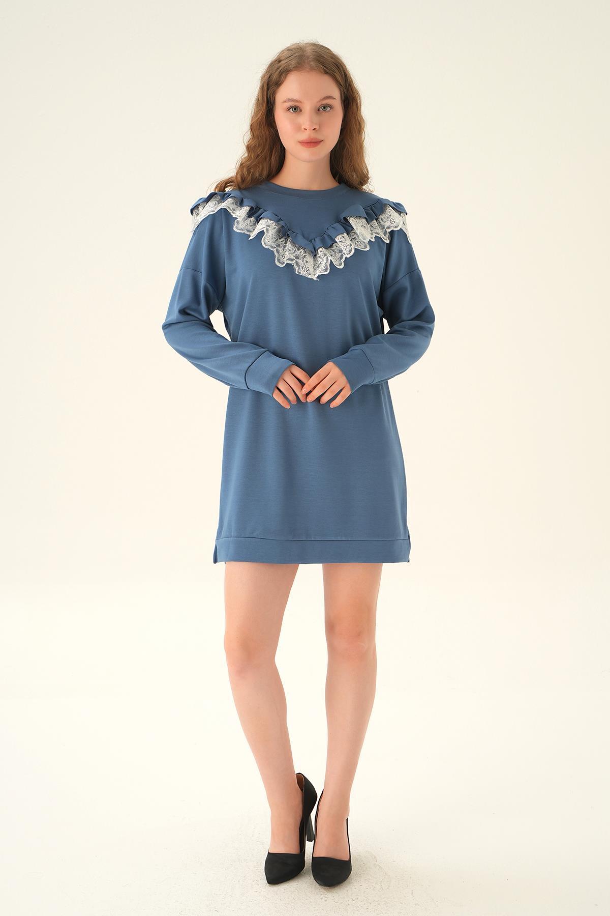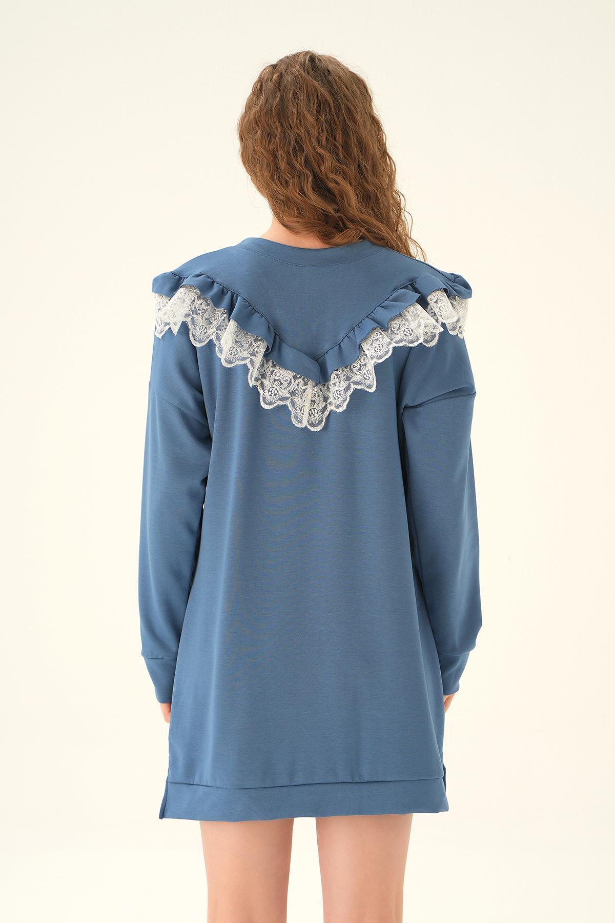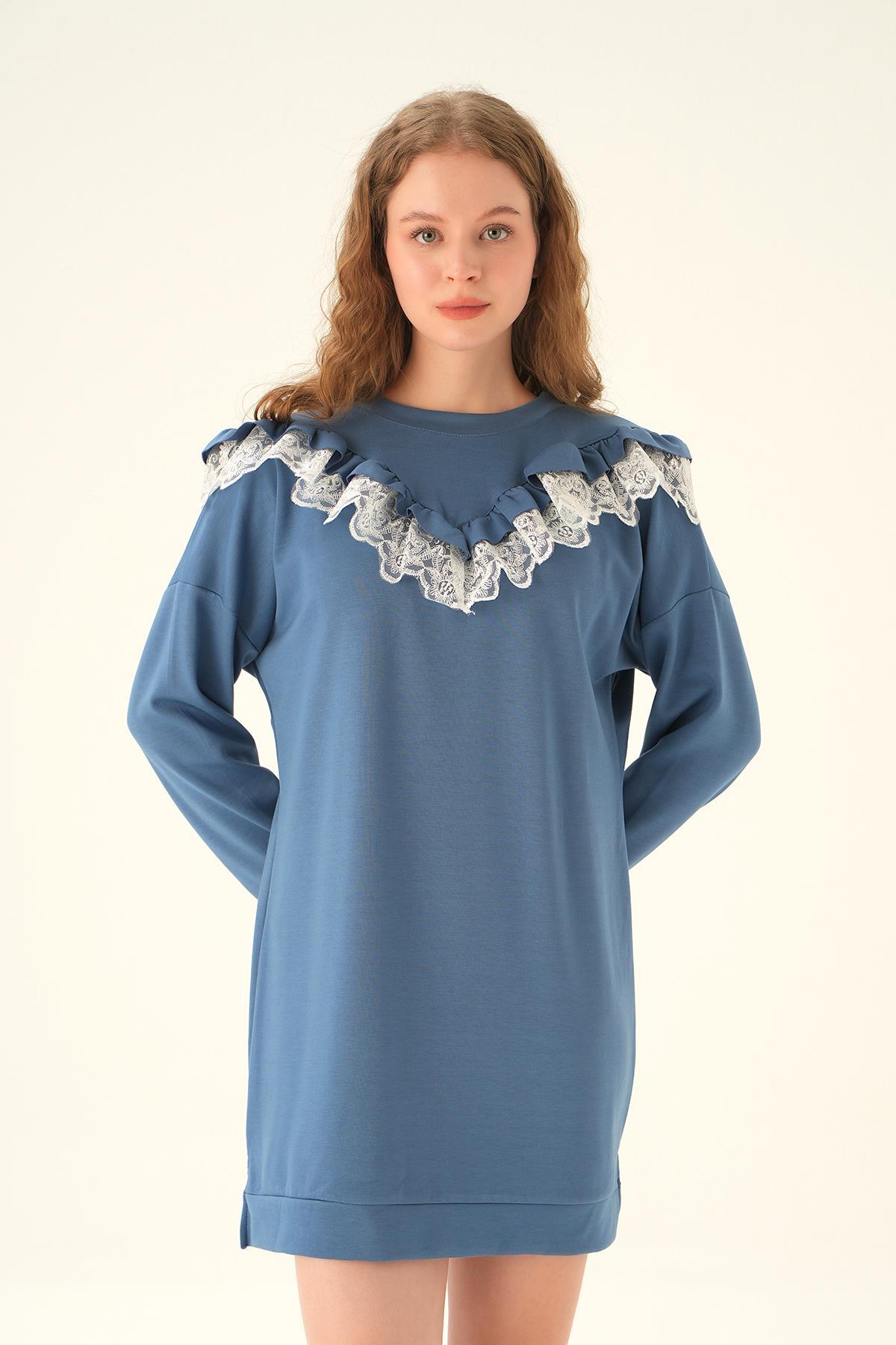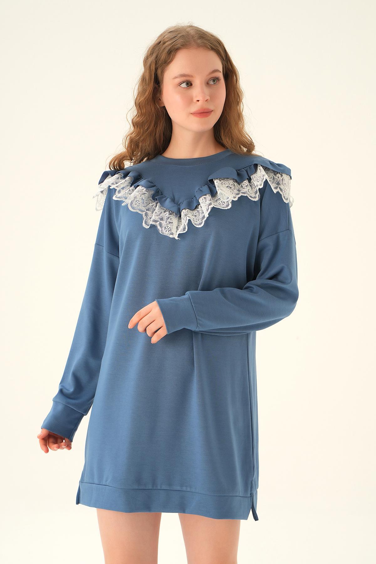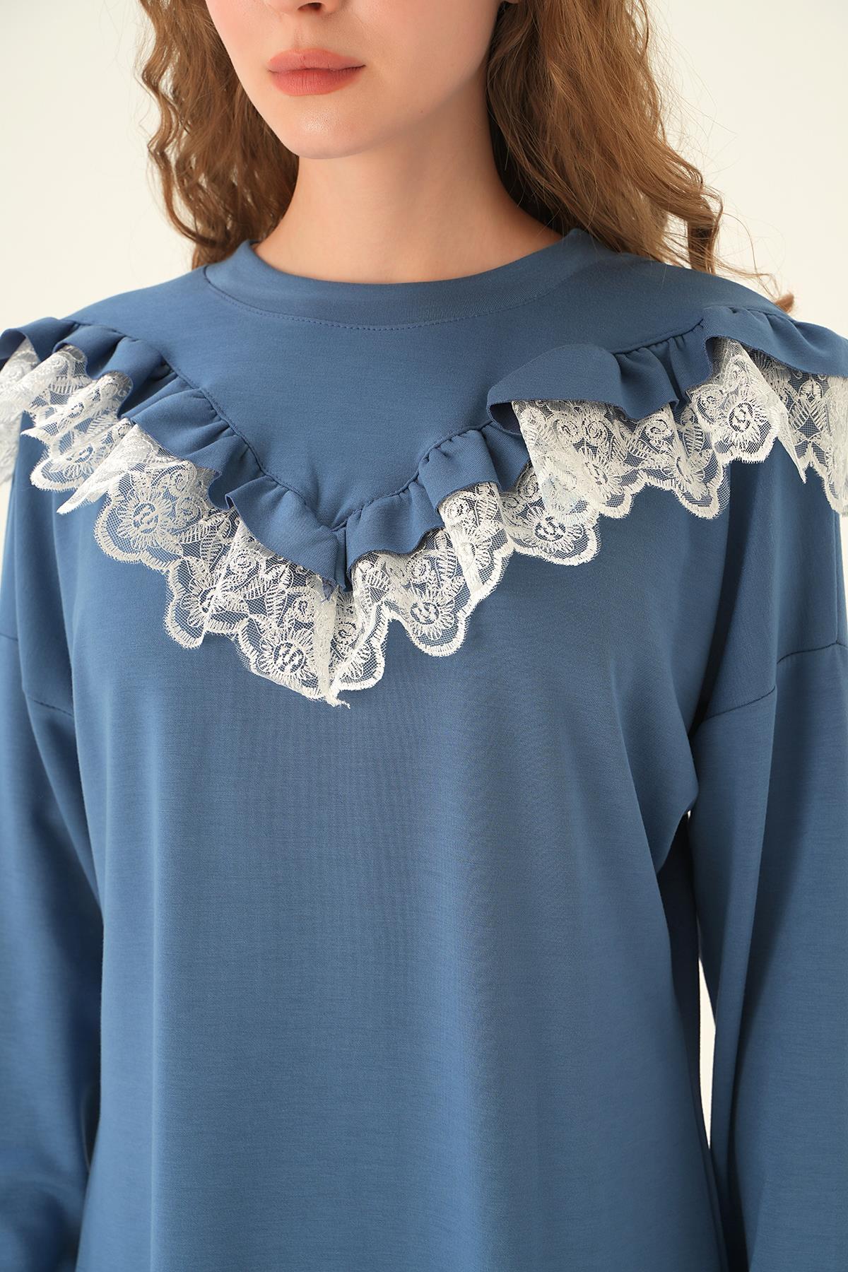 İndigo Dantel Detay Tunik 15822