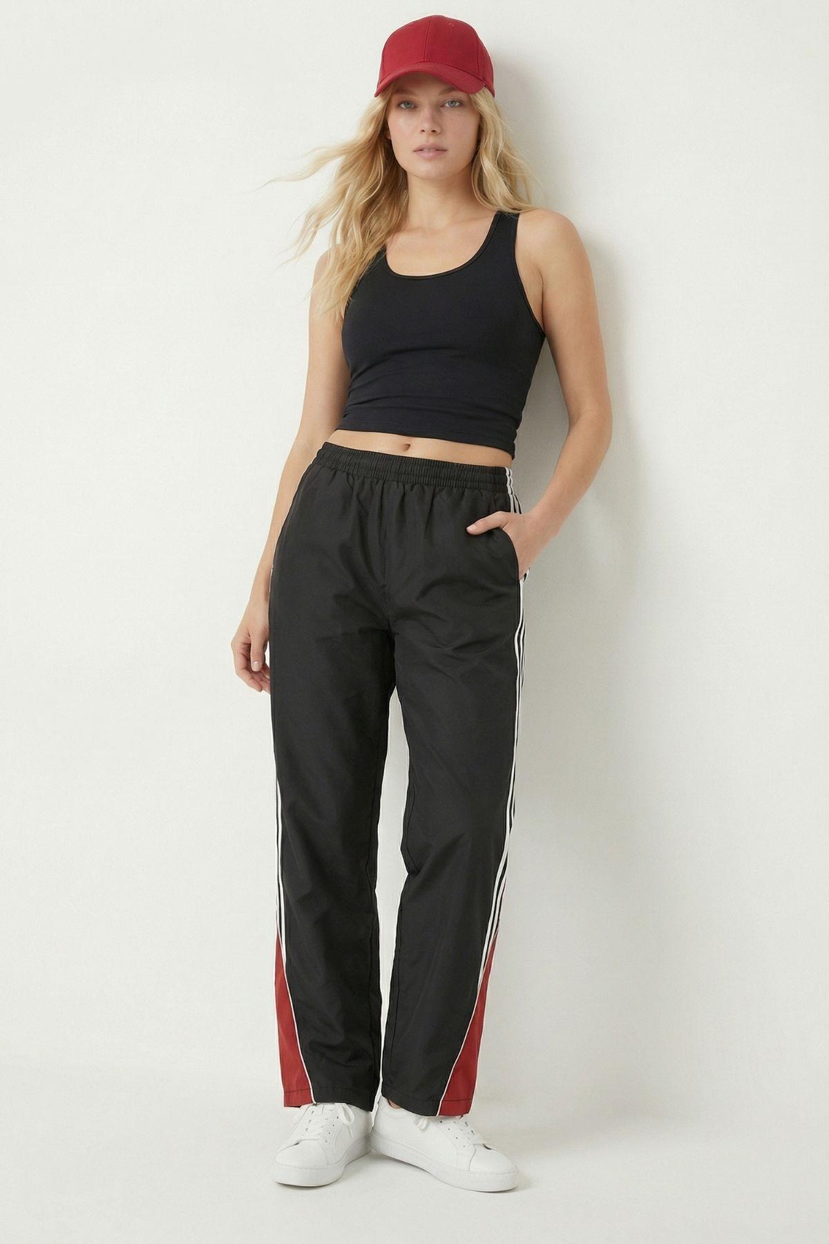 1604 Yan Şeritli Paça Lastik Eşofman Siyah