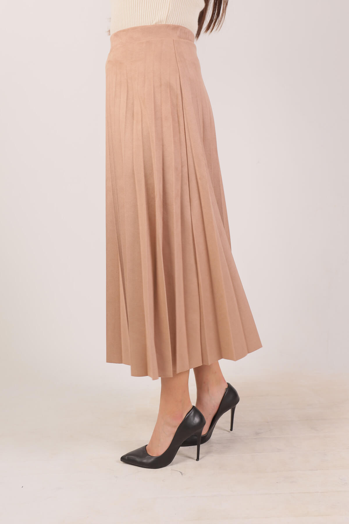 1694A Süet Pliseli Etek Vizon