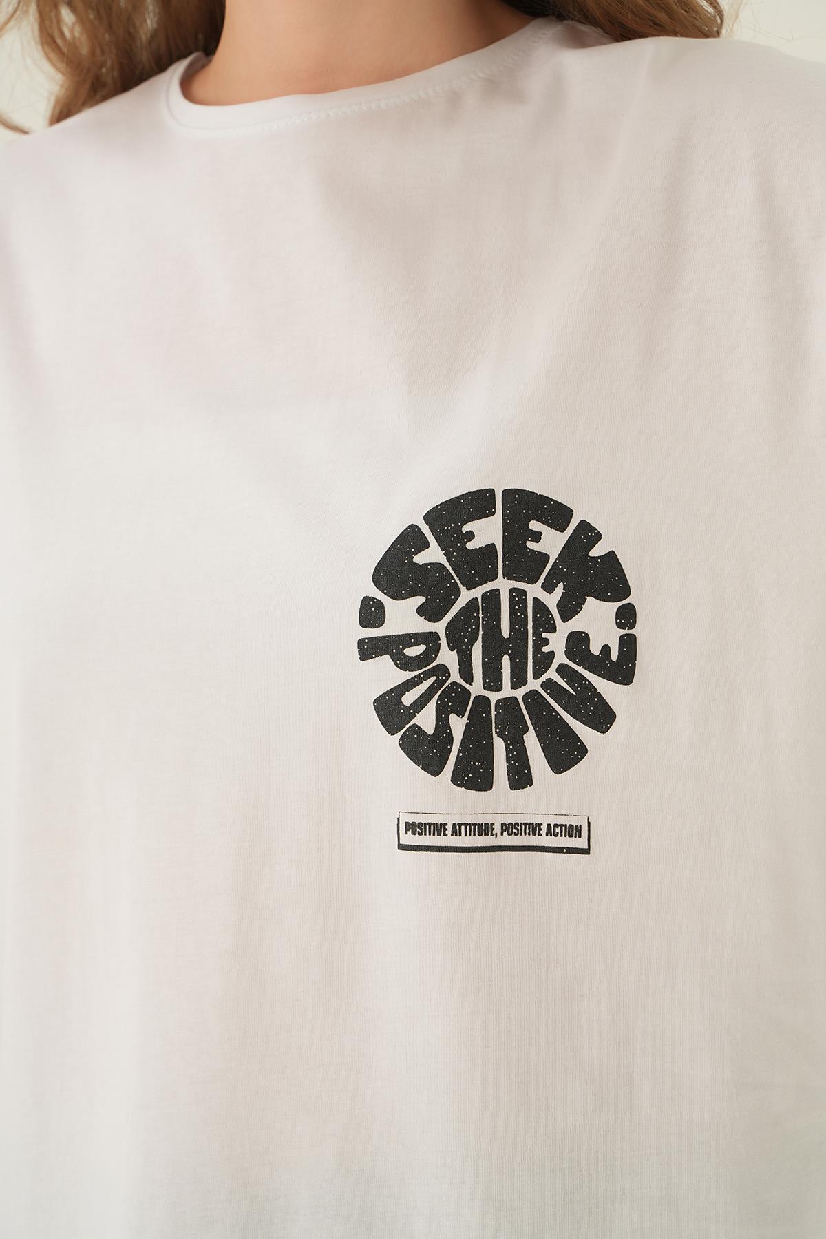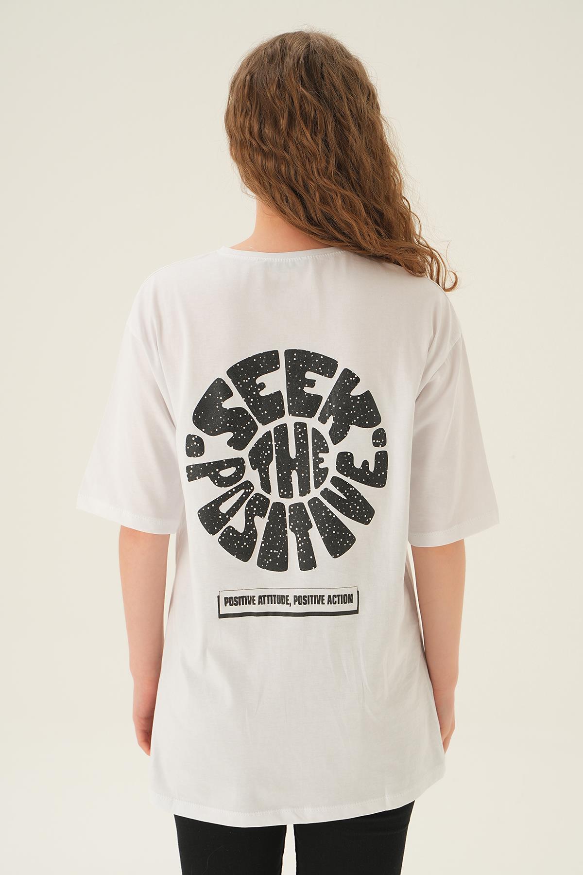 Beyaz Posıtıve Baskı Oversize Tişört 1698