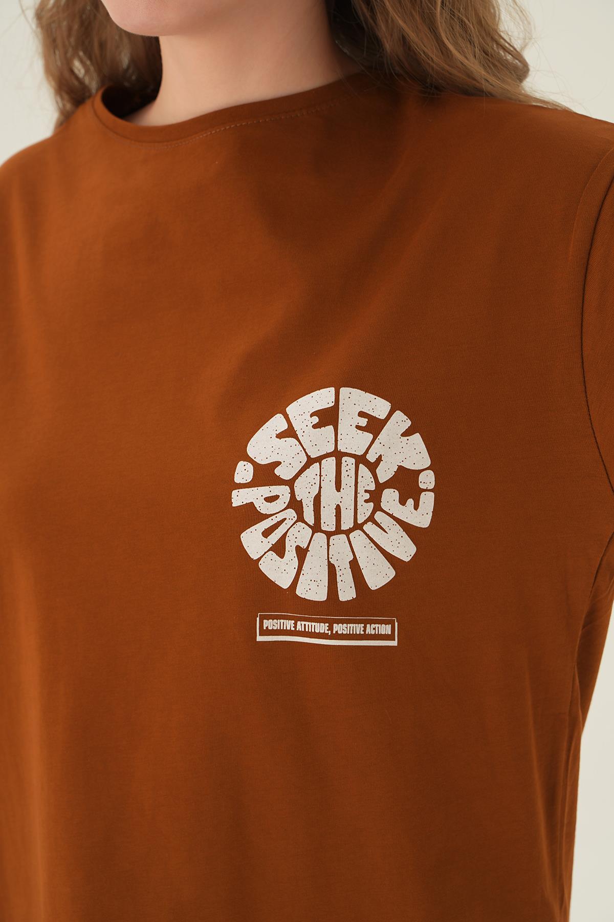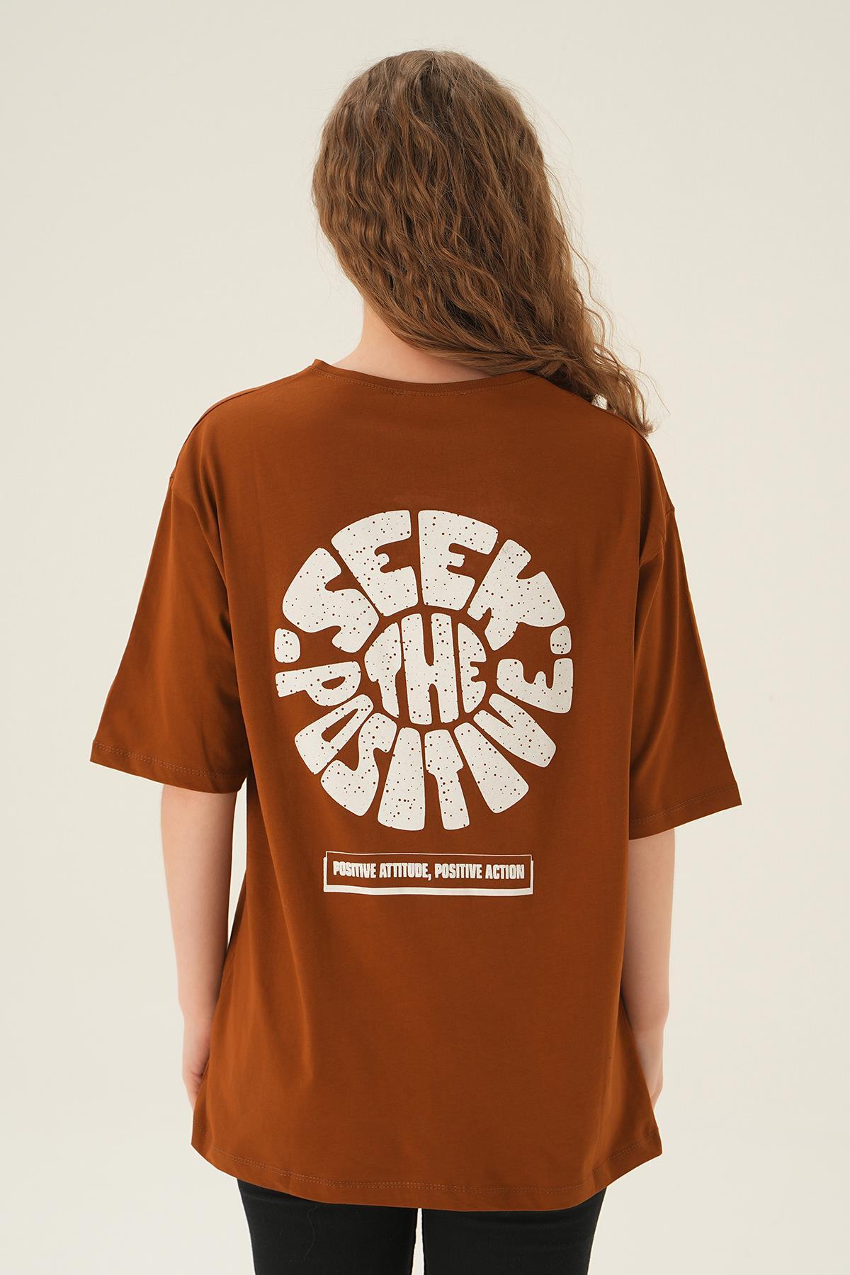 Kahve Posıtıve Baskı Oversize Tişört 1698
