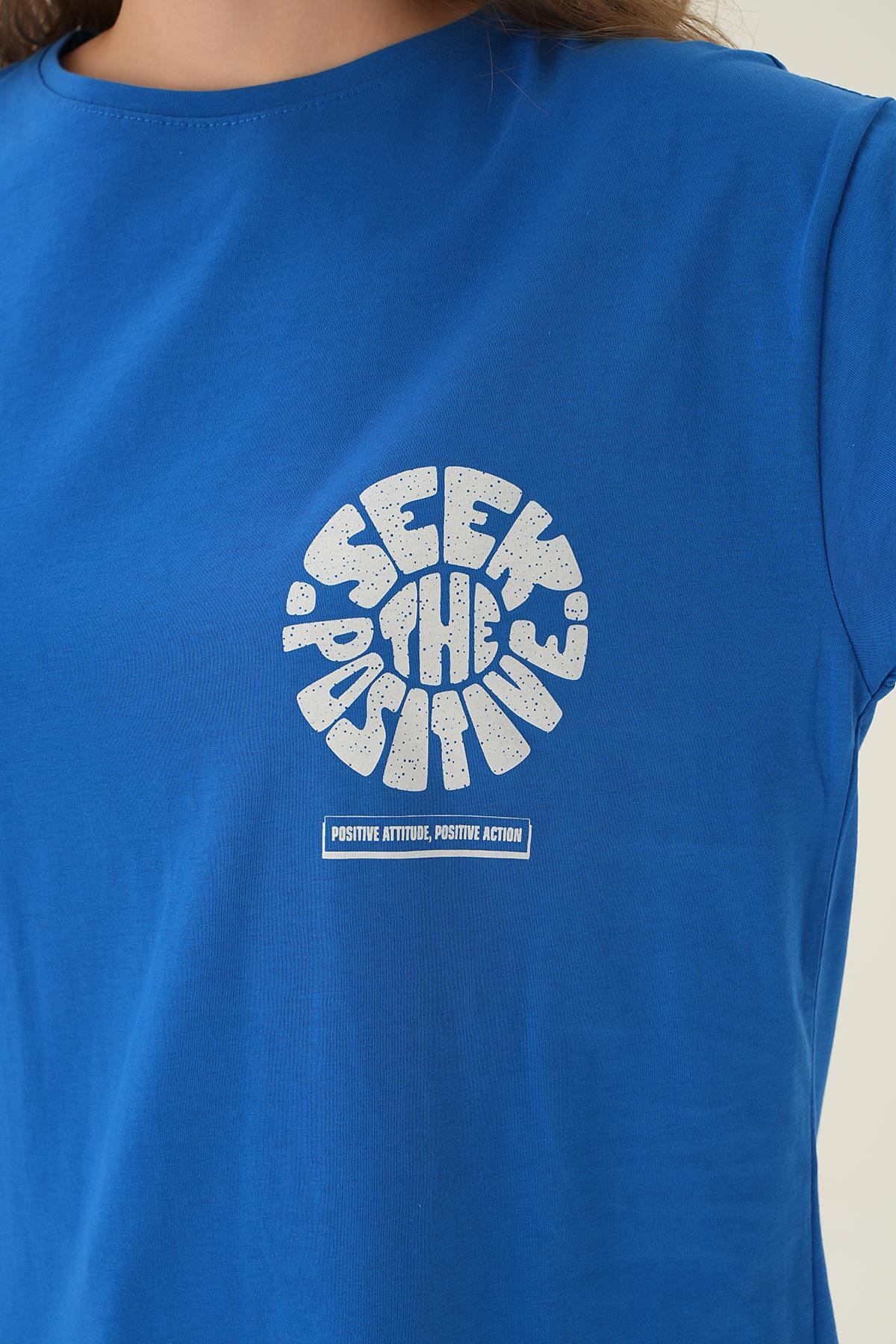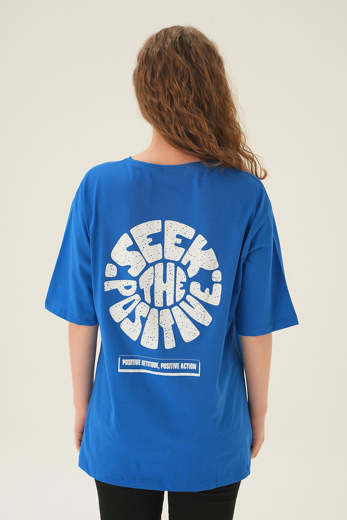 Mavi Posıtıve Baskı Oversize Tişört 1698