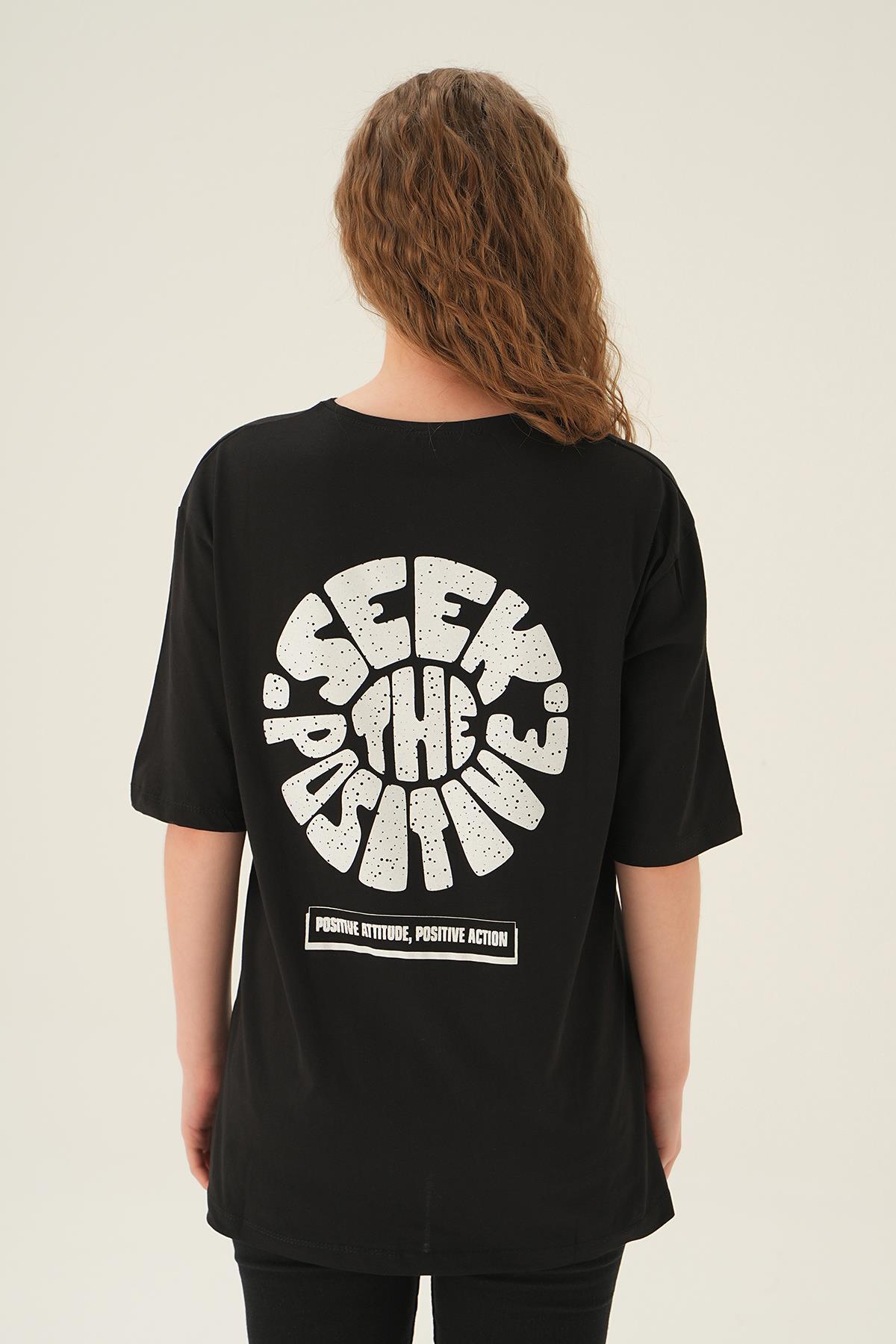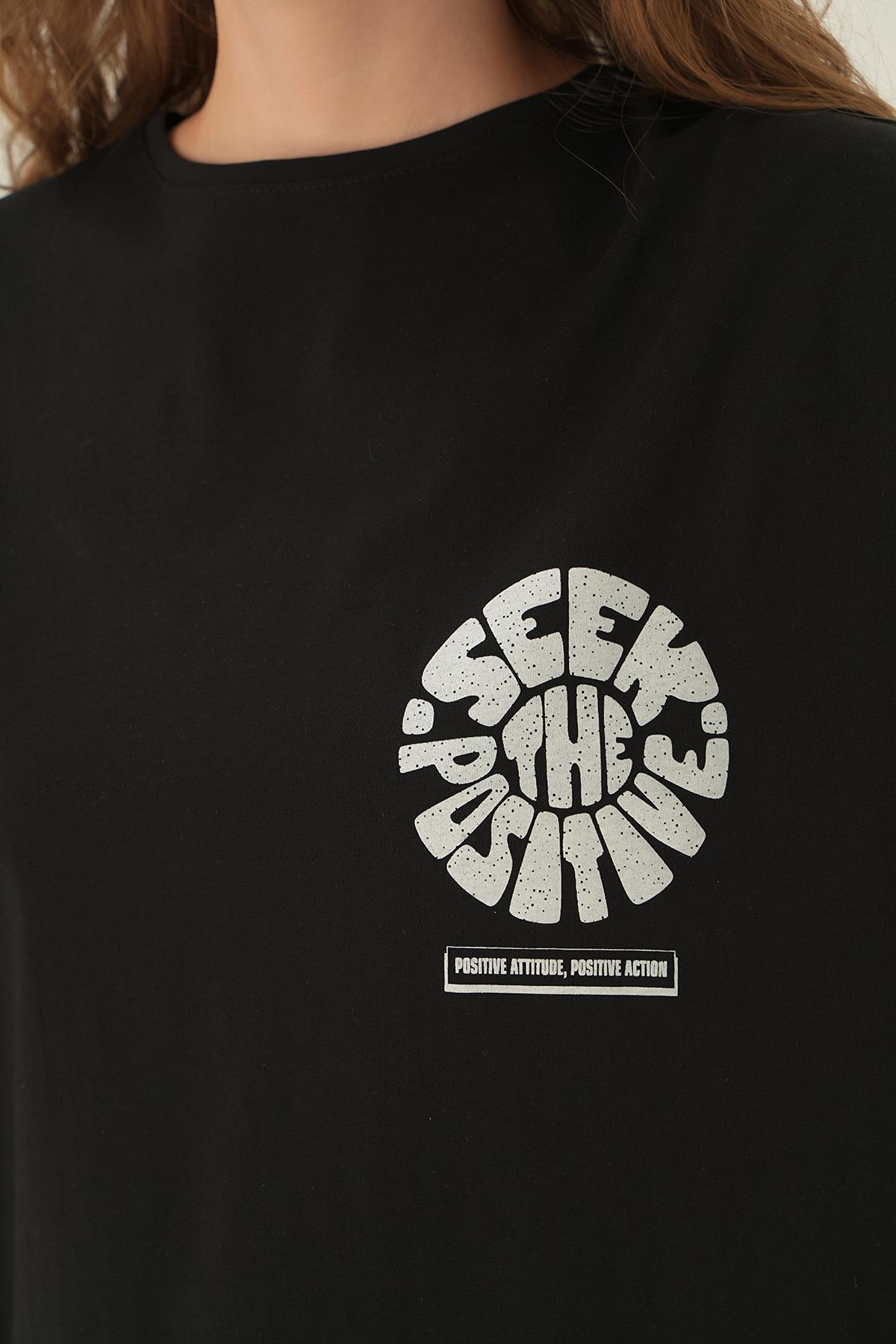 Siyah Posıtıve Baskı Oversize Tişört 1698