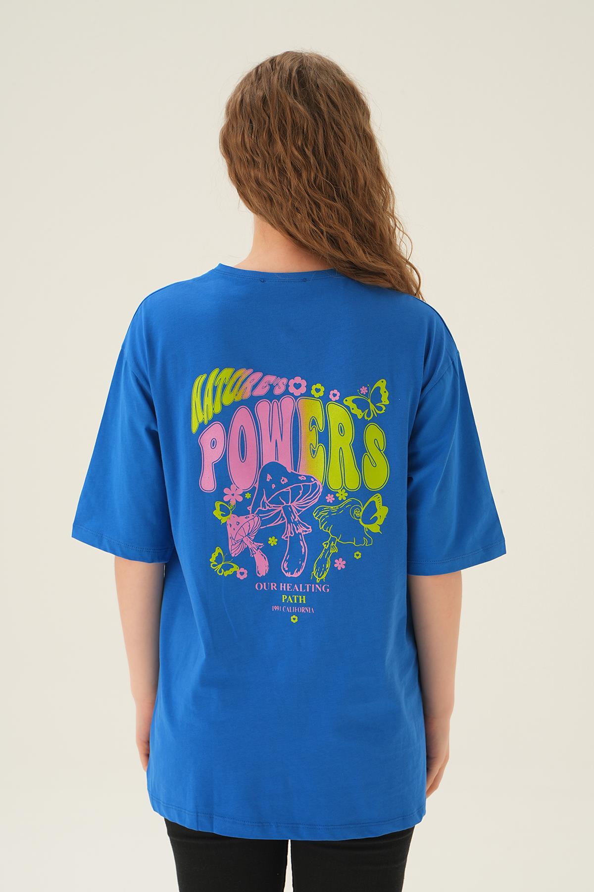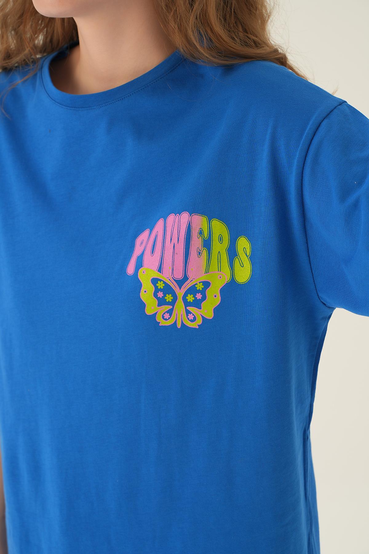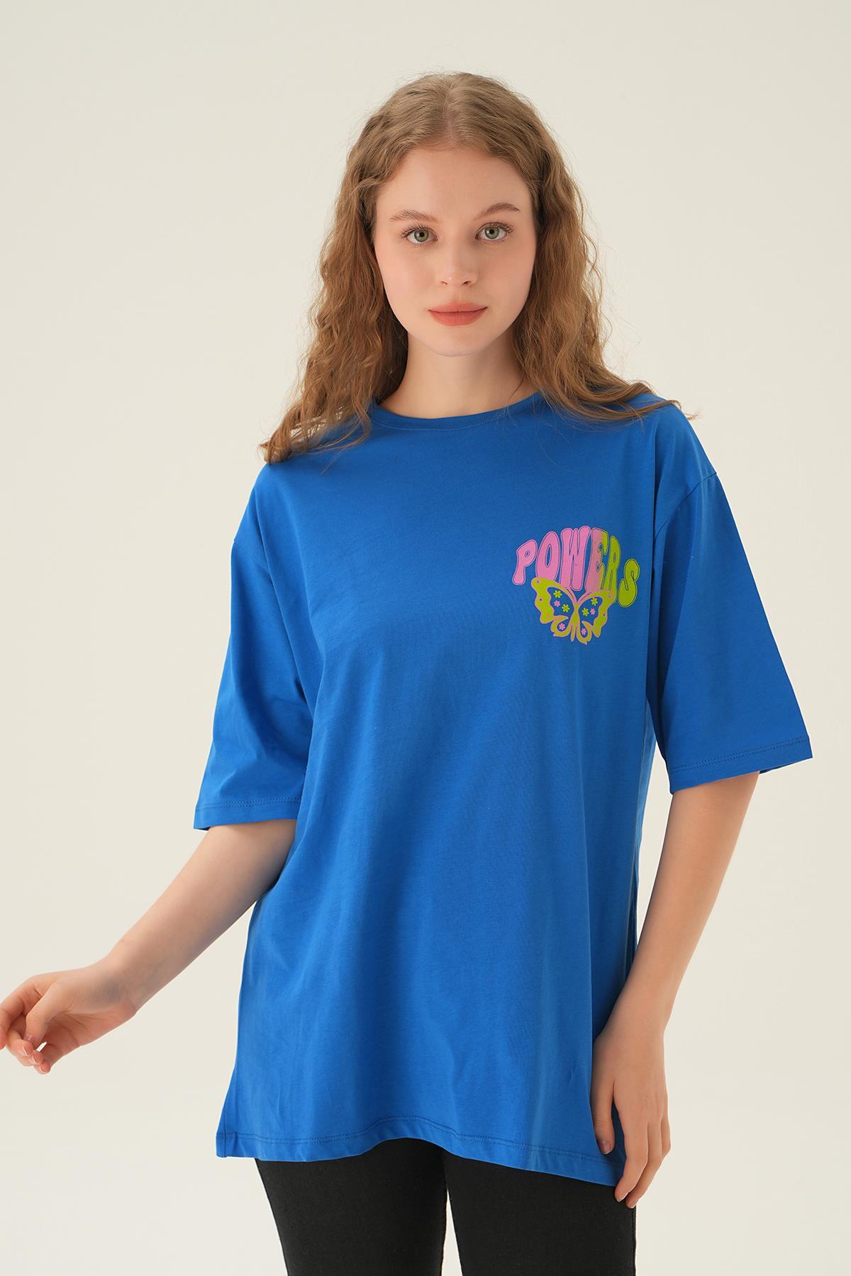 Mavi Powers Kelebek Baskı Oversize Tişört 1700