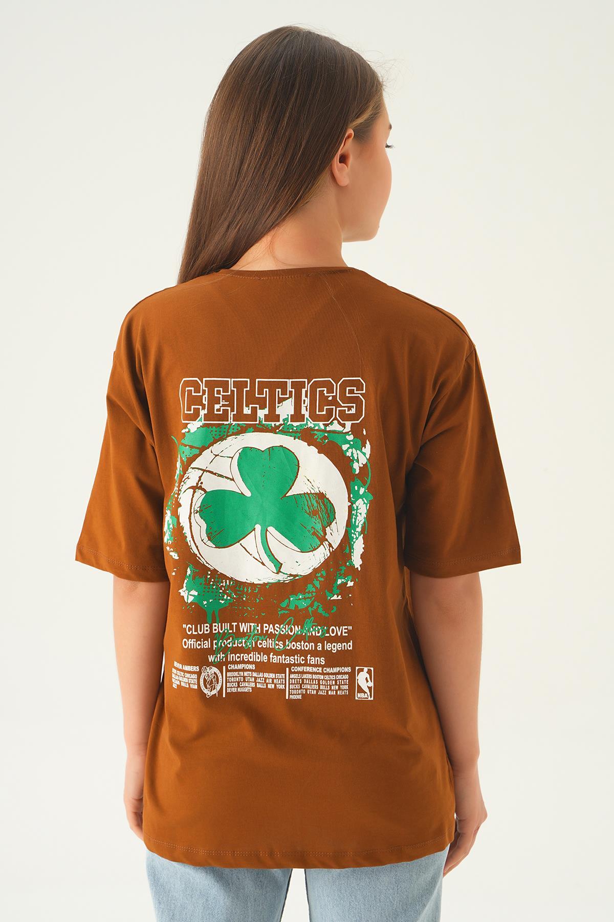 Kahve Celtıcs Baskı Oversize Tişört 1701