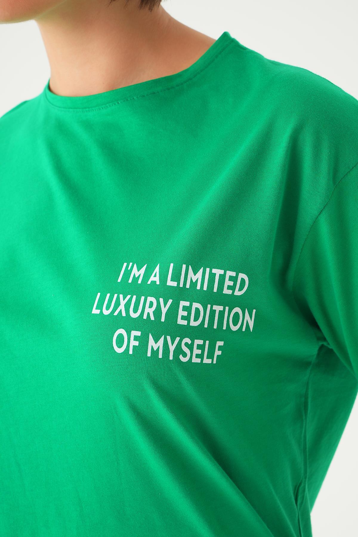 Benetton Yeşili Yazı Detay Baskı Oversize Tişört 1704