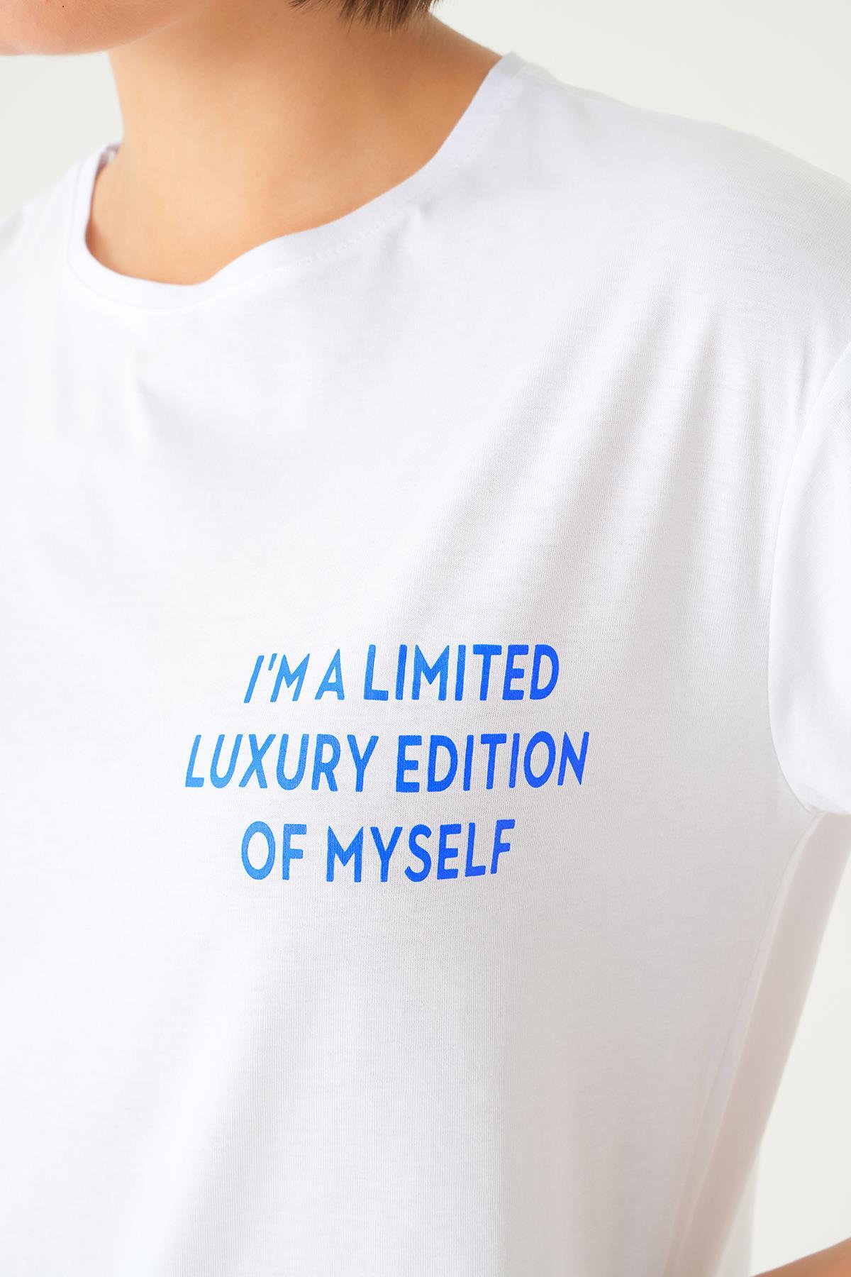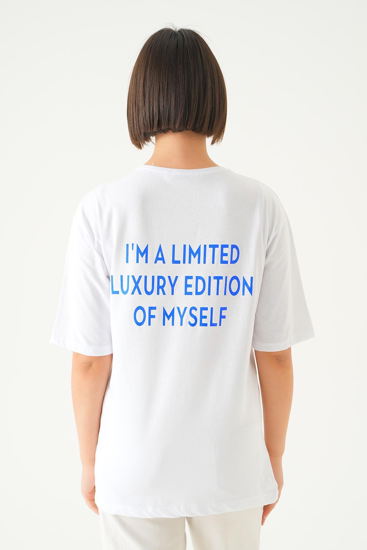 Beyaz Yazı Detay Baskı Oversize Tişört 1704