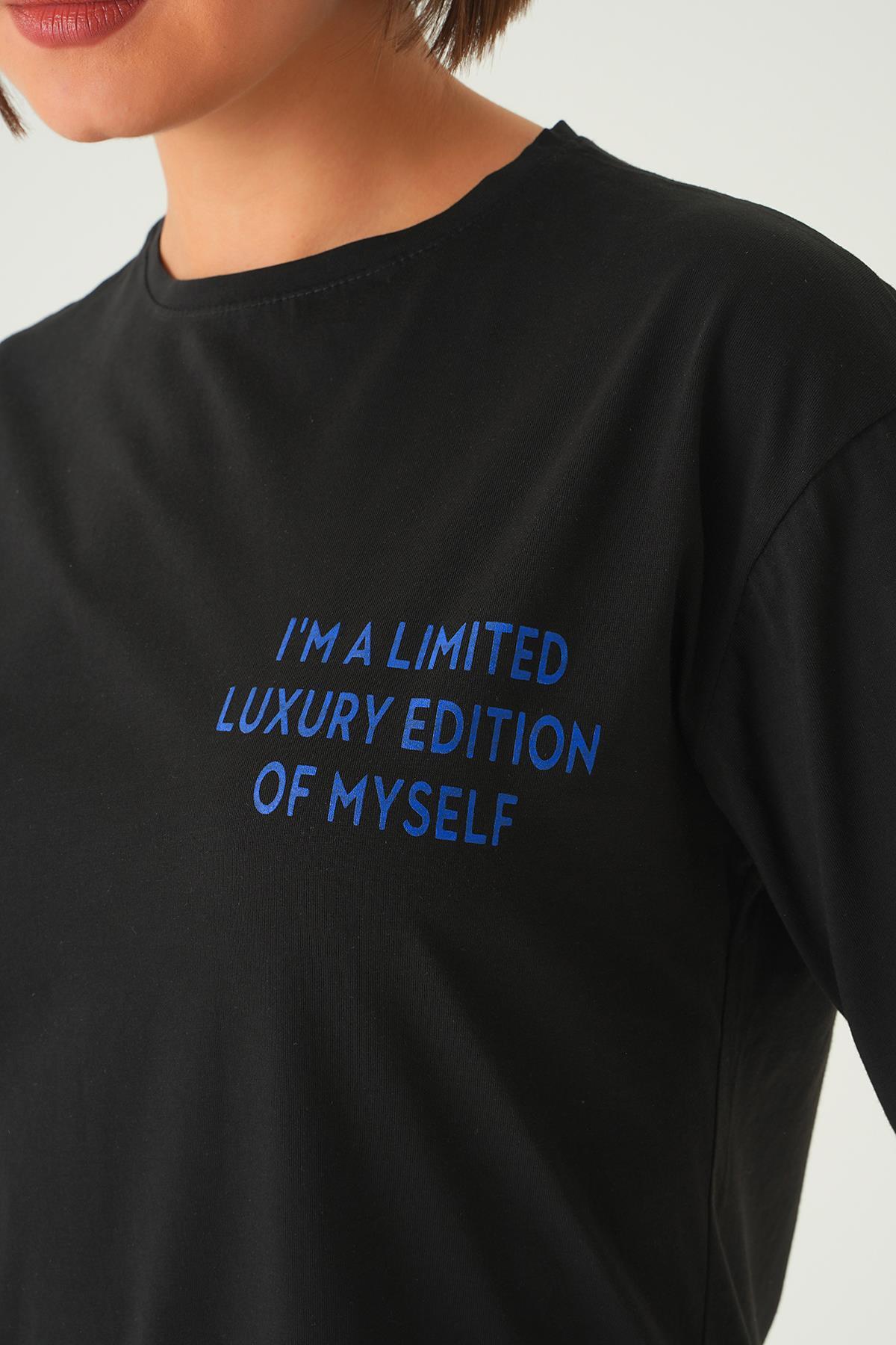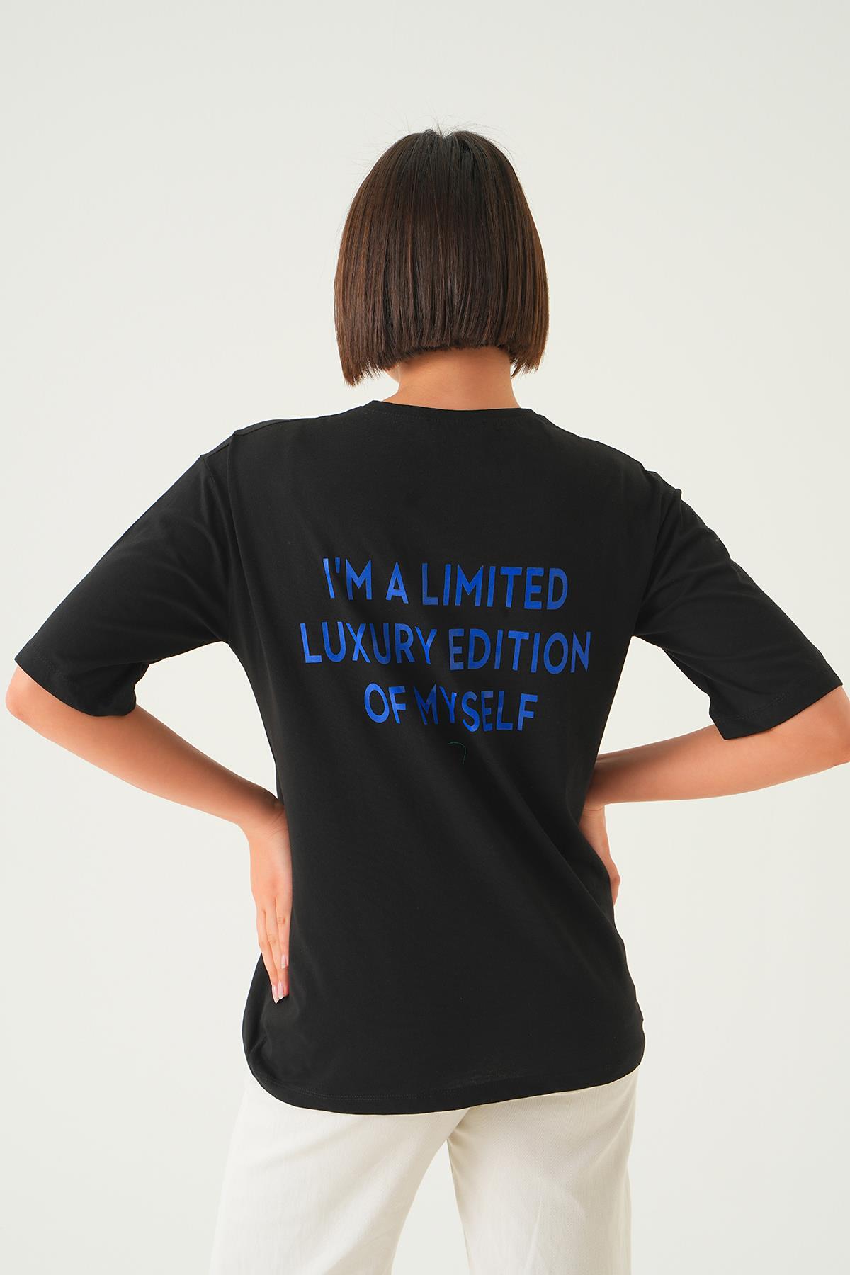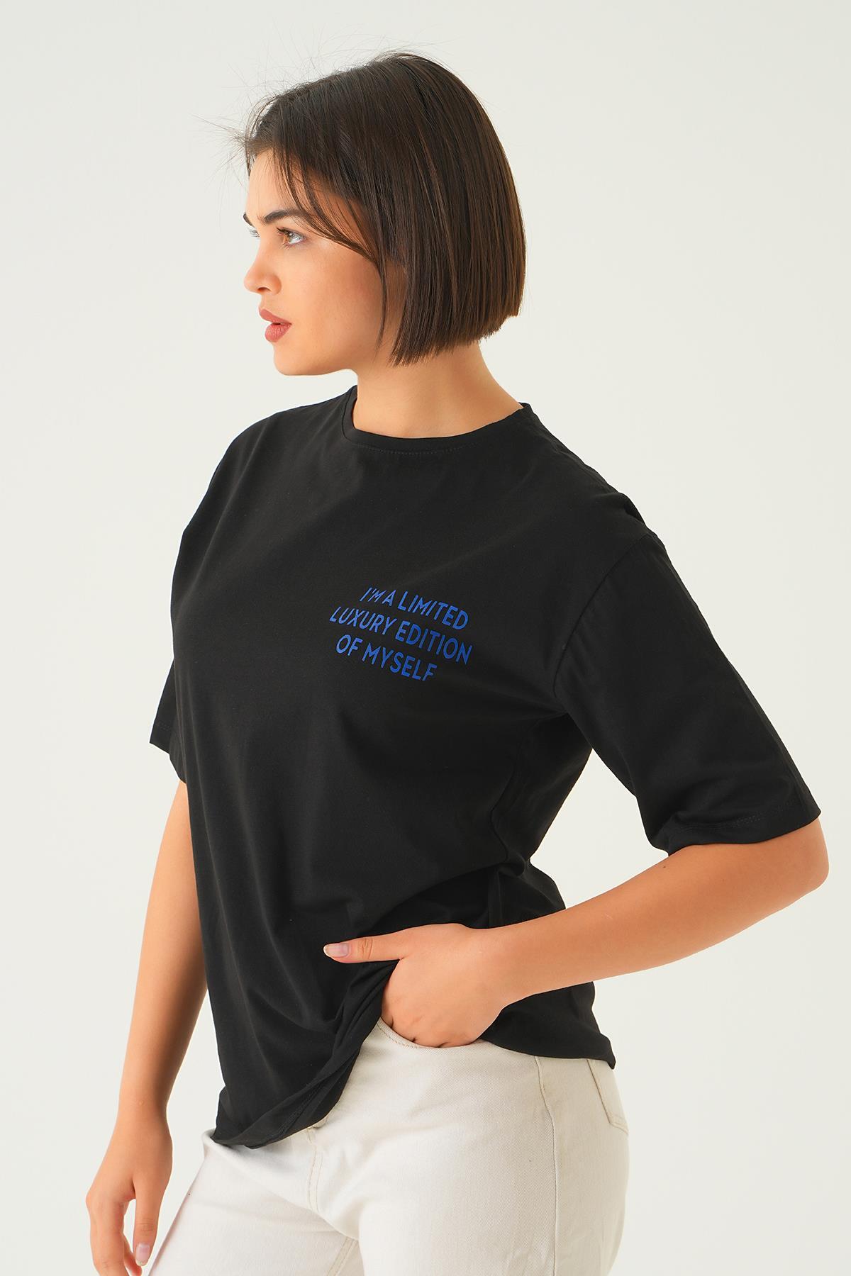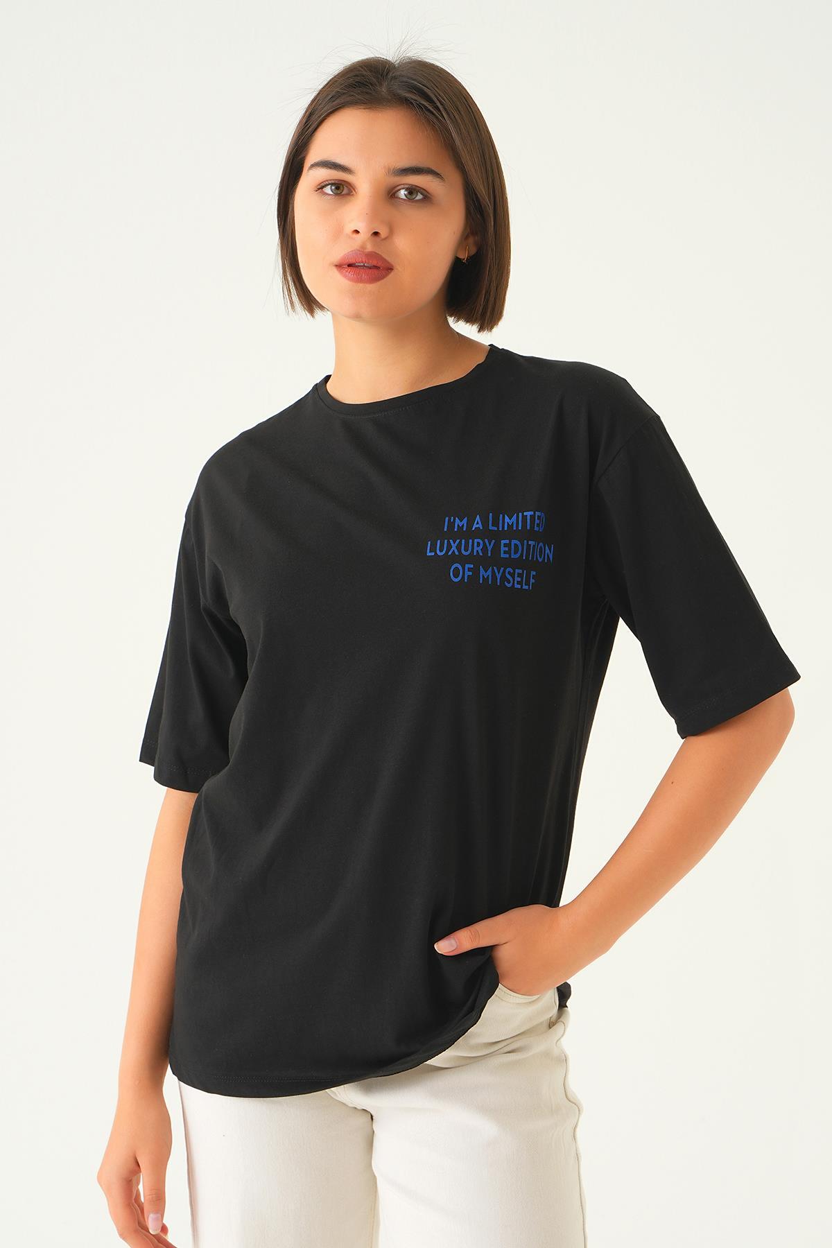 Siyah Yazı Detay Baskı Oversize Tişört 1704