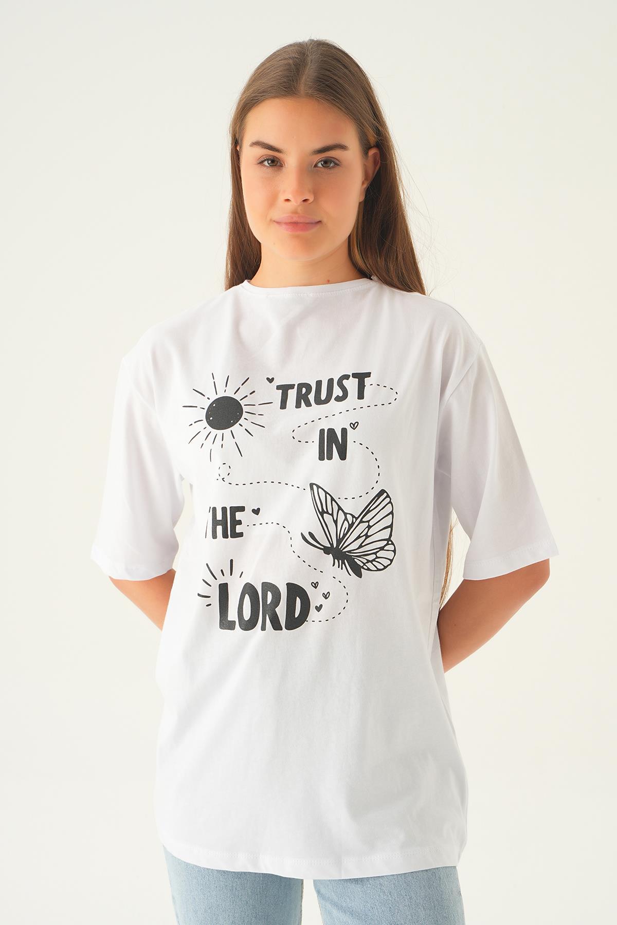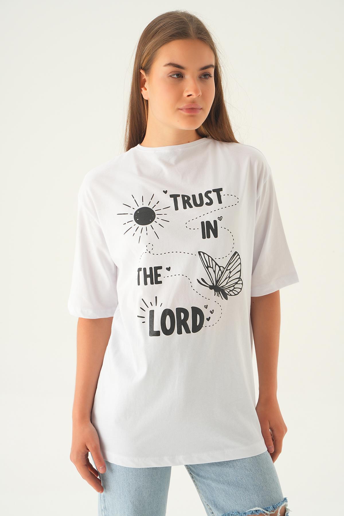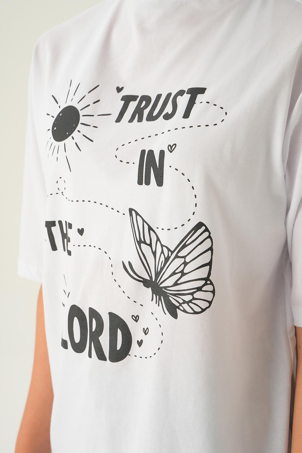 Beyaz Yazı Baskı Oversize Tişört 1706