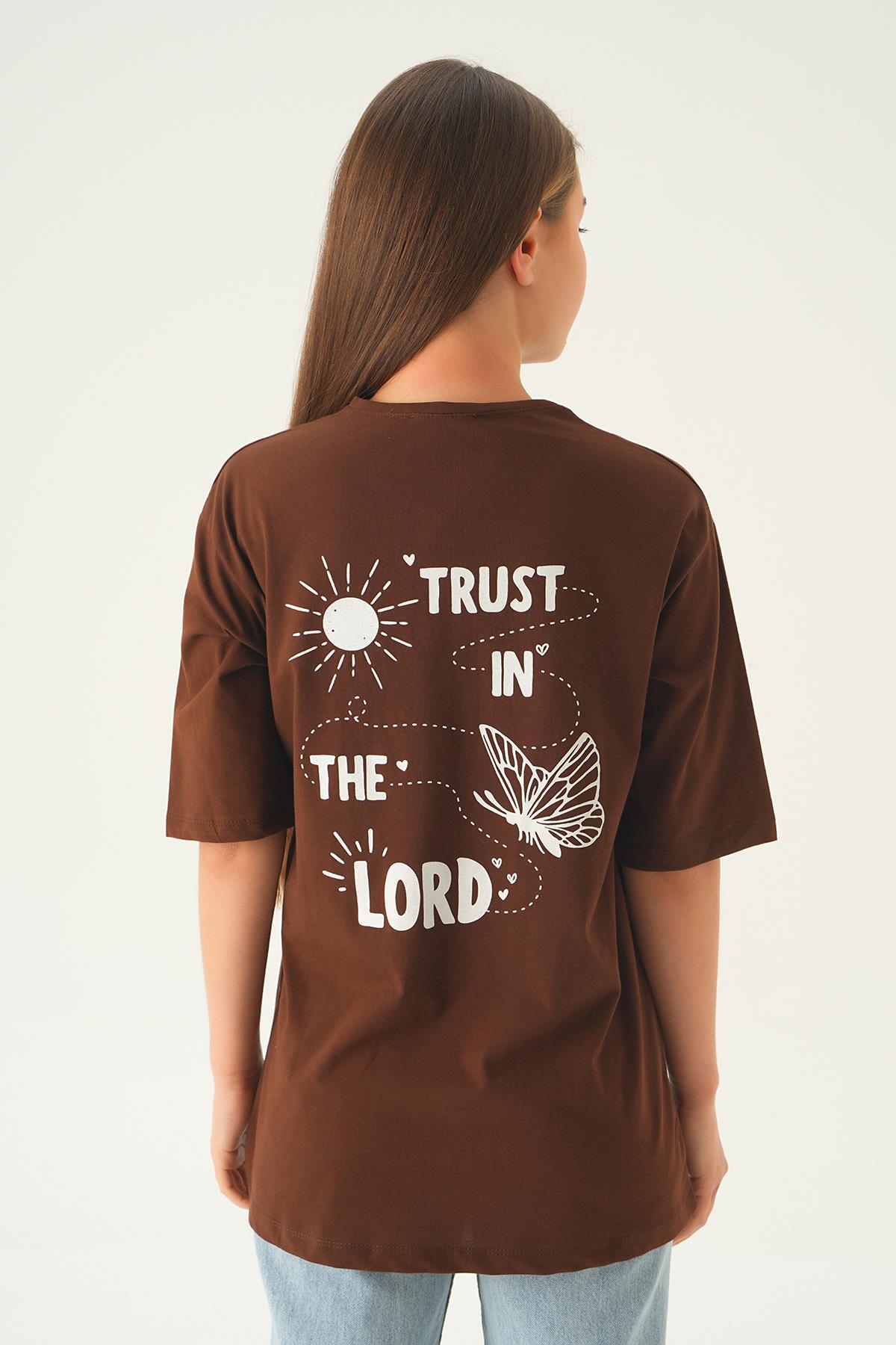 Kahve Yazı Baskı Oversize Tişört 1706