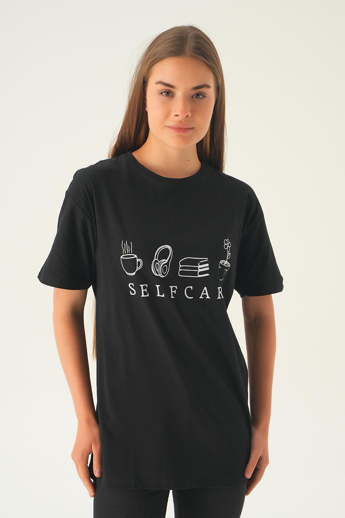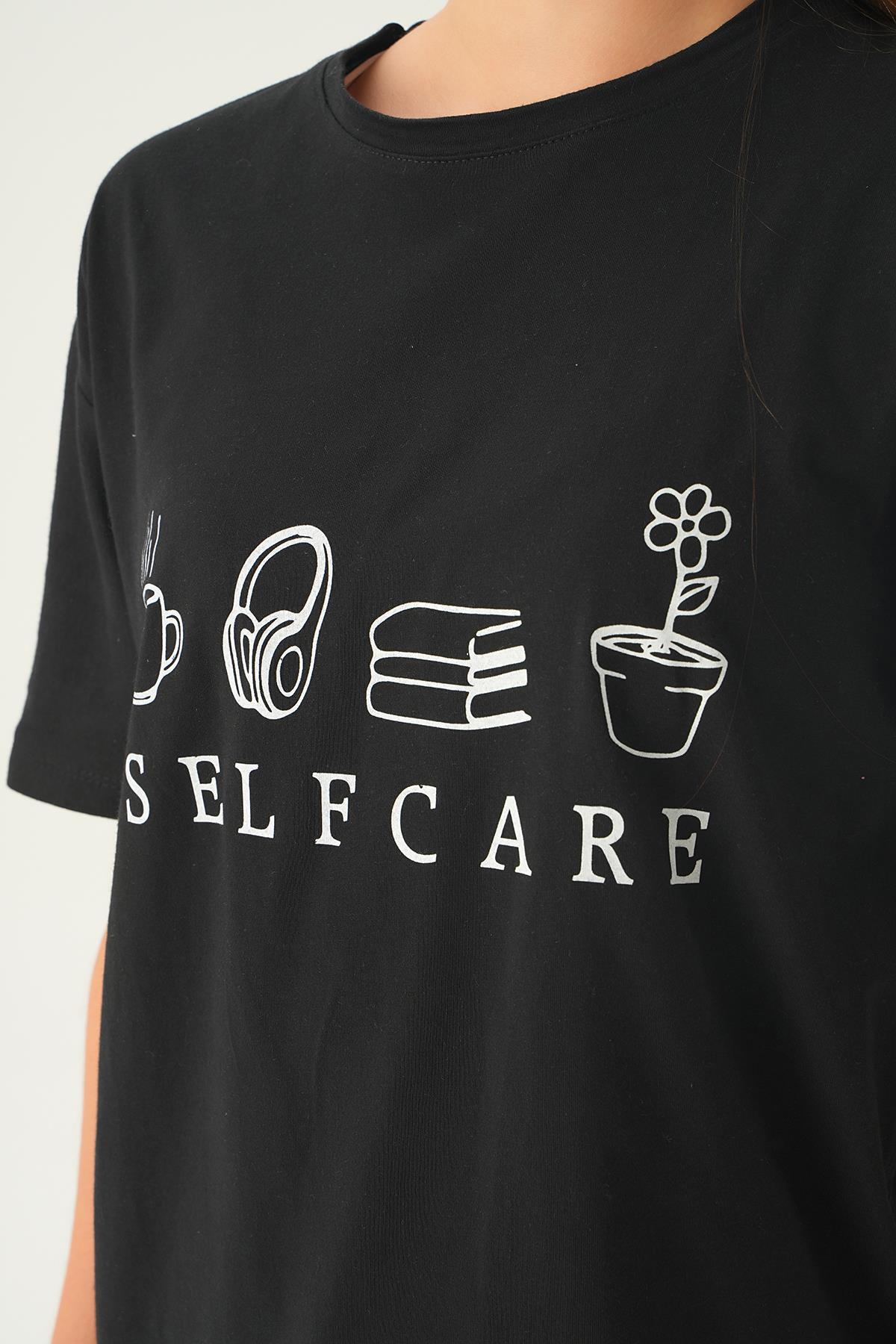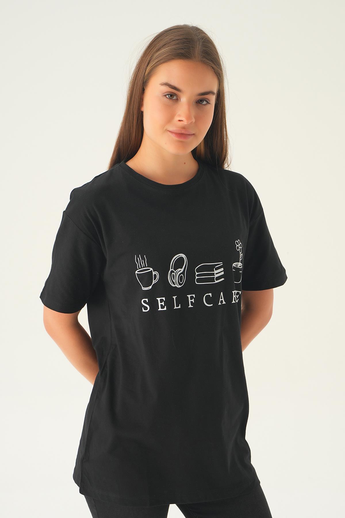 Siyah Baskılı Oversize Tişört 1716