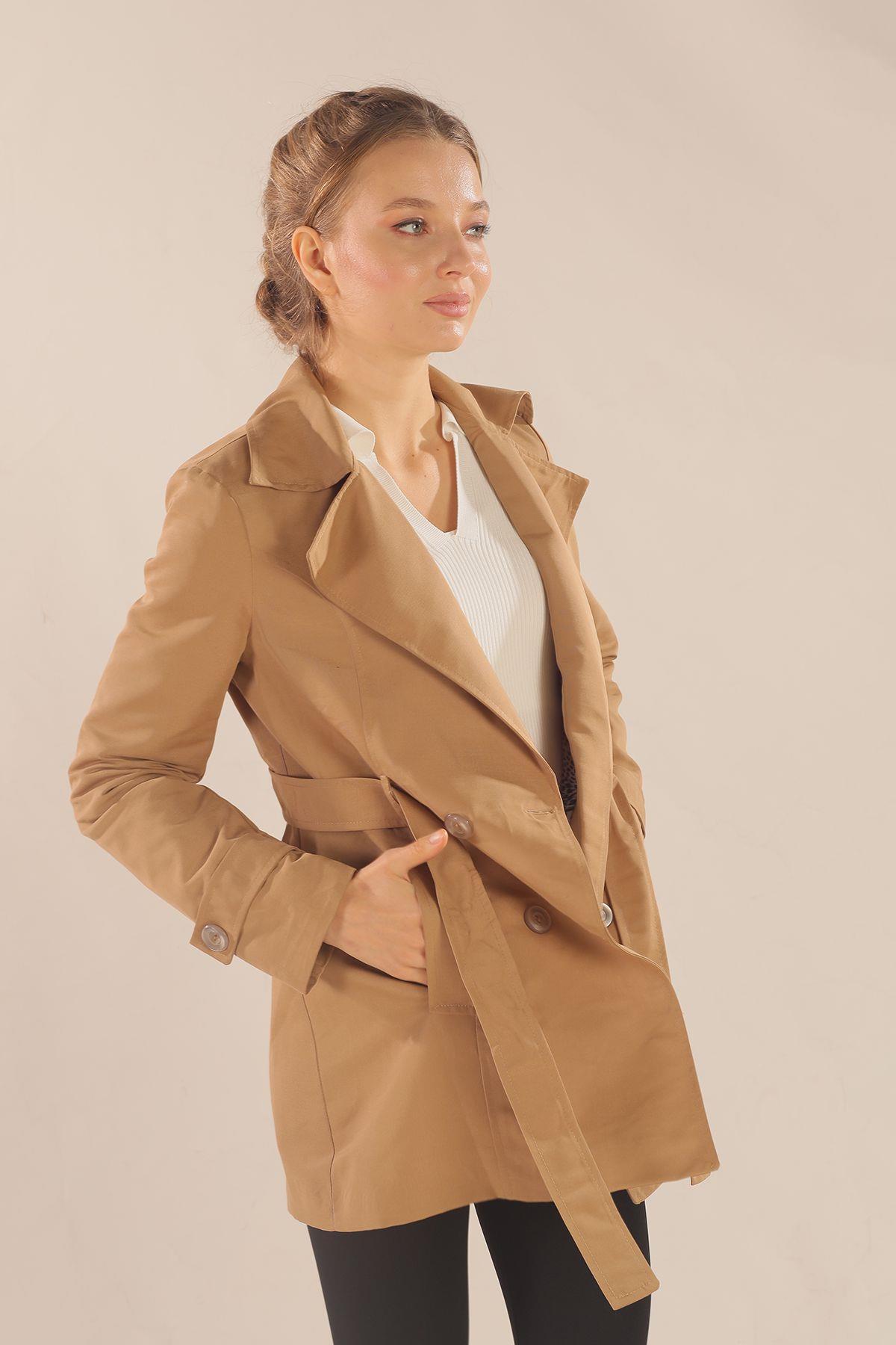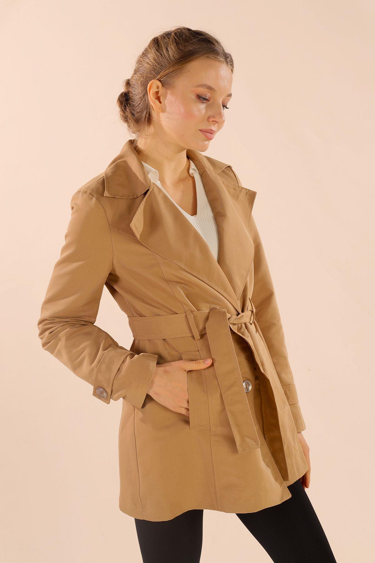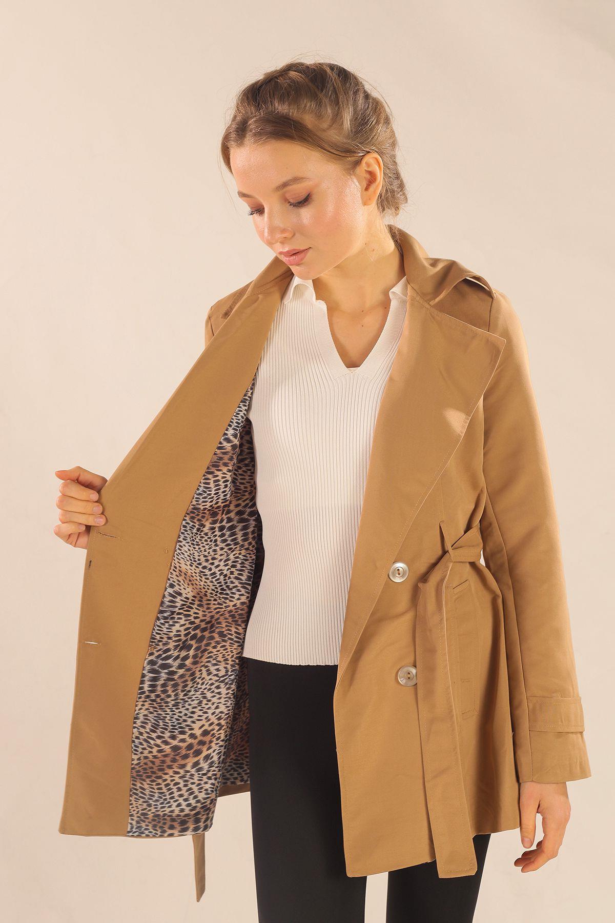 Bej Leopar Astarlı Kısa Trençkot 1737