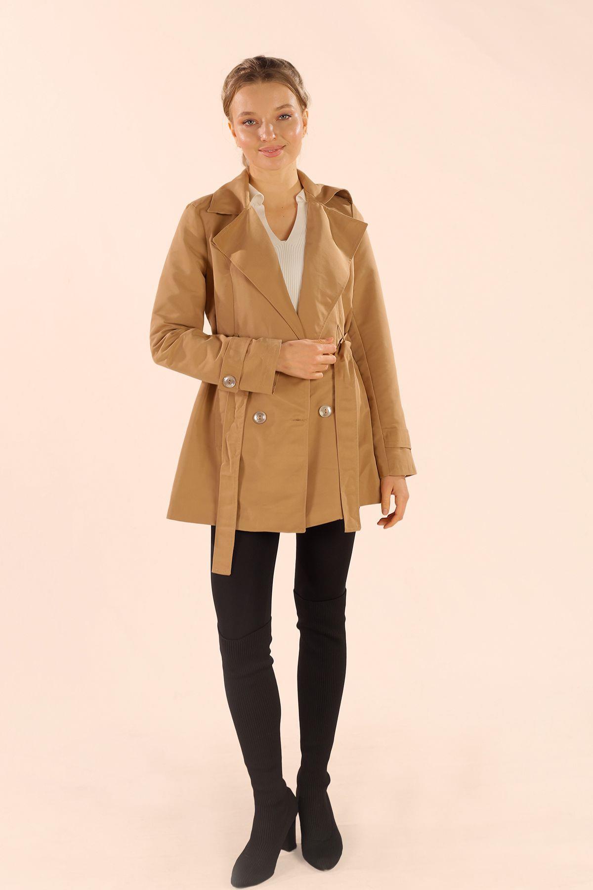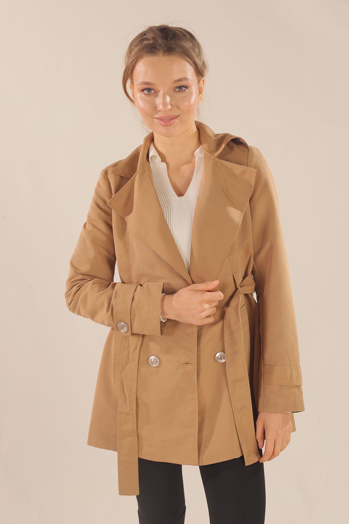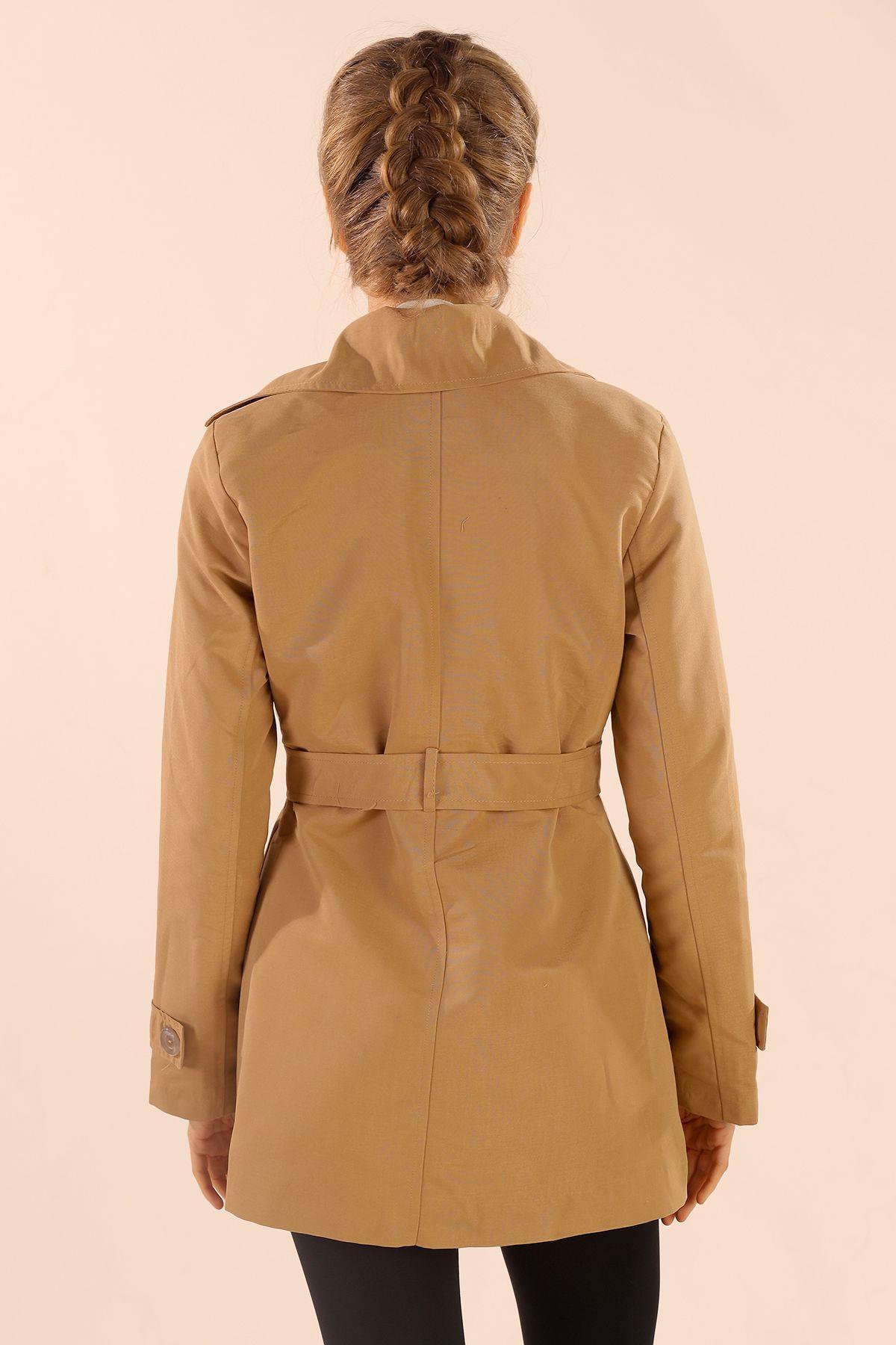 Bej Leopar Astarlı Kısa Trençkot 1737