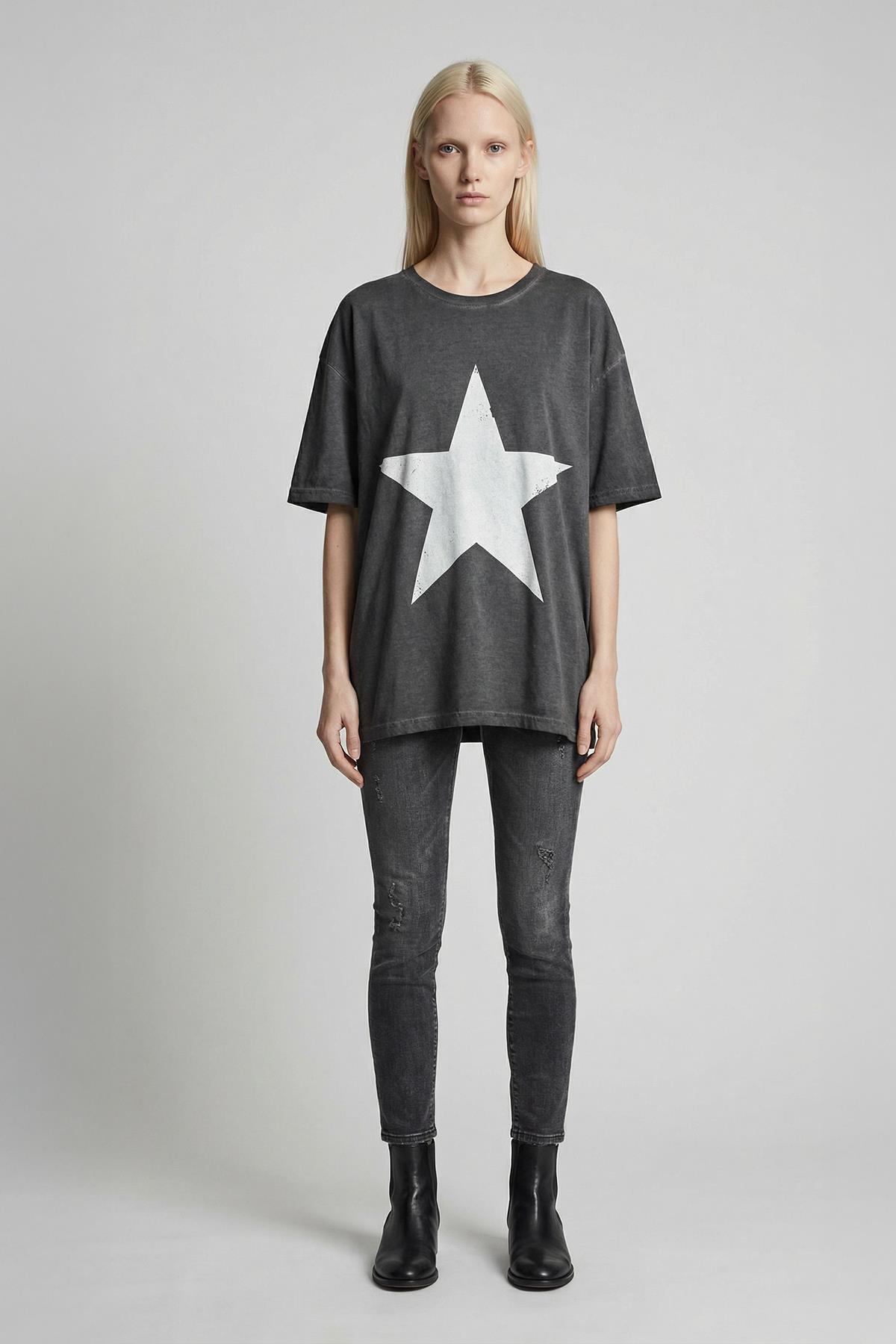Antrasit Yıldız Baskılı Tişört 1765