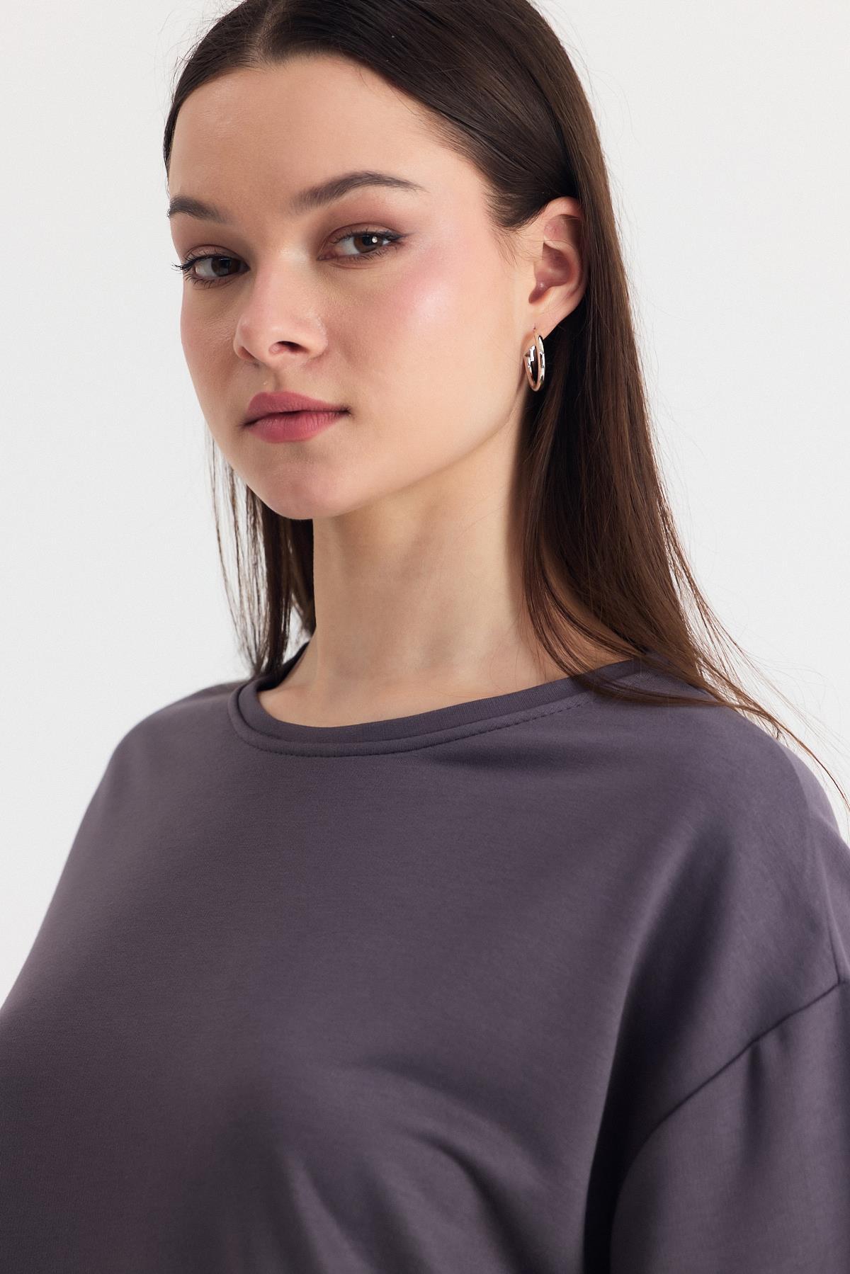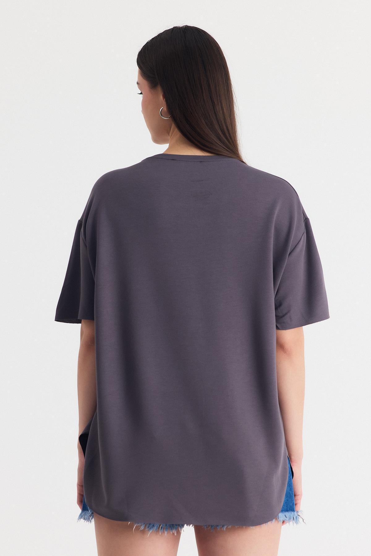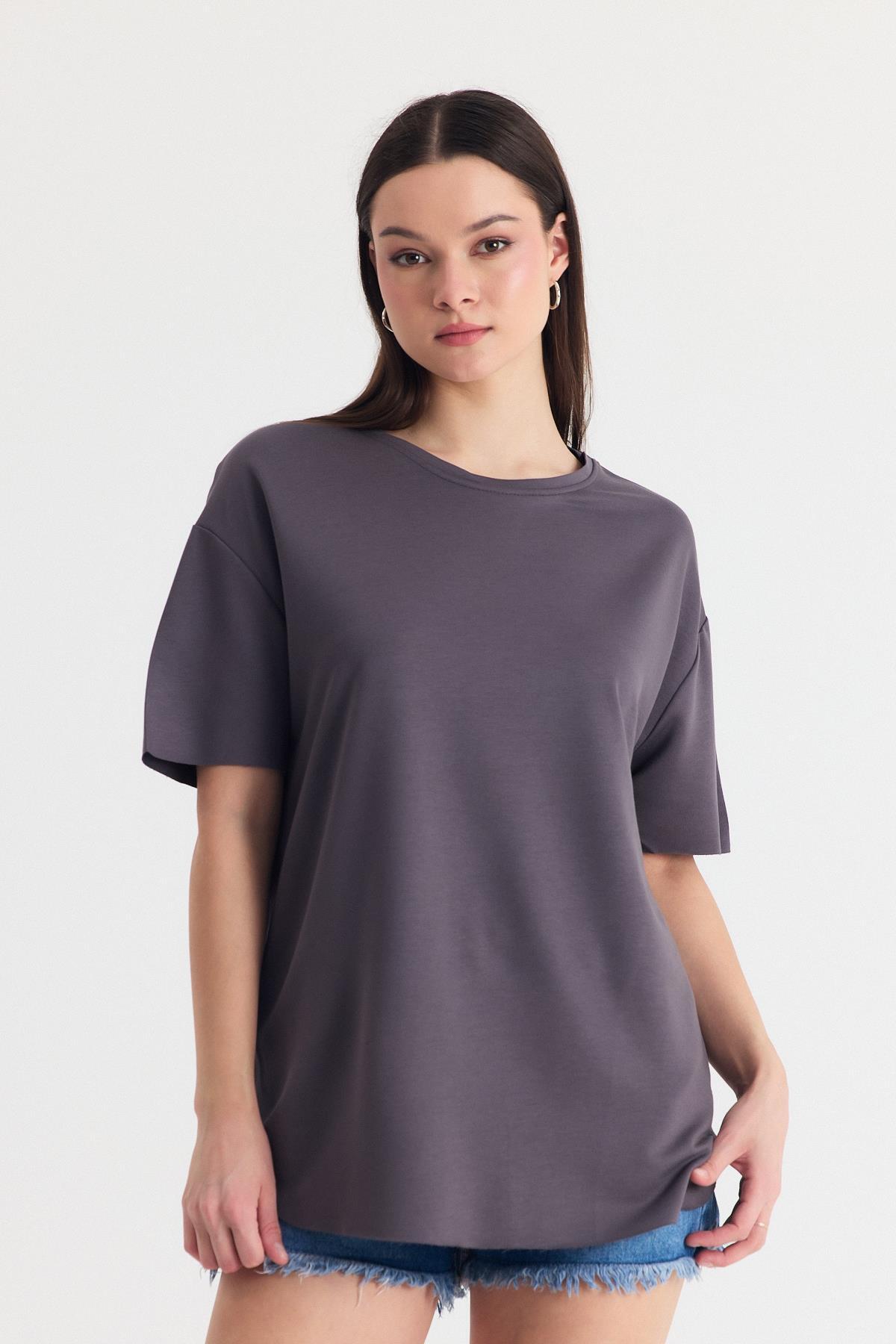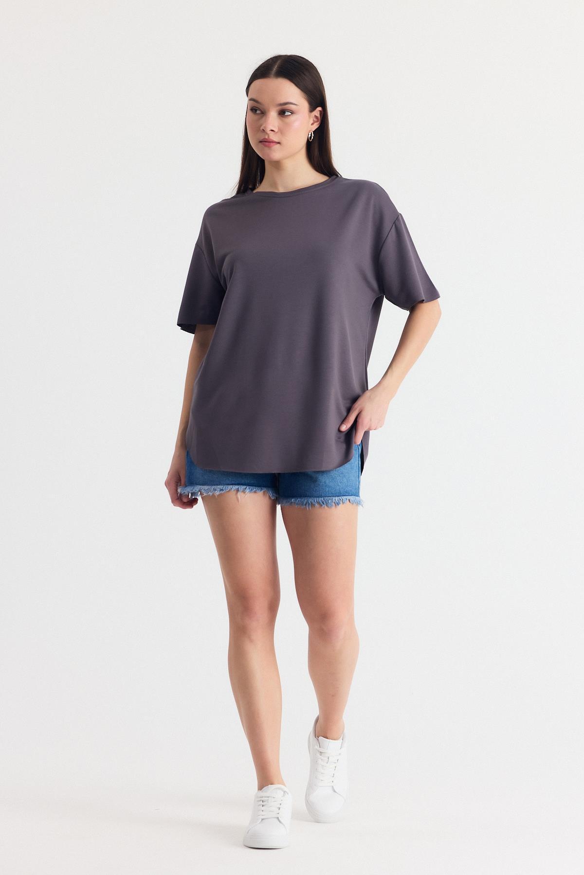 Füme Yumuşak Dokulu Esnek Premium Kumaş Lazer Kesim Oversize Tişört 1868