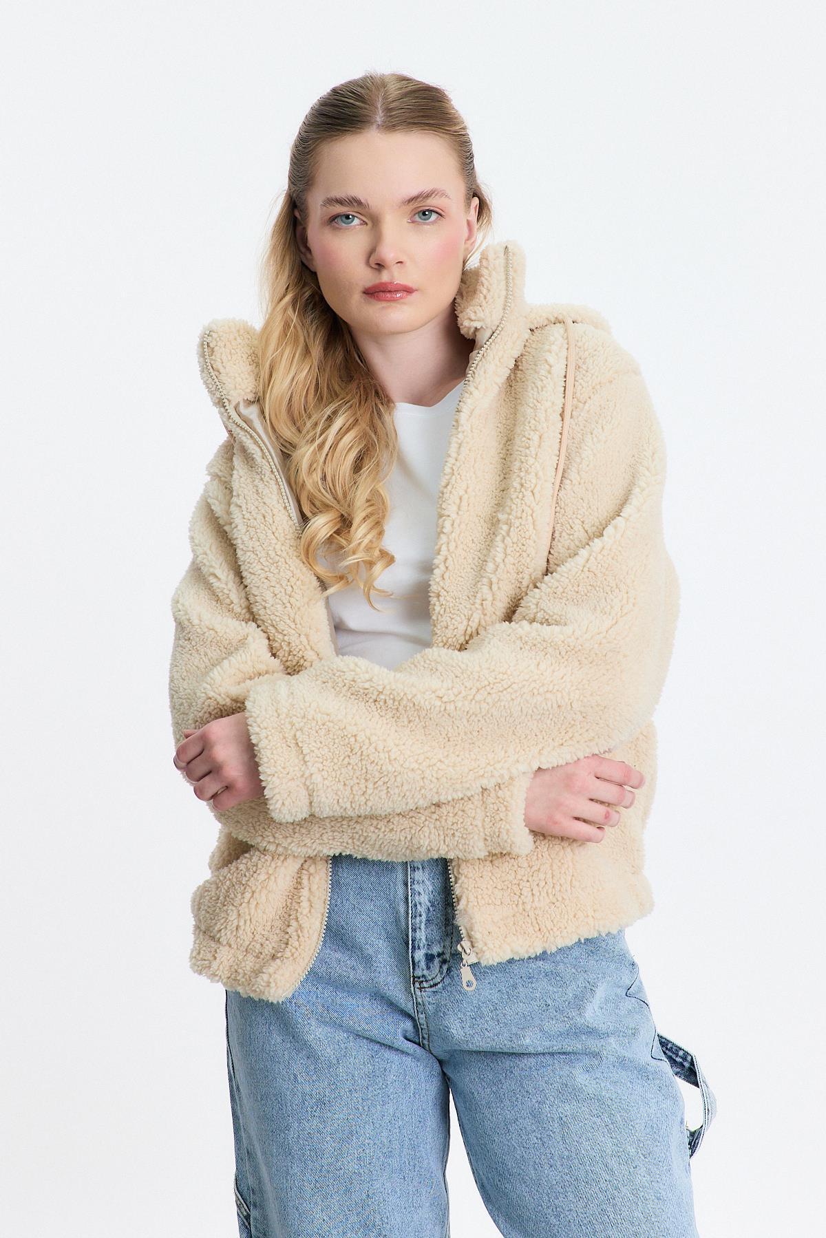 18847 Kapüşonlu Welsoft Hırka Taş
