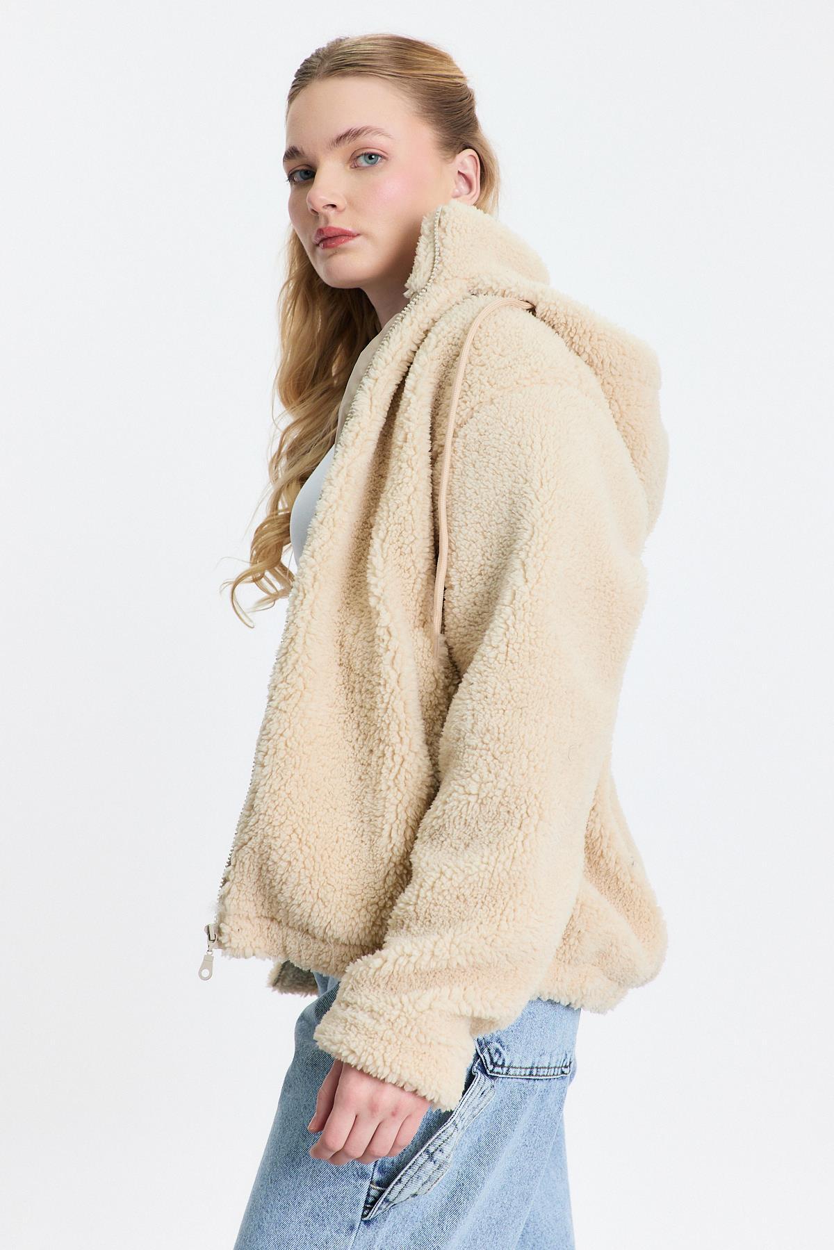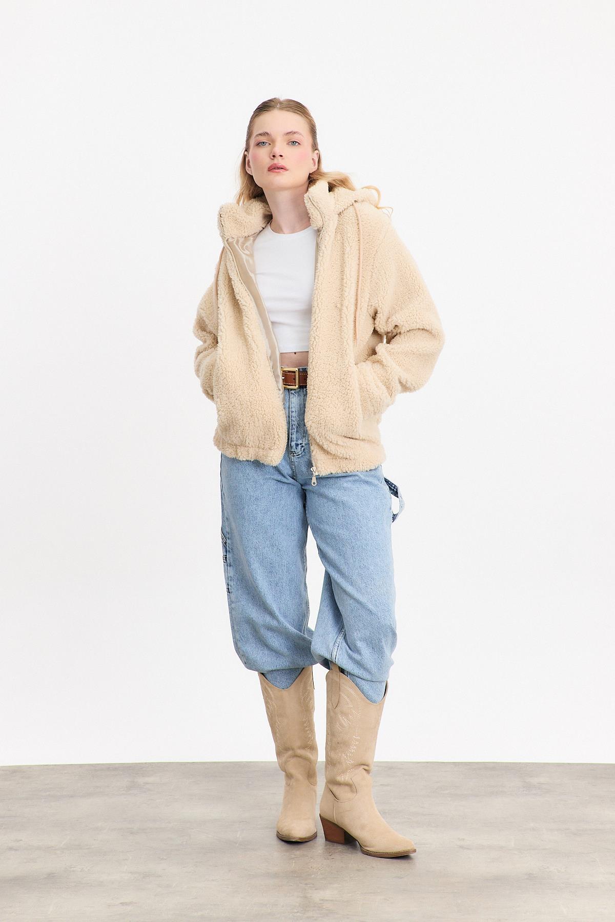 8325A Ön Şeritli Fermuarlı Hırka Bej - RAYS