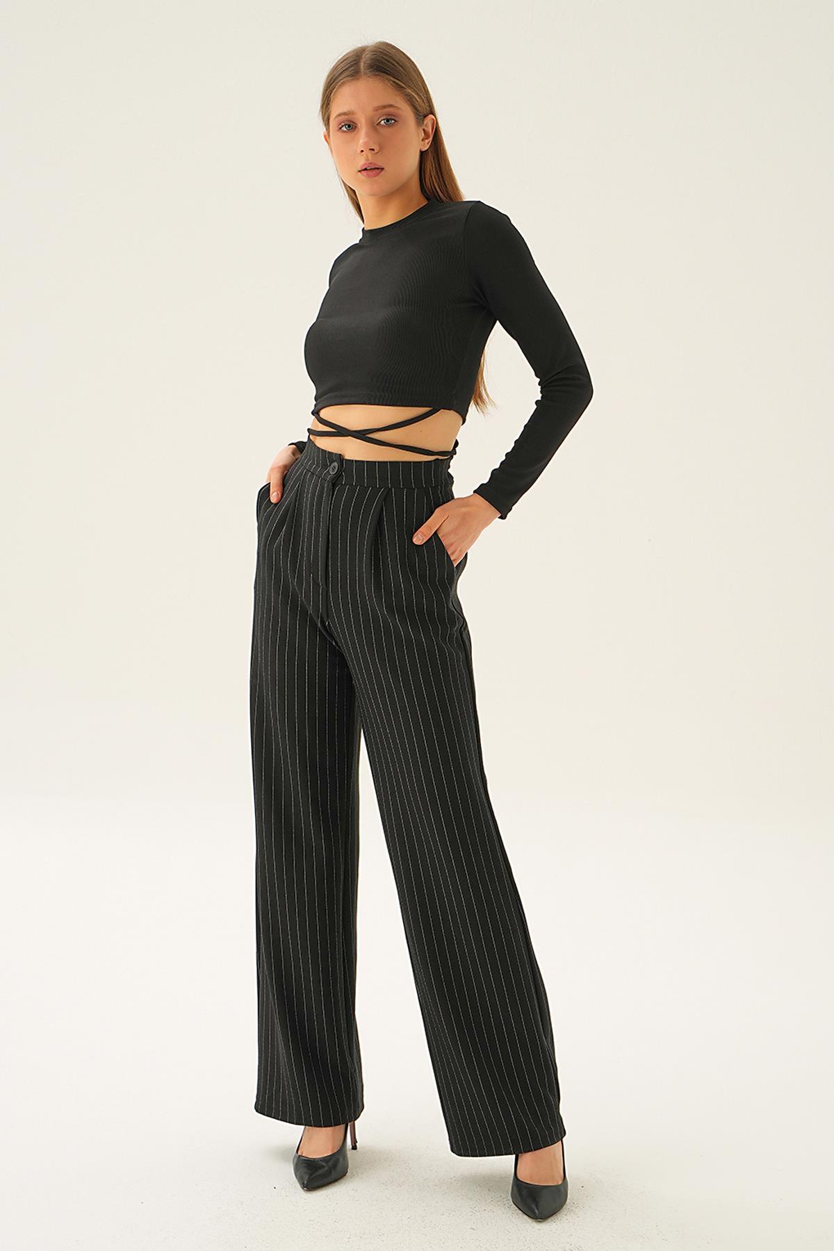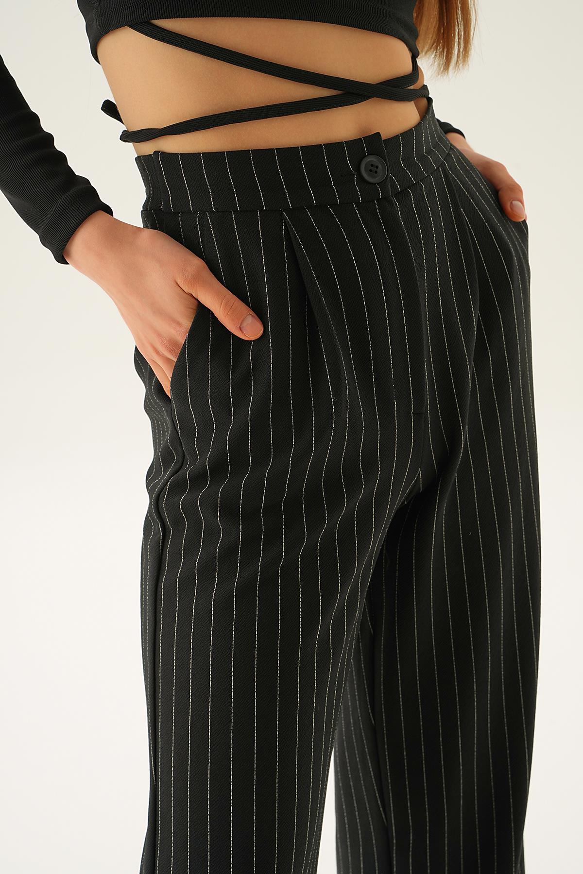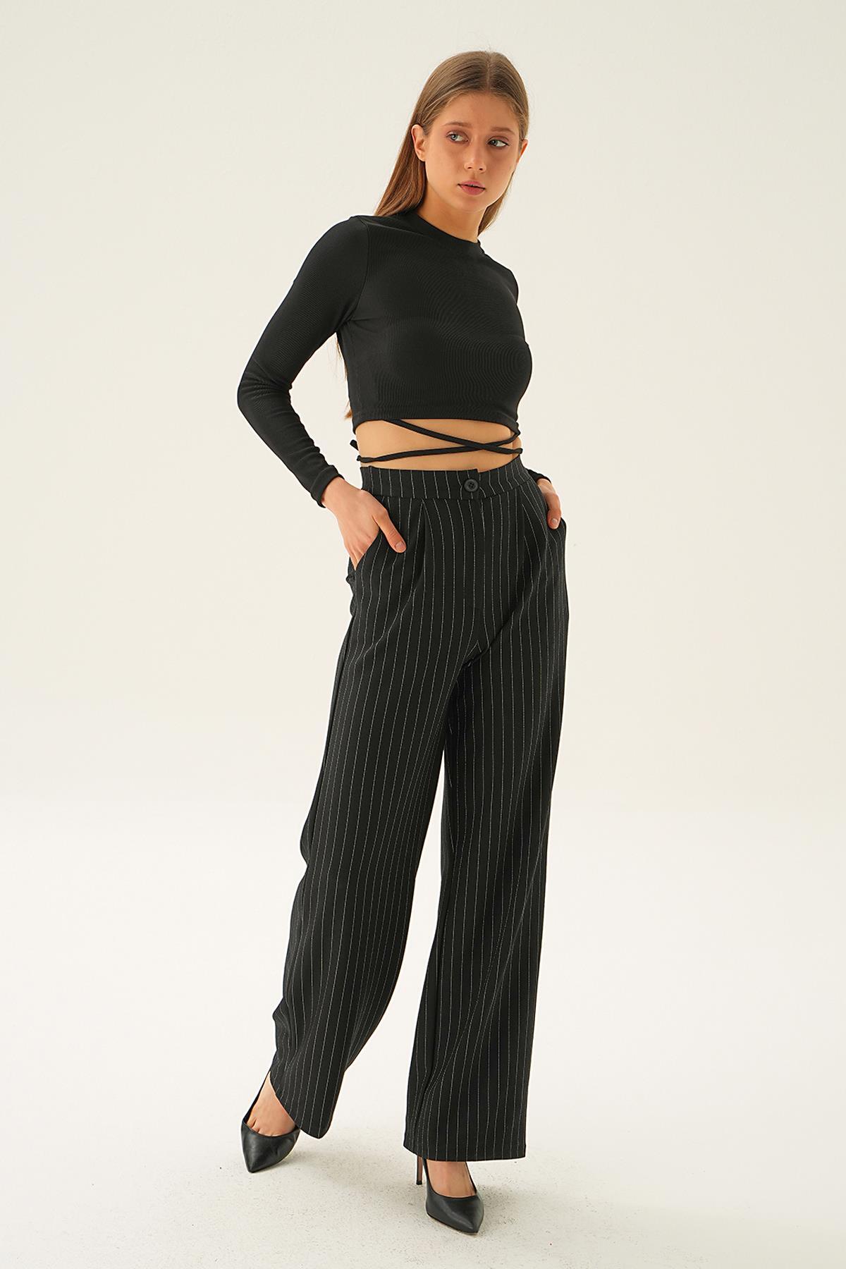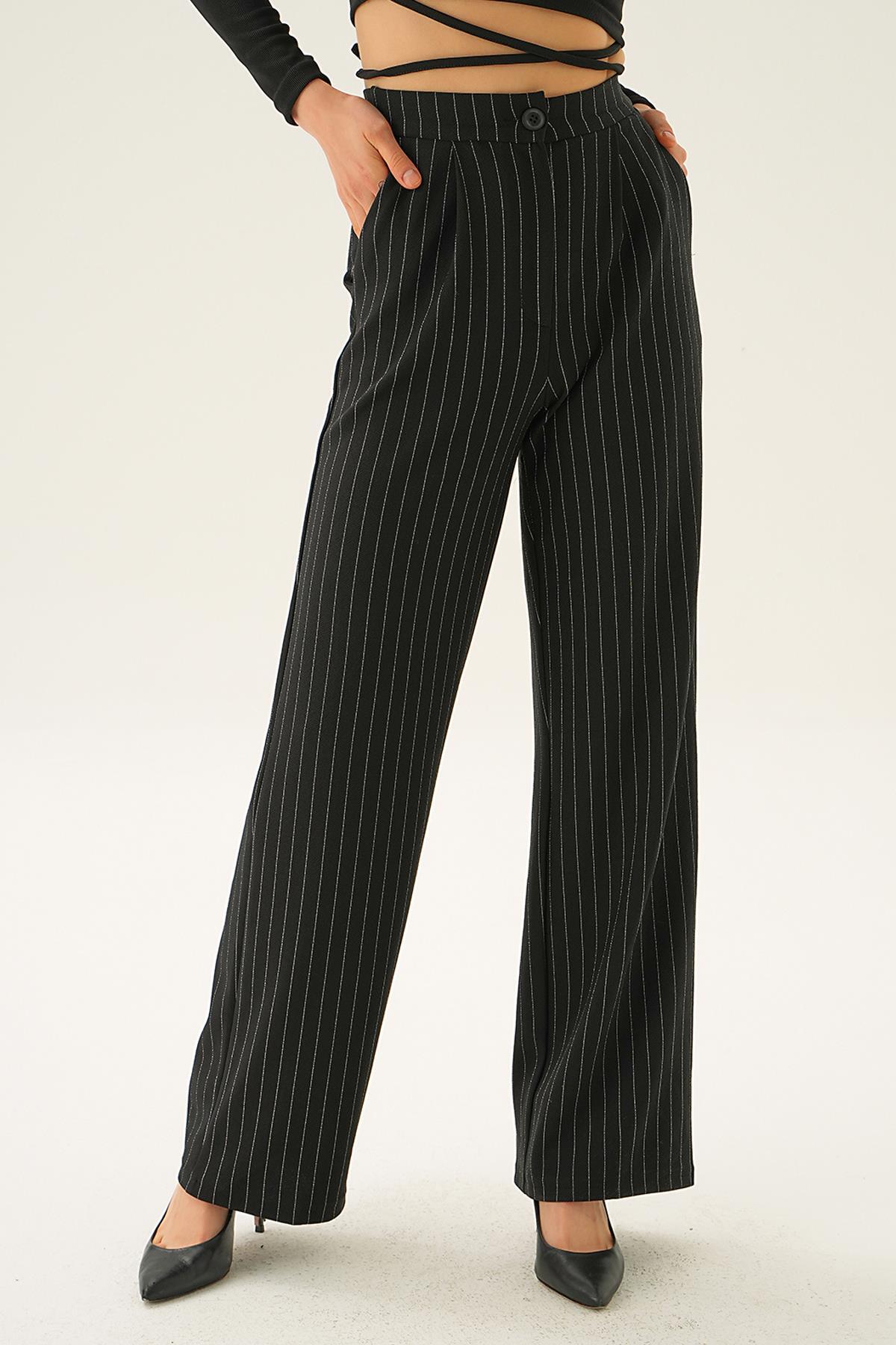 Siyah Çizgili Geniş Pantolon 1887