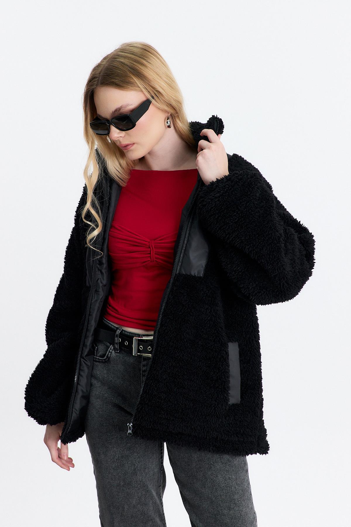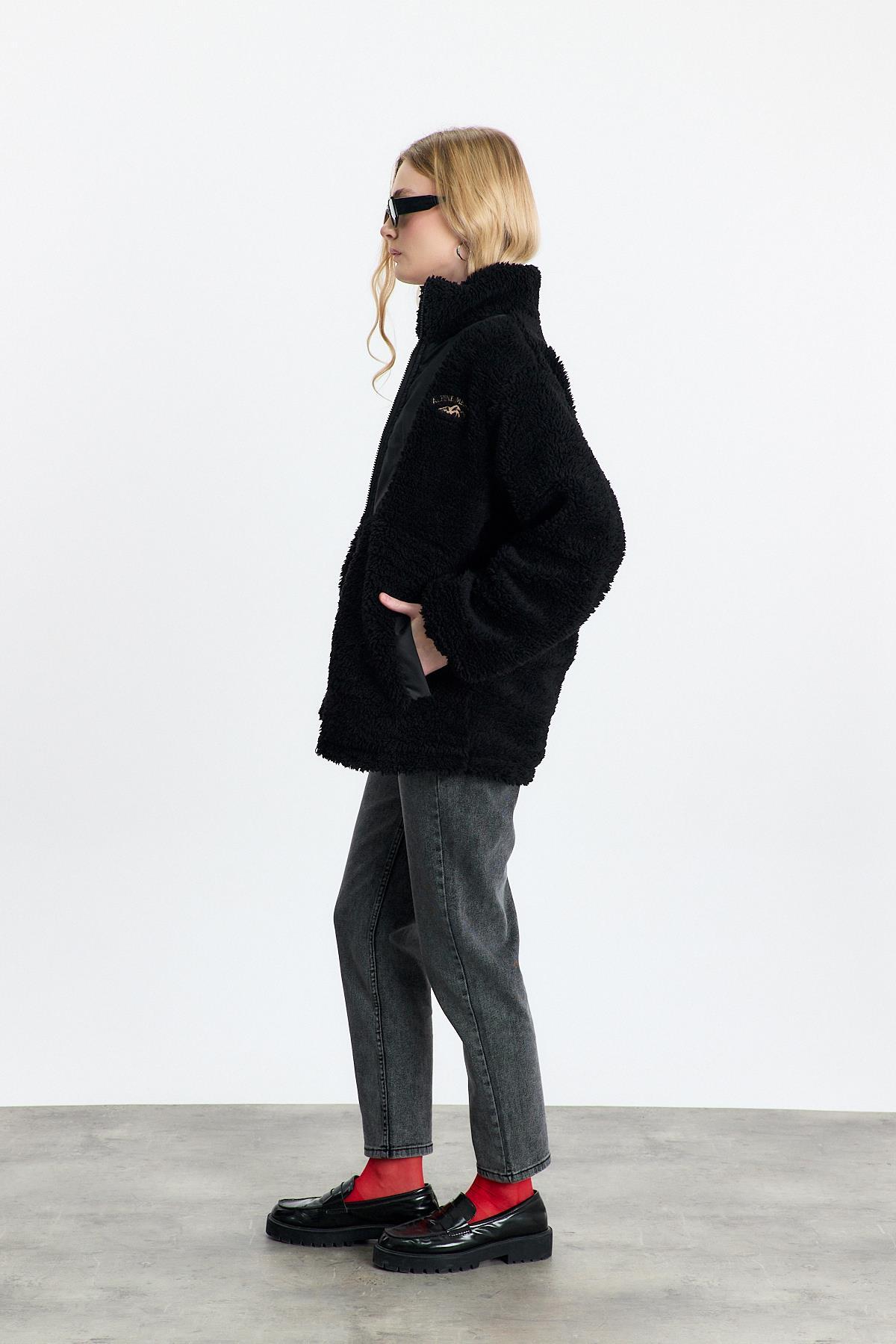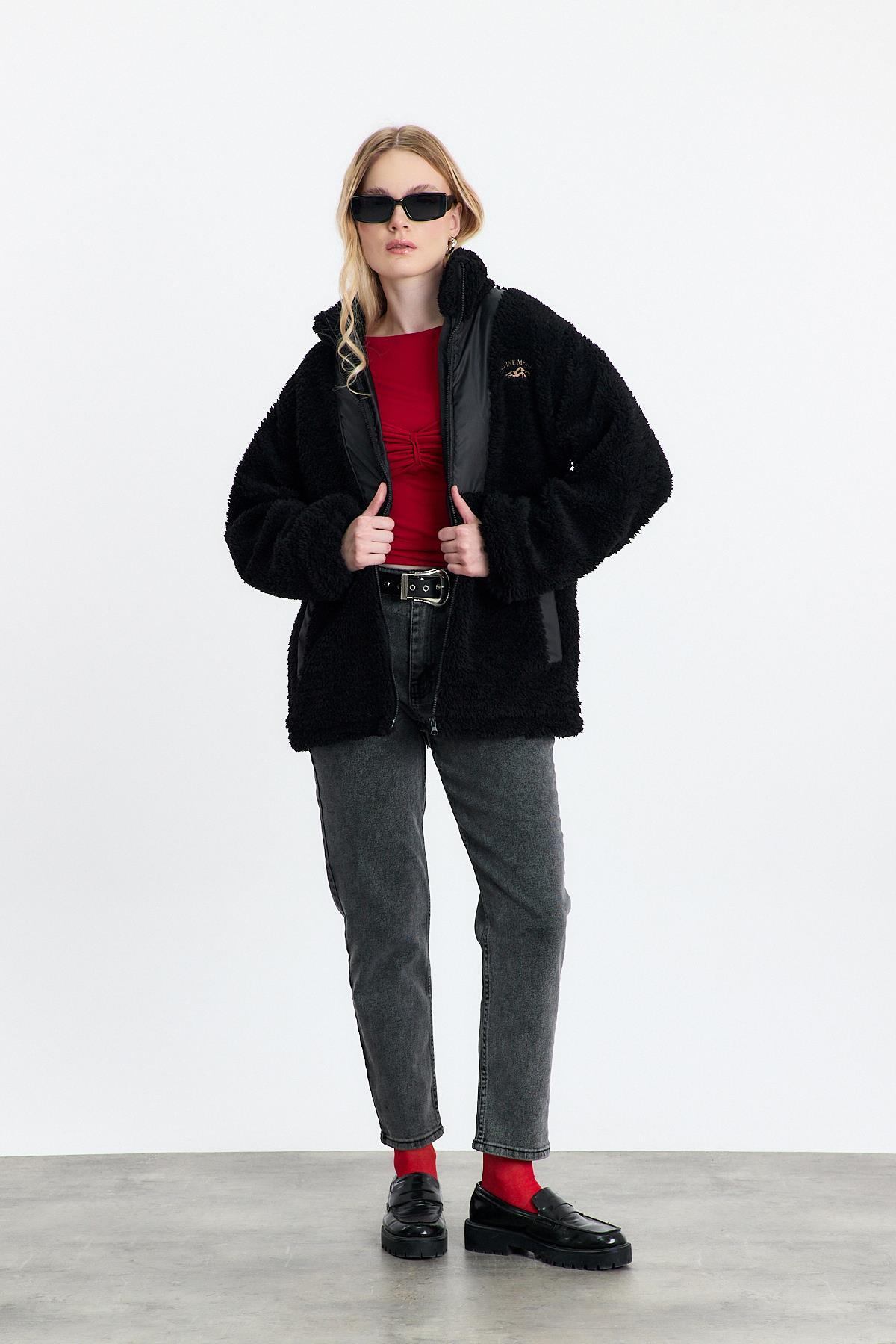 18887 Nakış Detay Cepli Welsoft Hırka Siyah