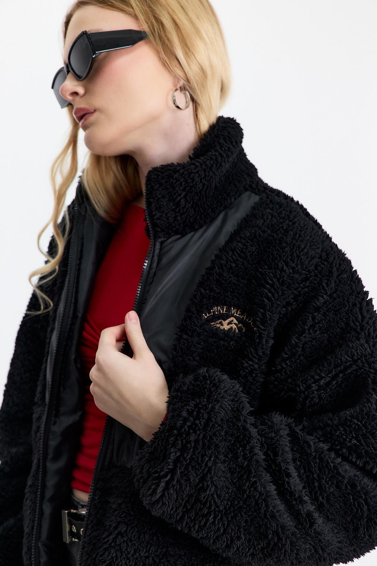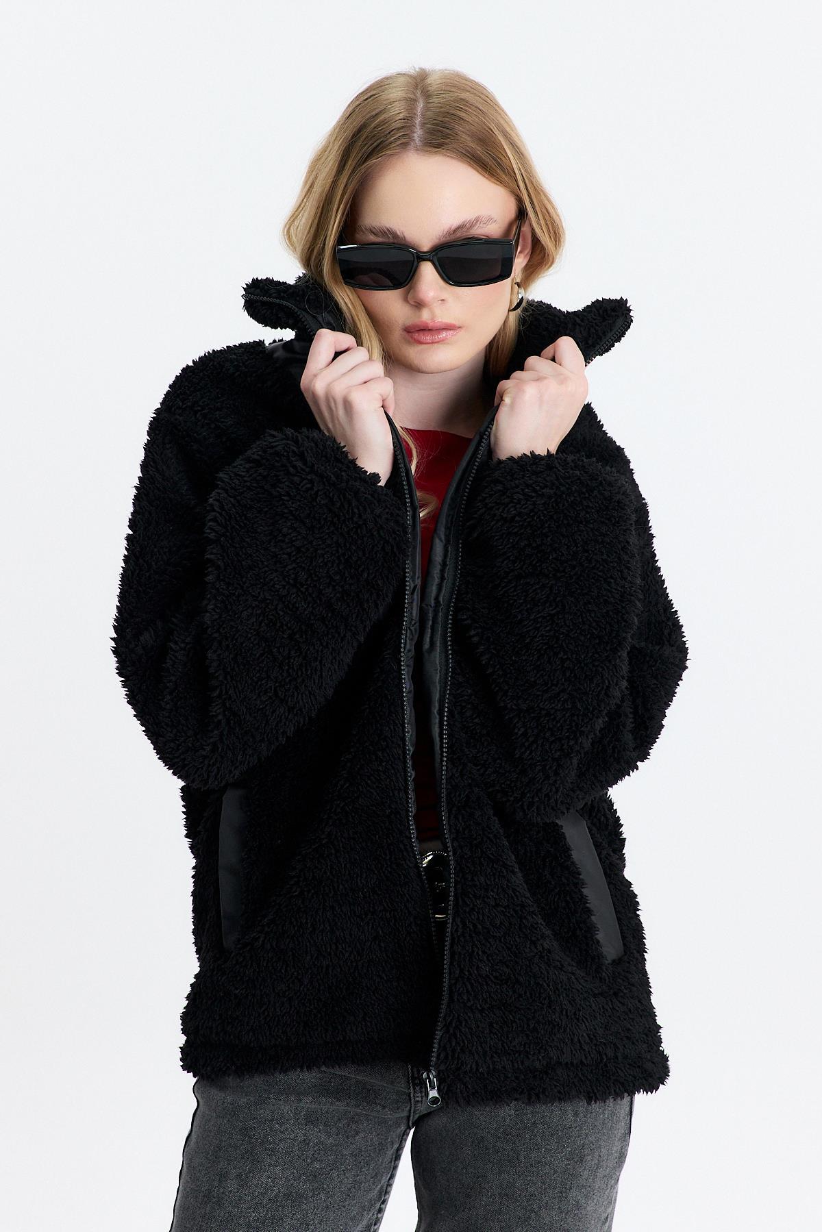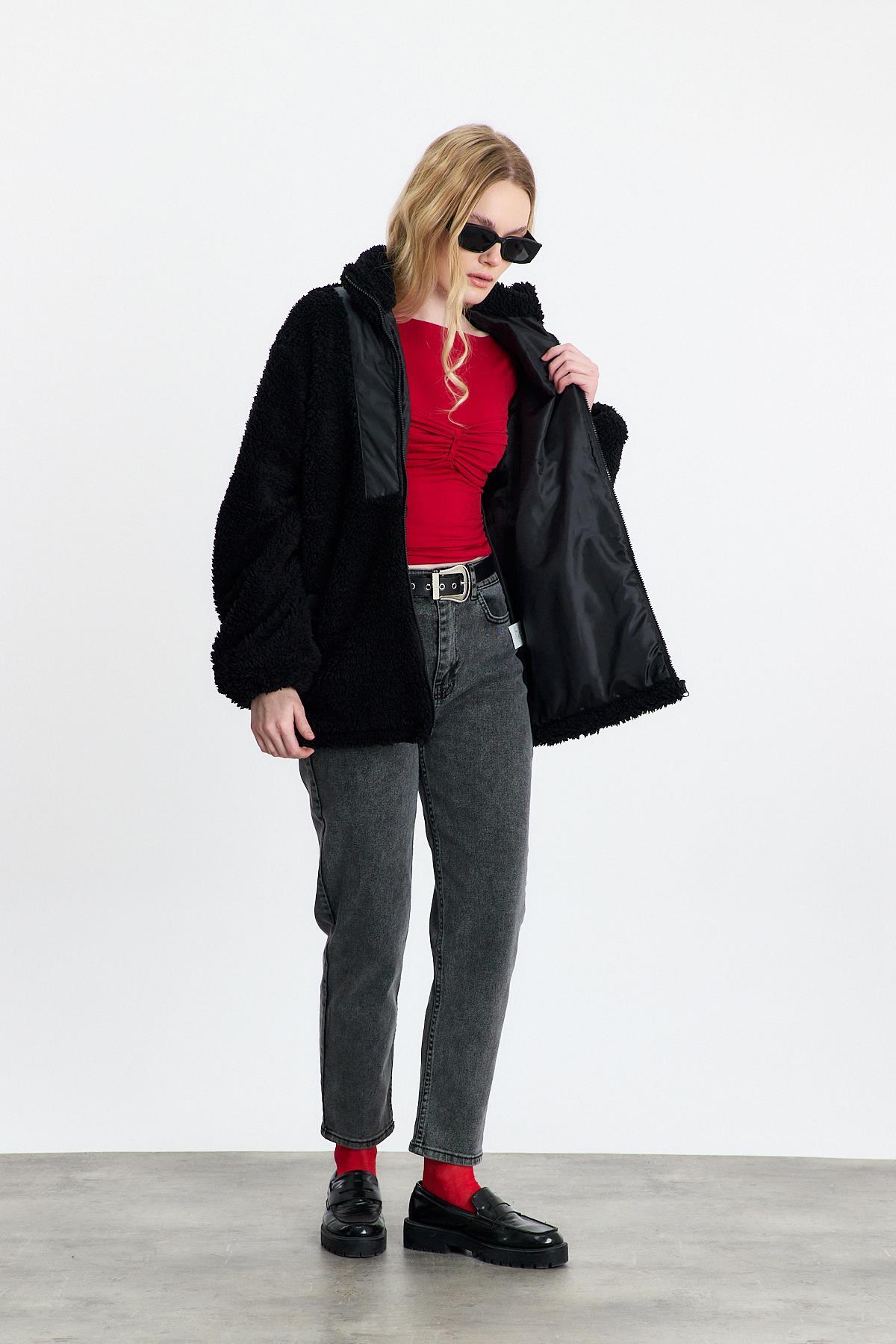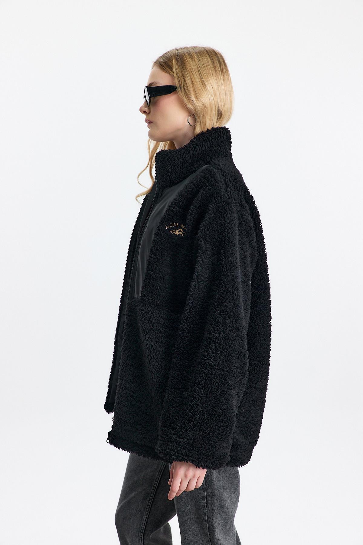18887 Nakış Detay Cepli Welsoft Hırka Siyah