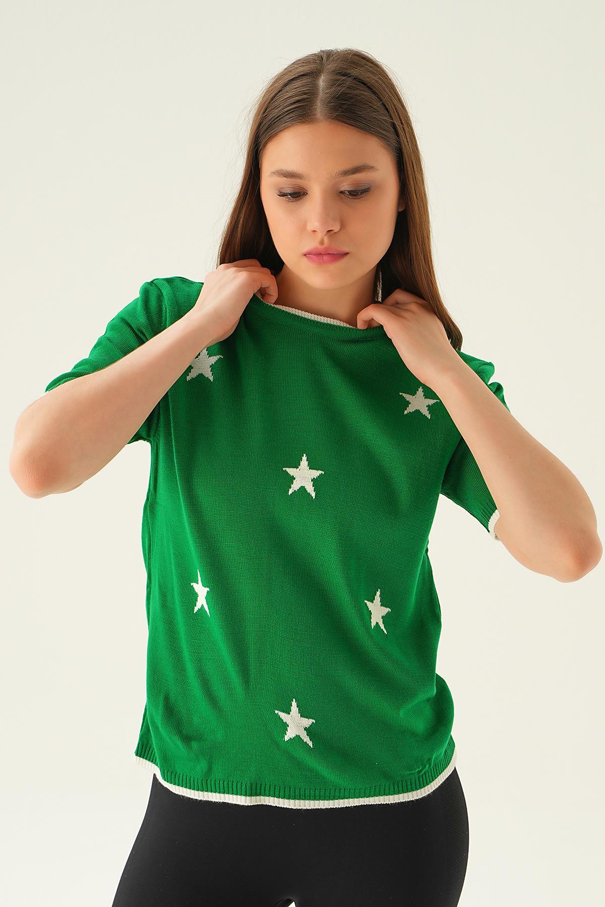 Benetton Yeşili Yıldız Detay Tişört 1901