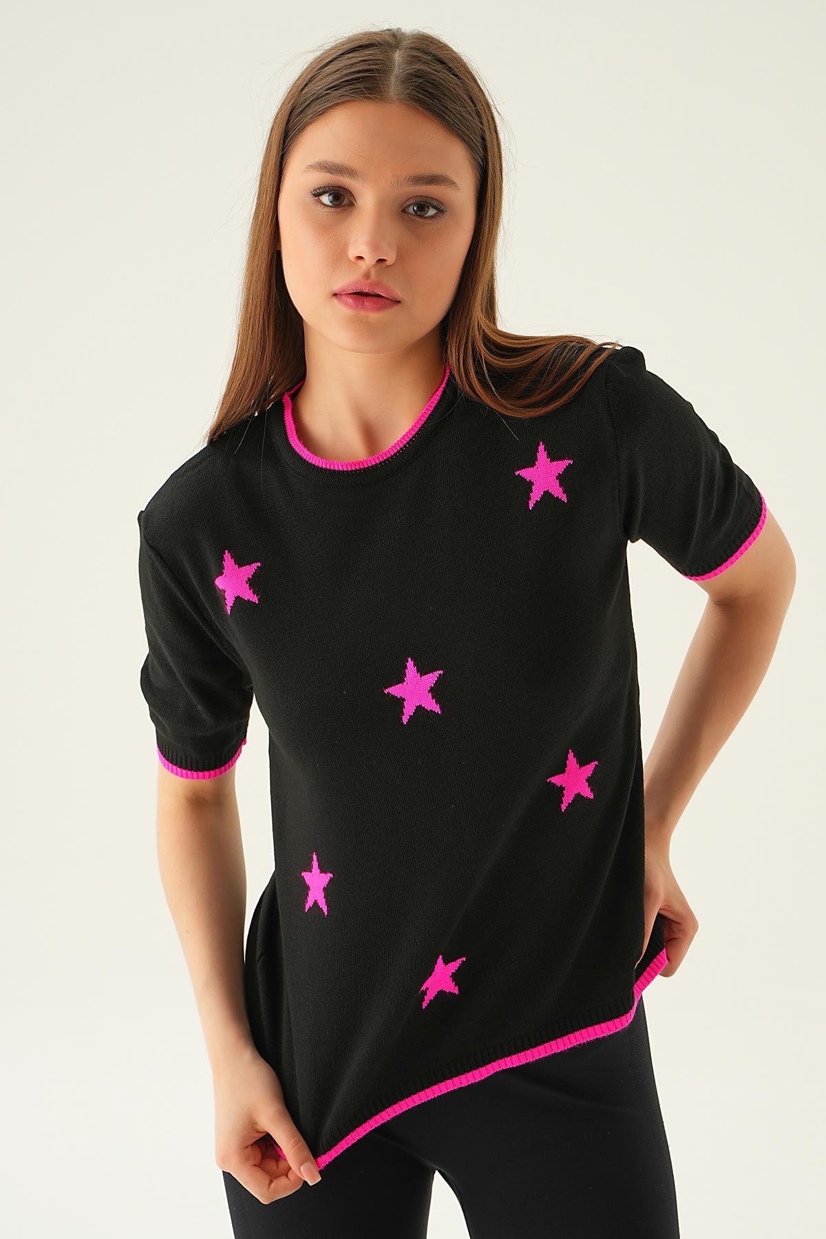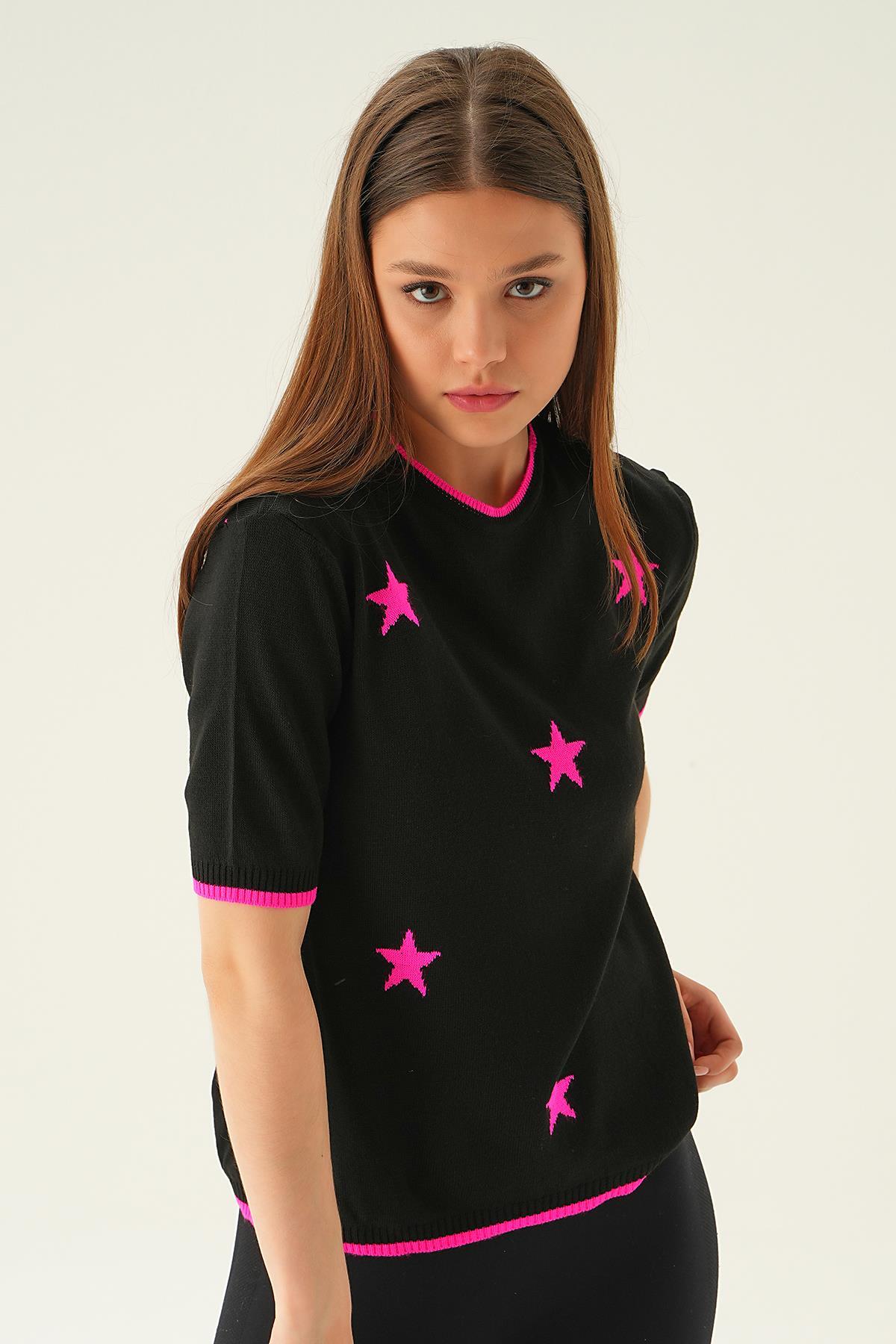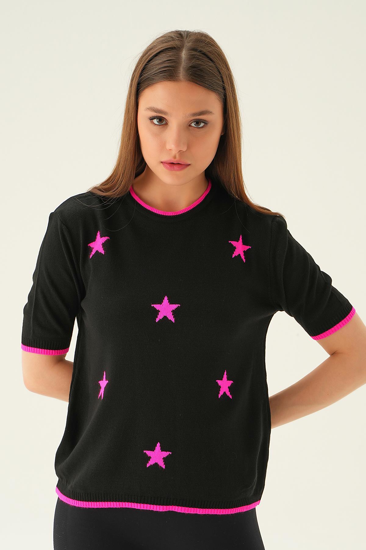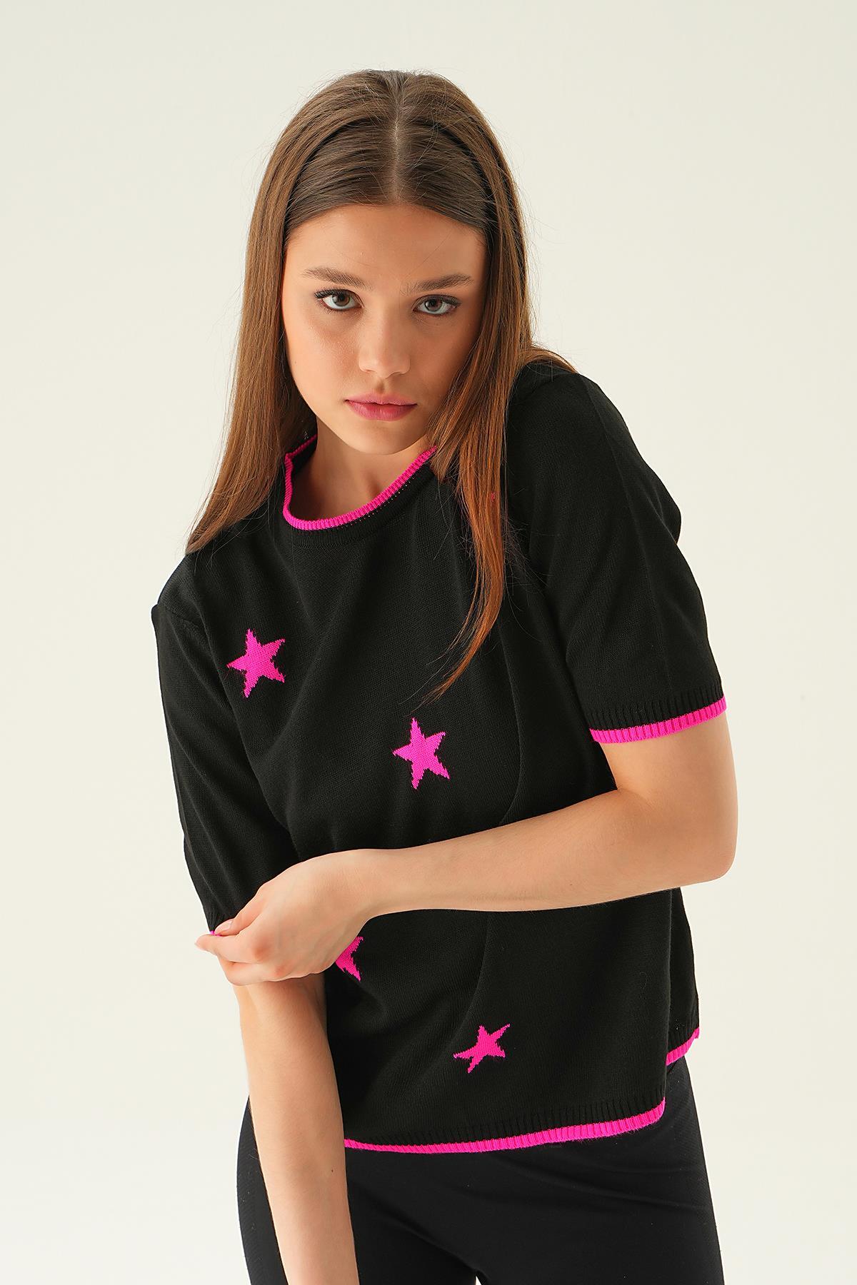 Siyah Yıldız Detay Tişört 1901