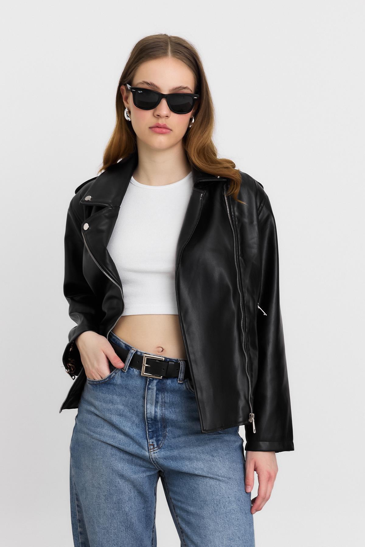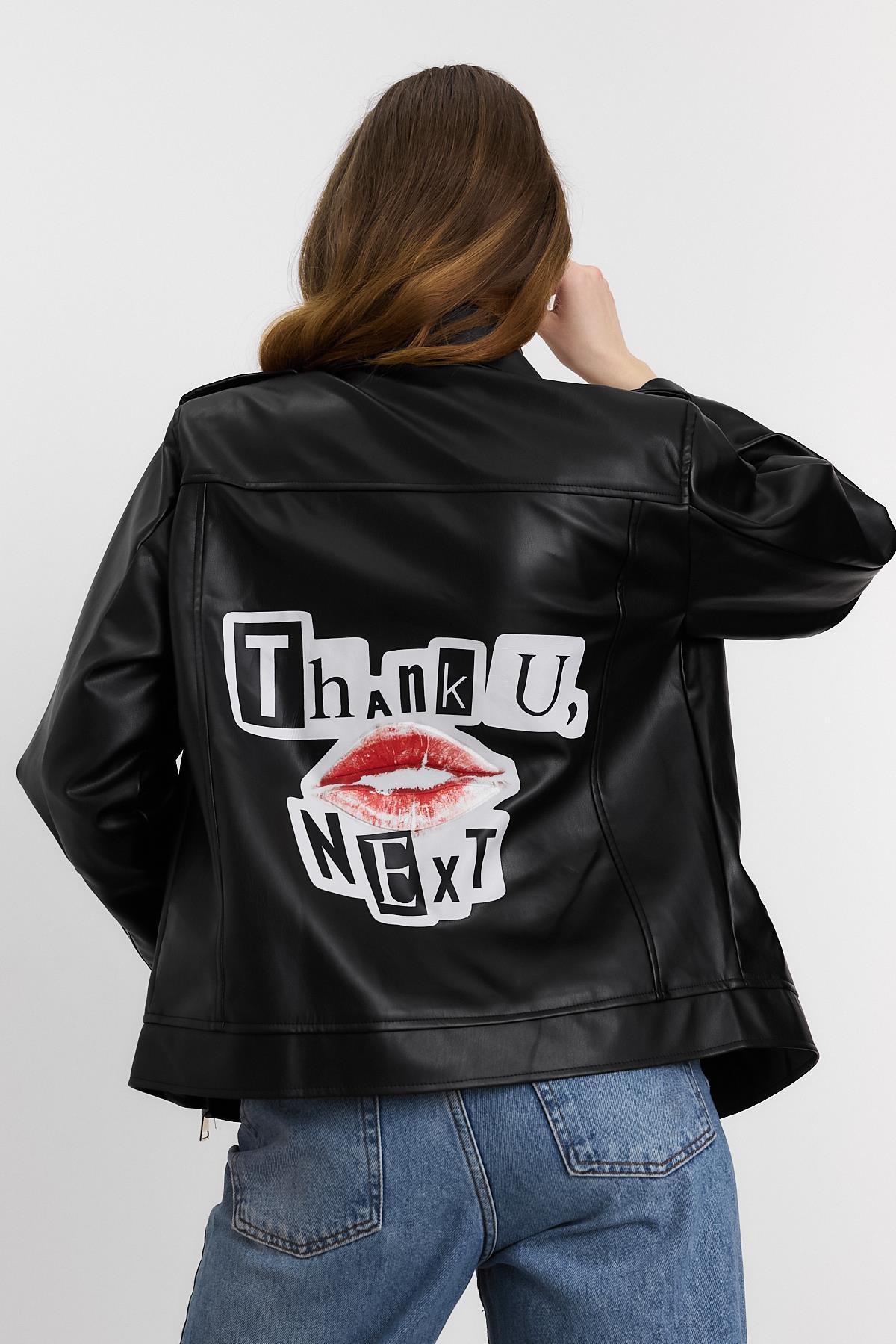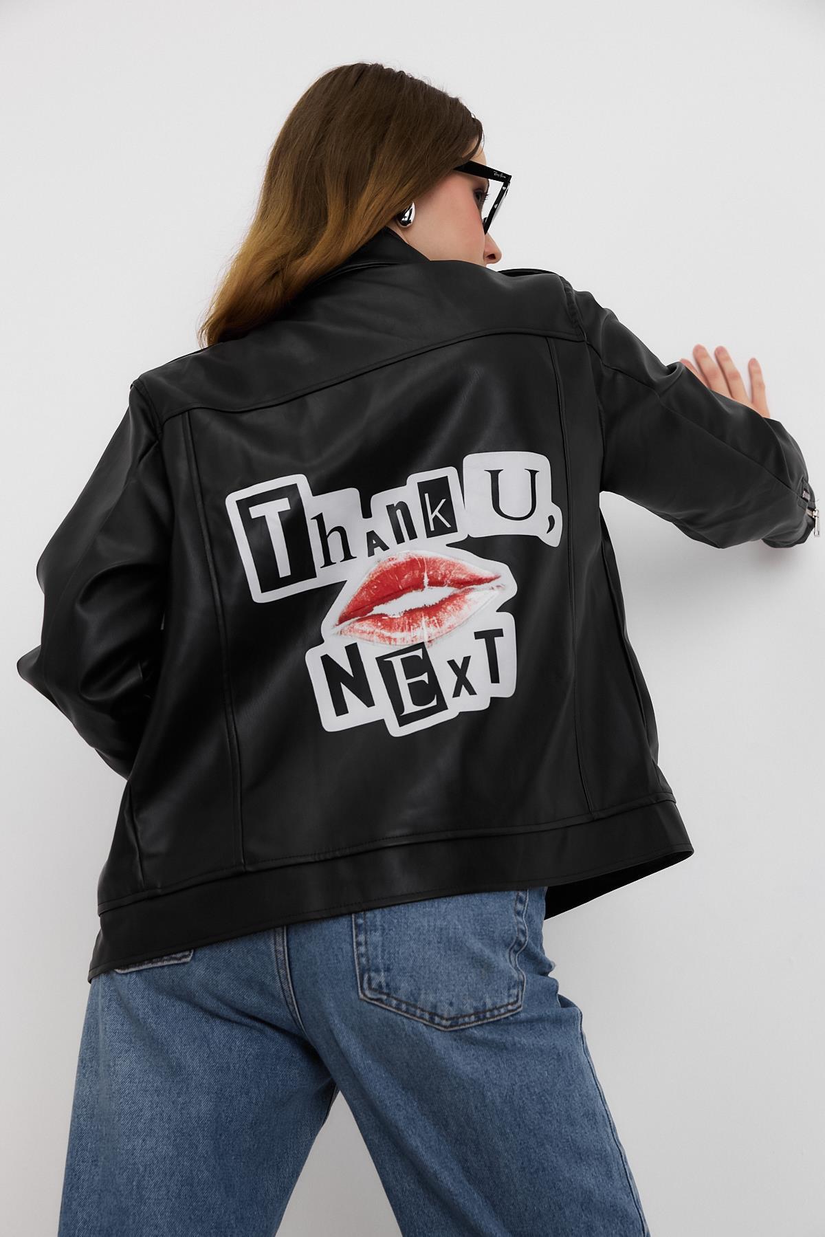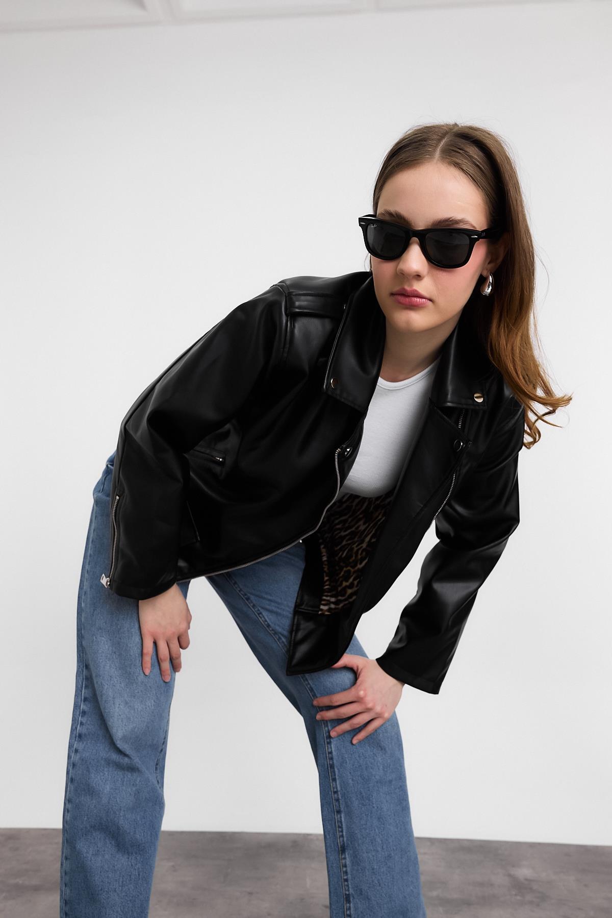 1910 Arkası Baskılı Leopar Deri Ceket Siyah