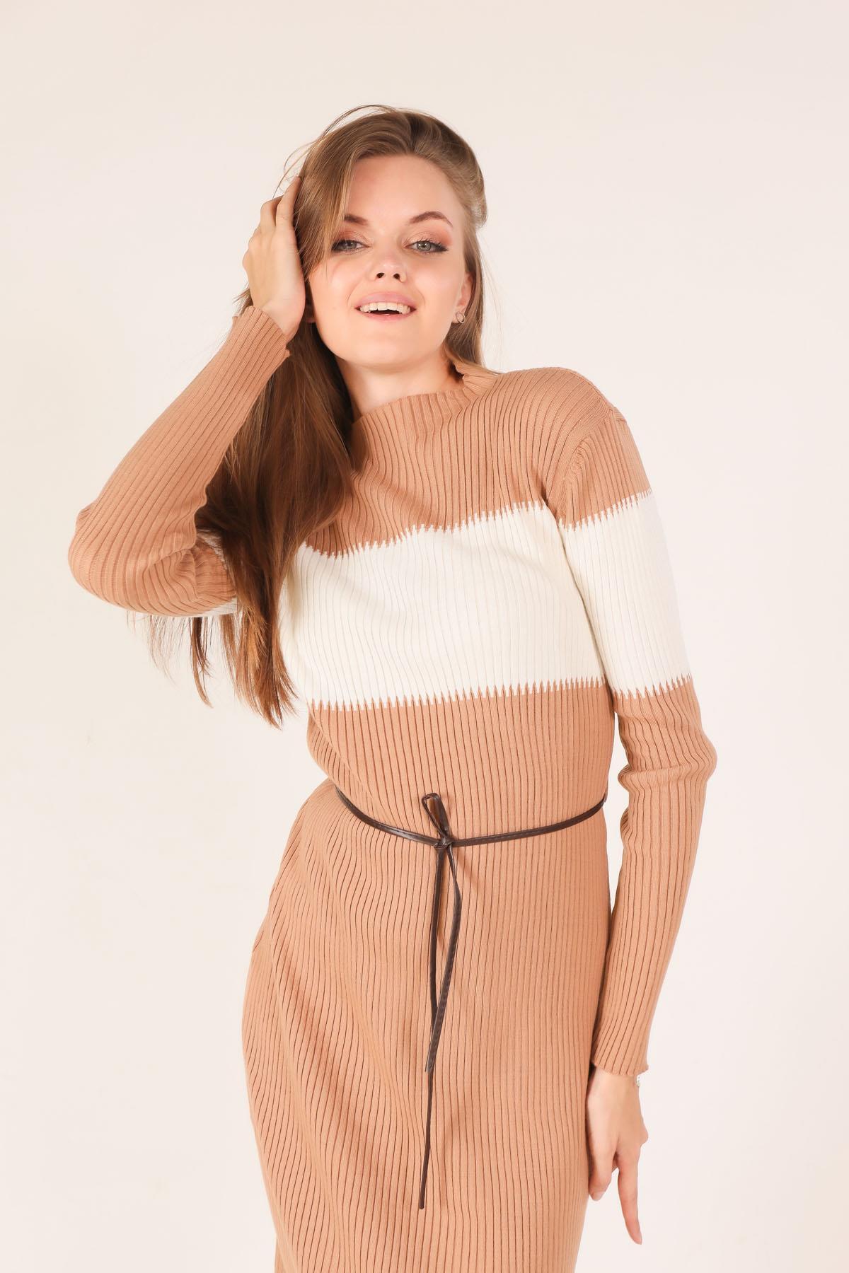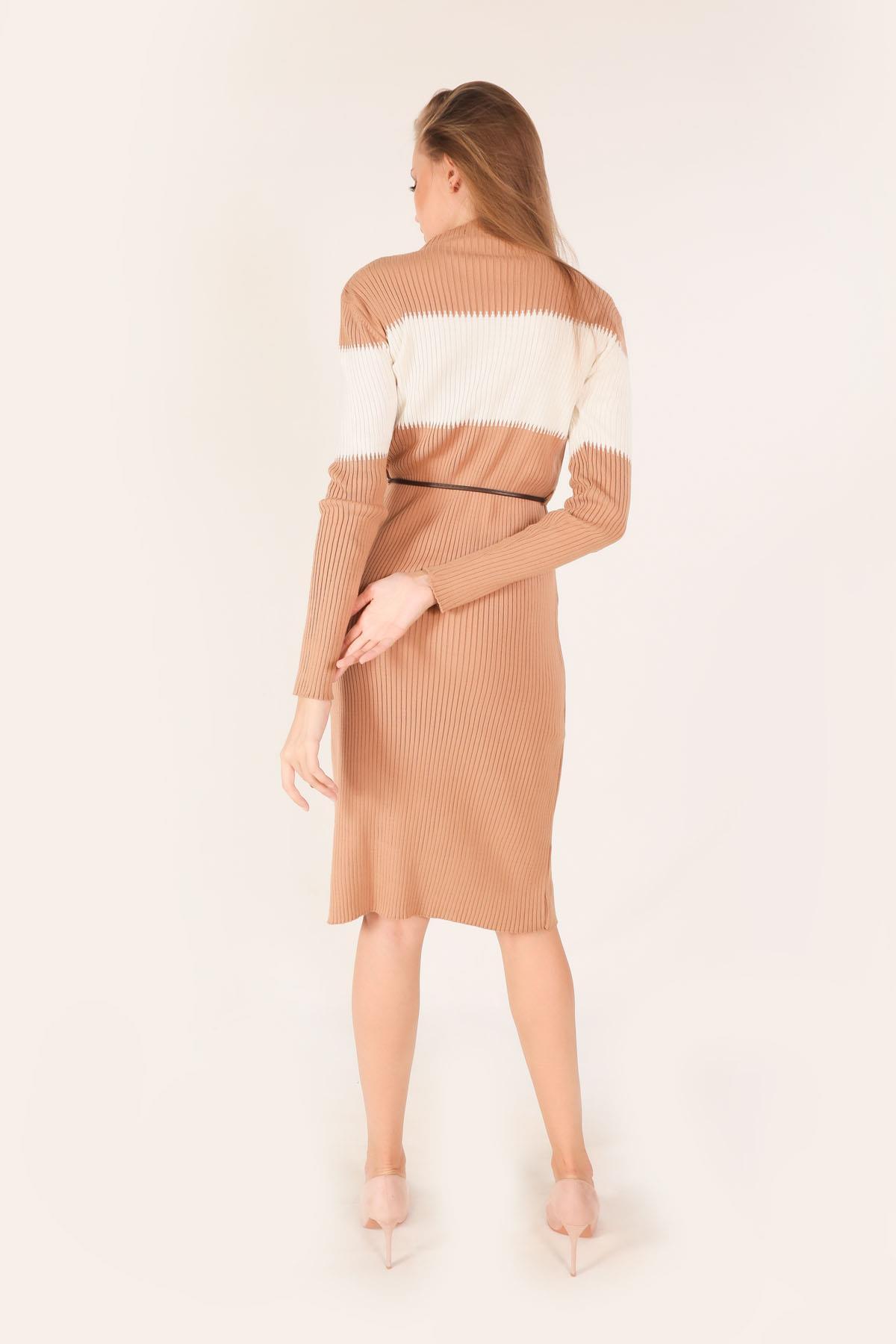 Kahve Desenli Bel Bağlama Elbise 2808 - RAYS Kahve Desenli Bel Bağlama Elbise 2808 - RAYS (1)