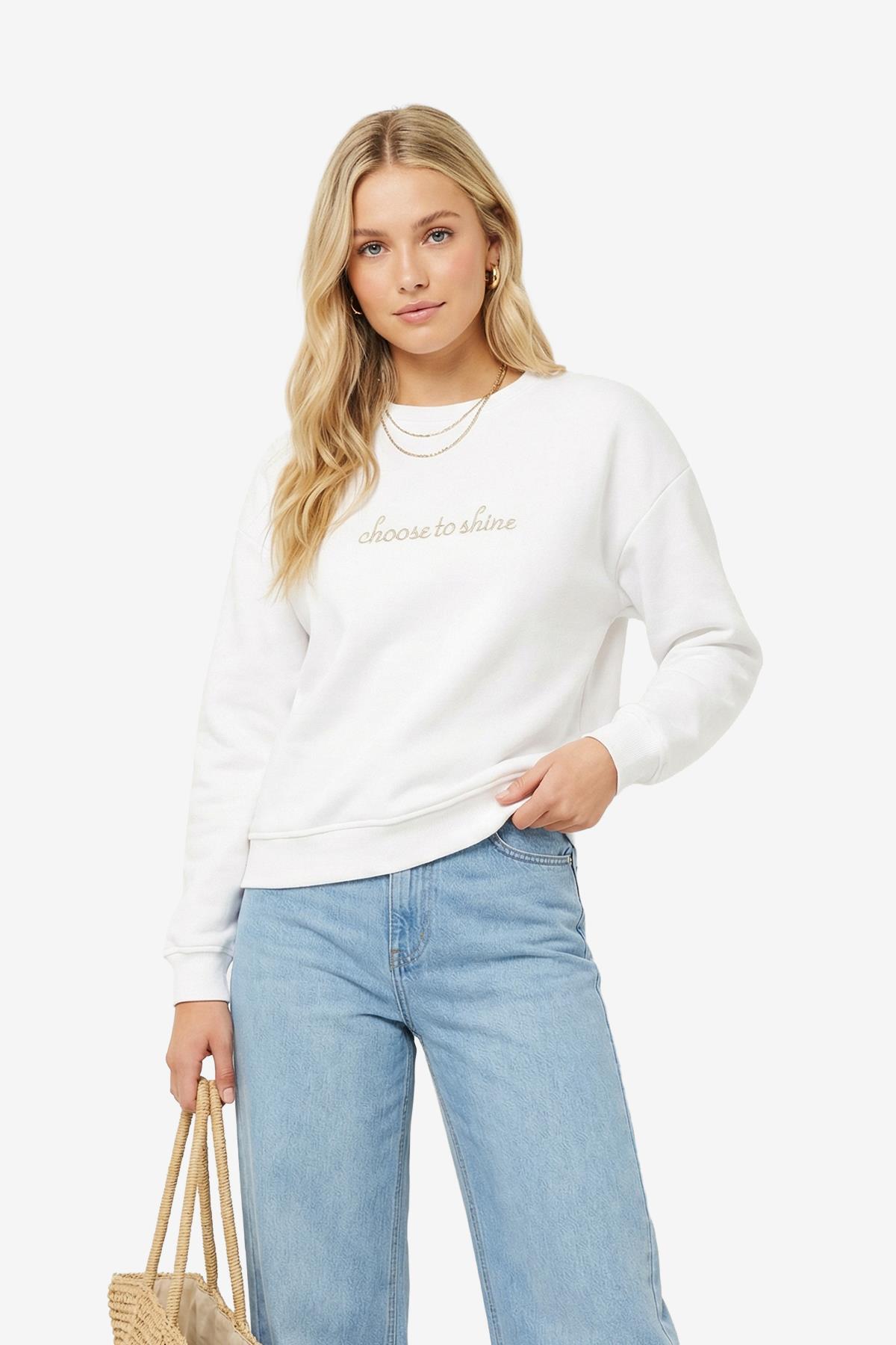 Ekru Dik Yaka Reglan Kol Kadın Sweat 8252A