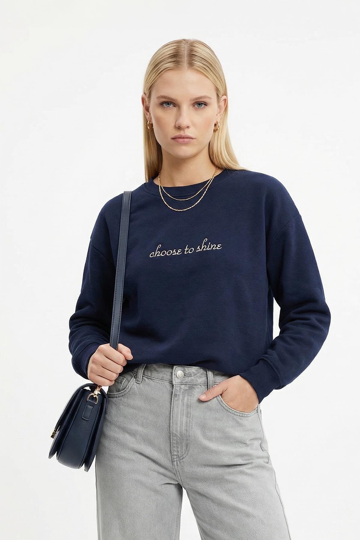 Vizon Oversize Bisiklet Yaka Kadın Sweat 8251A