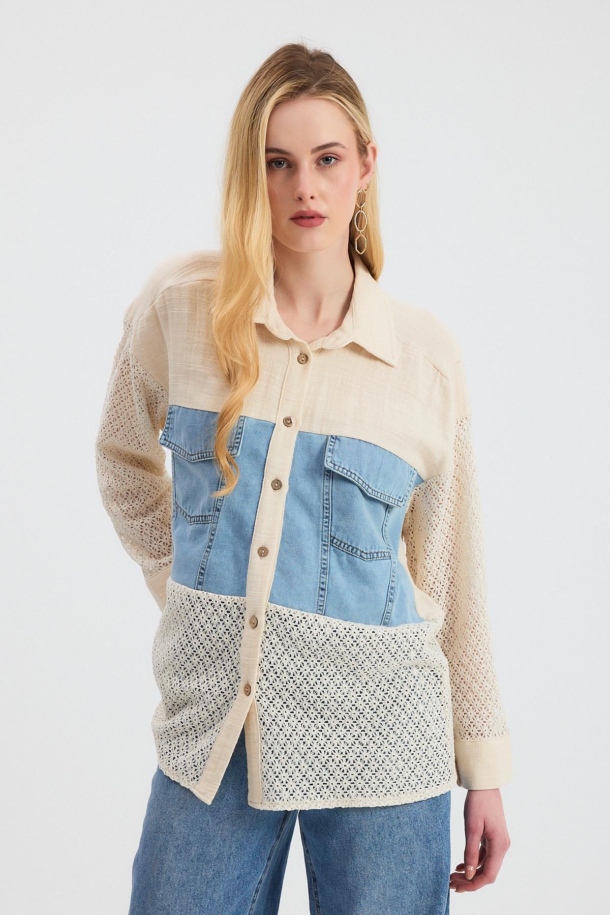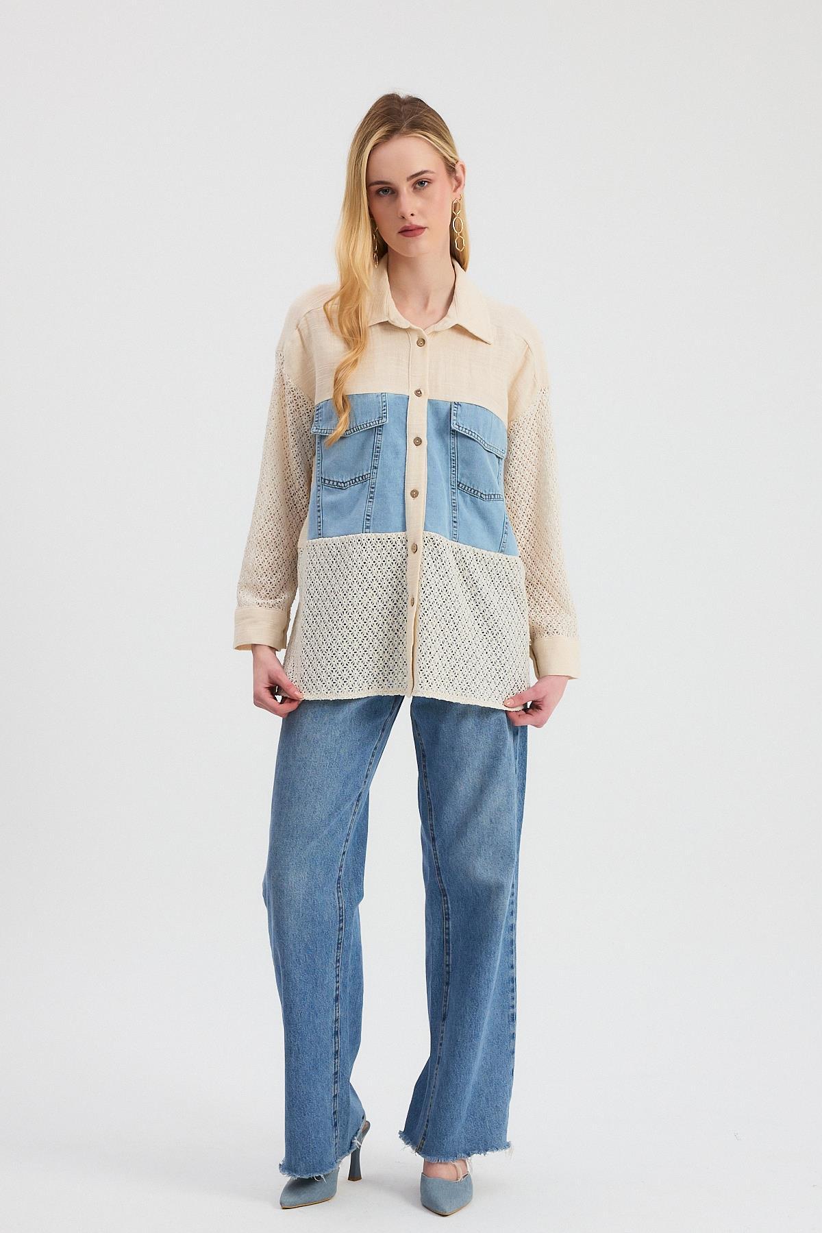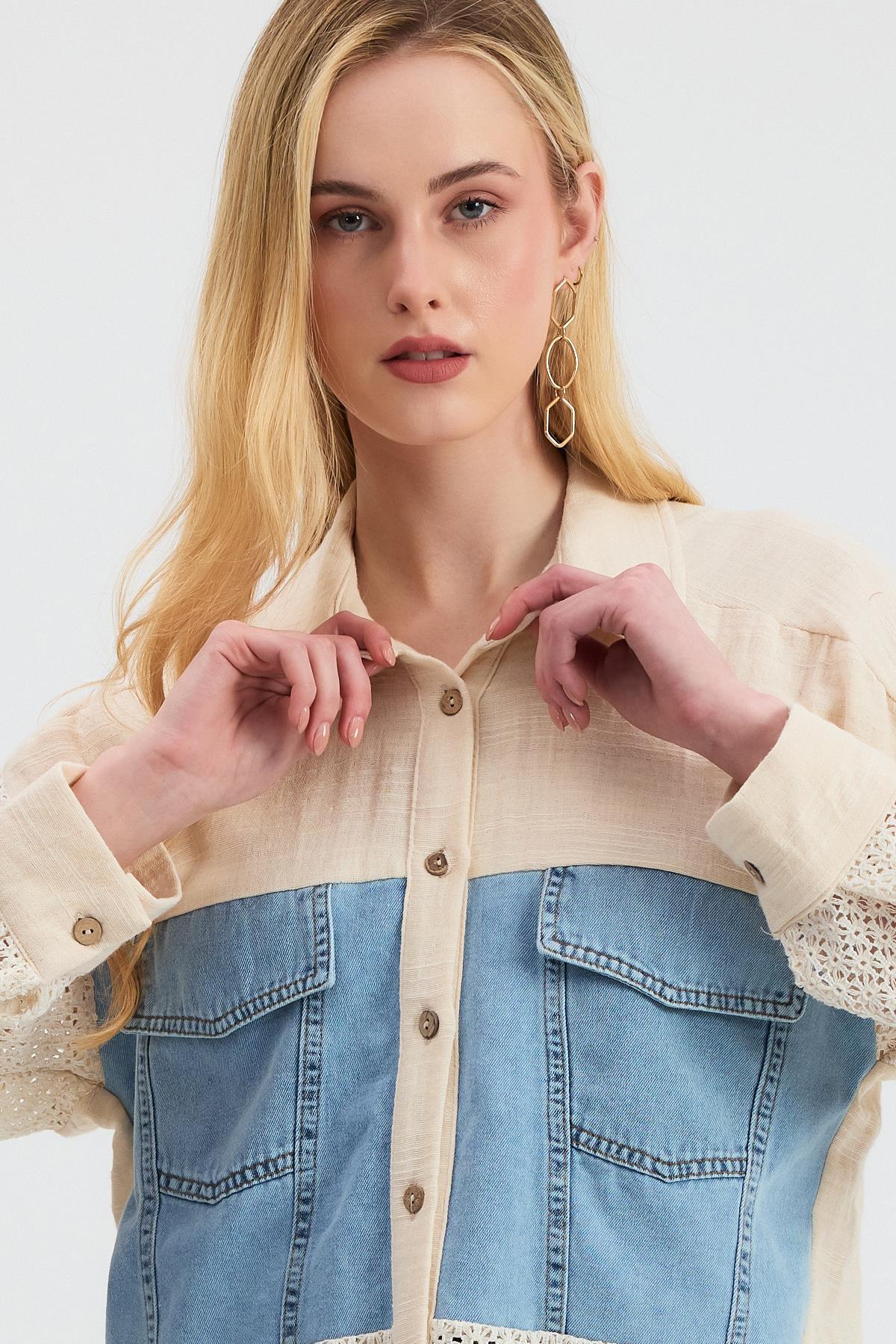 Bej Kot Detay Dantelli Gömlek 1987