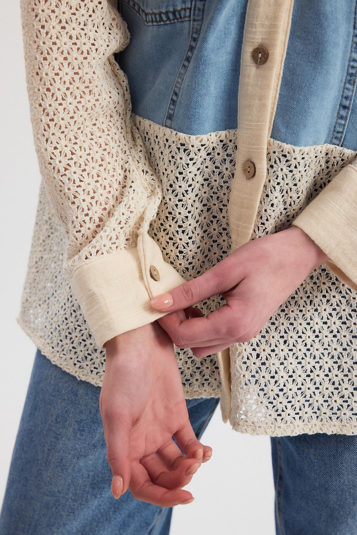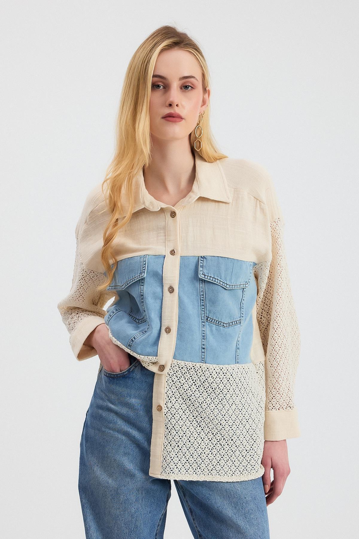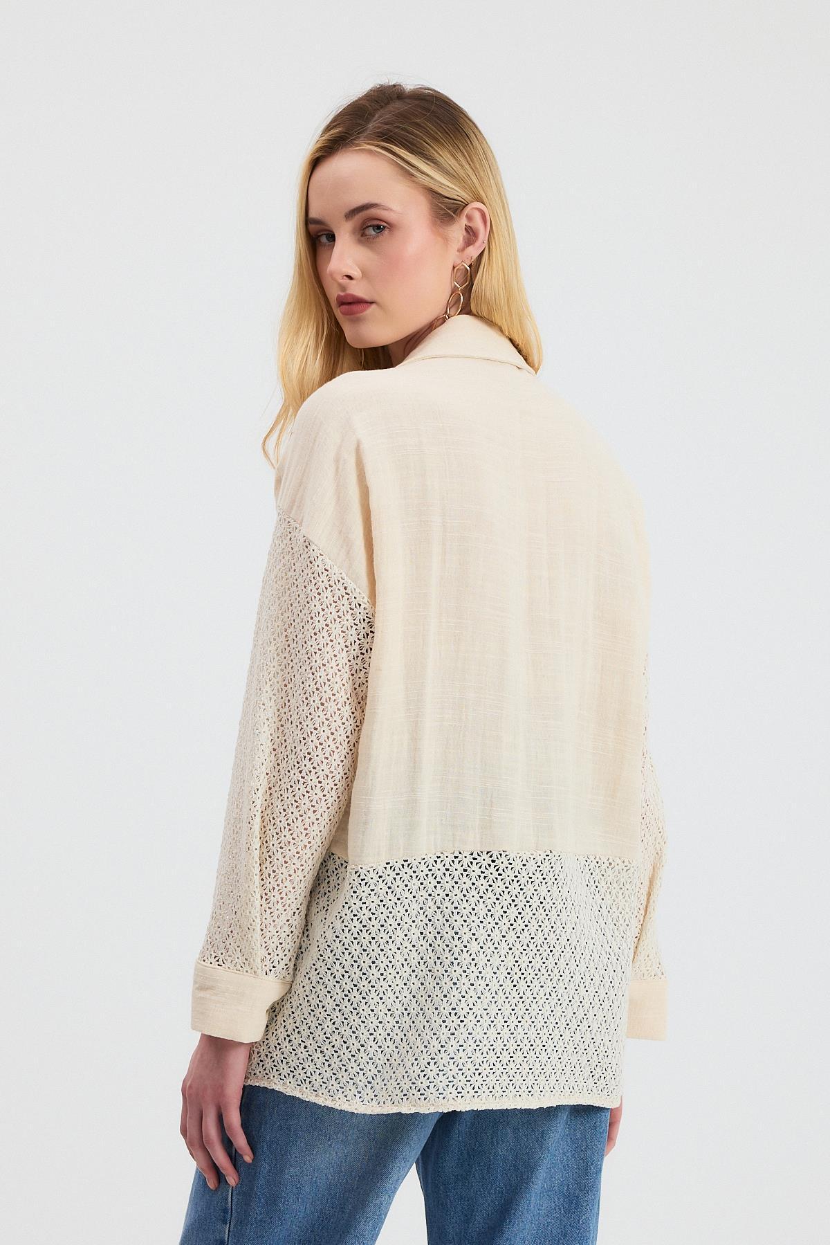 Bej Kot Detay Dantelli Gömlek 1987