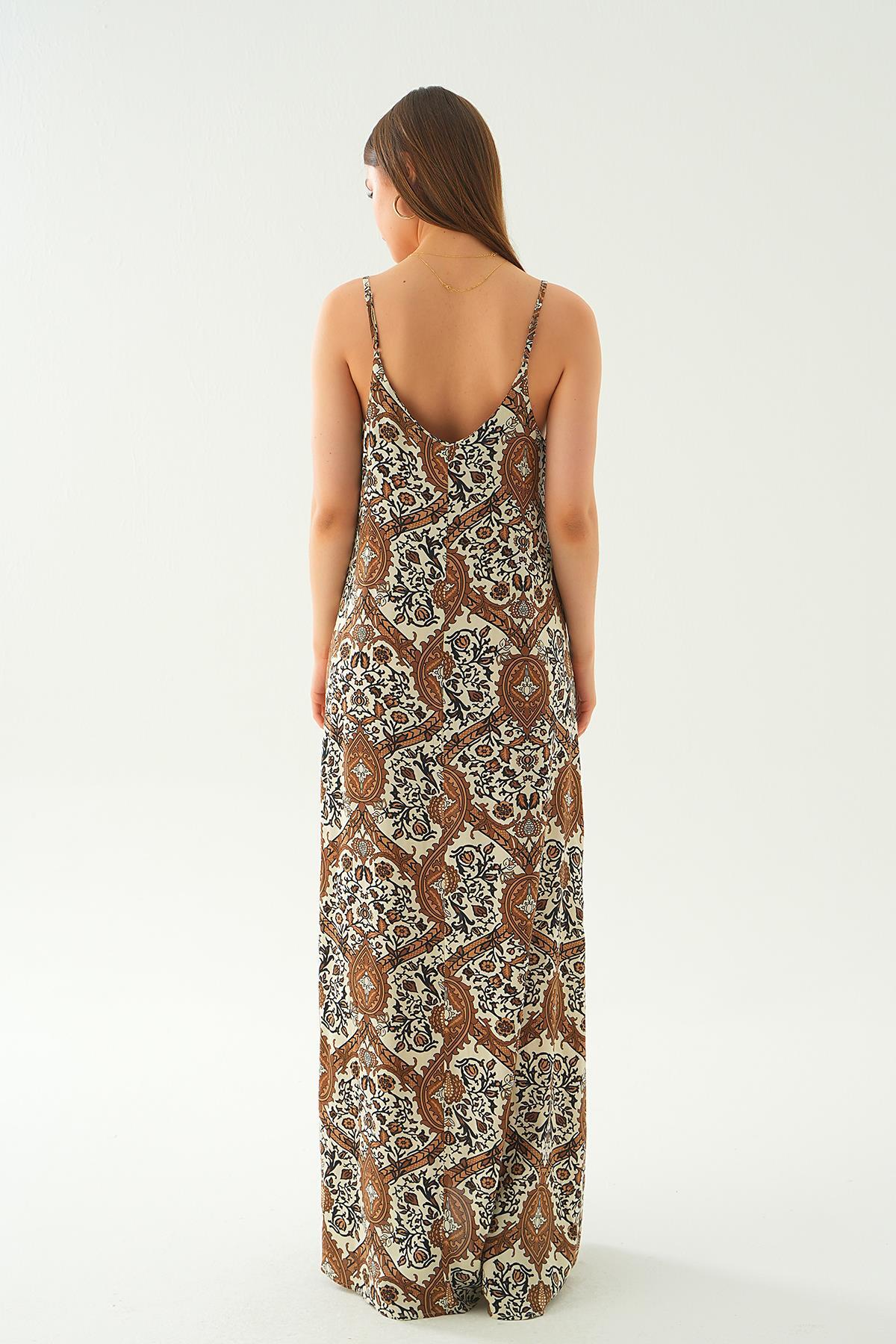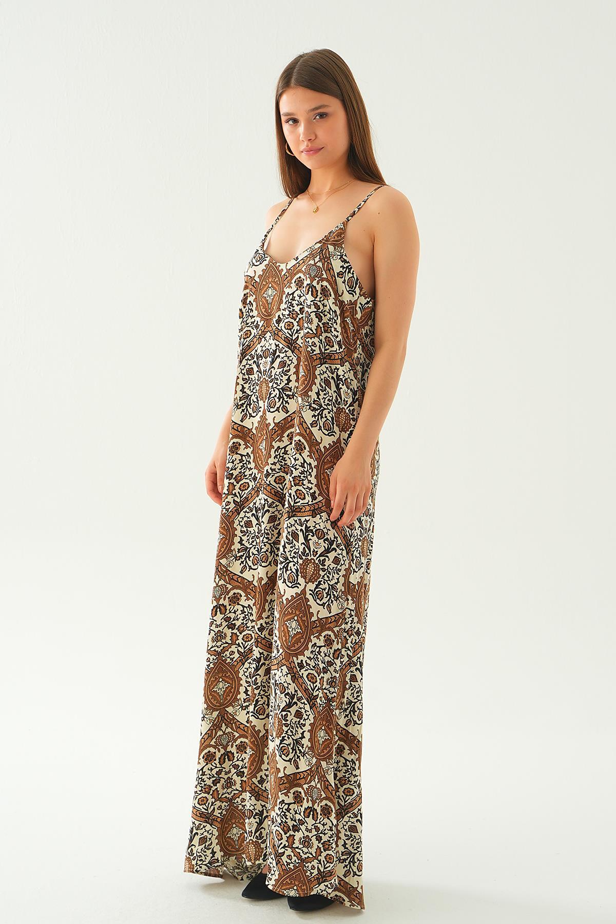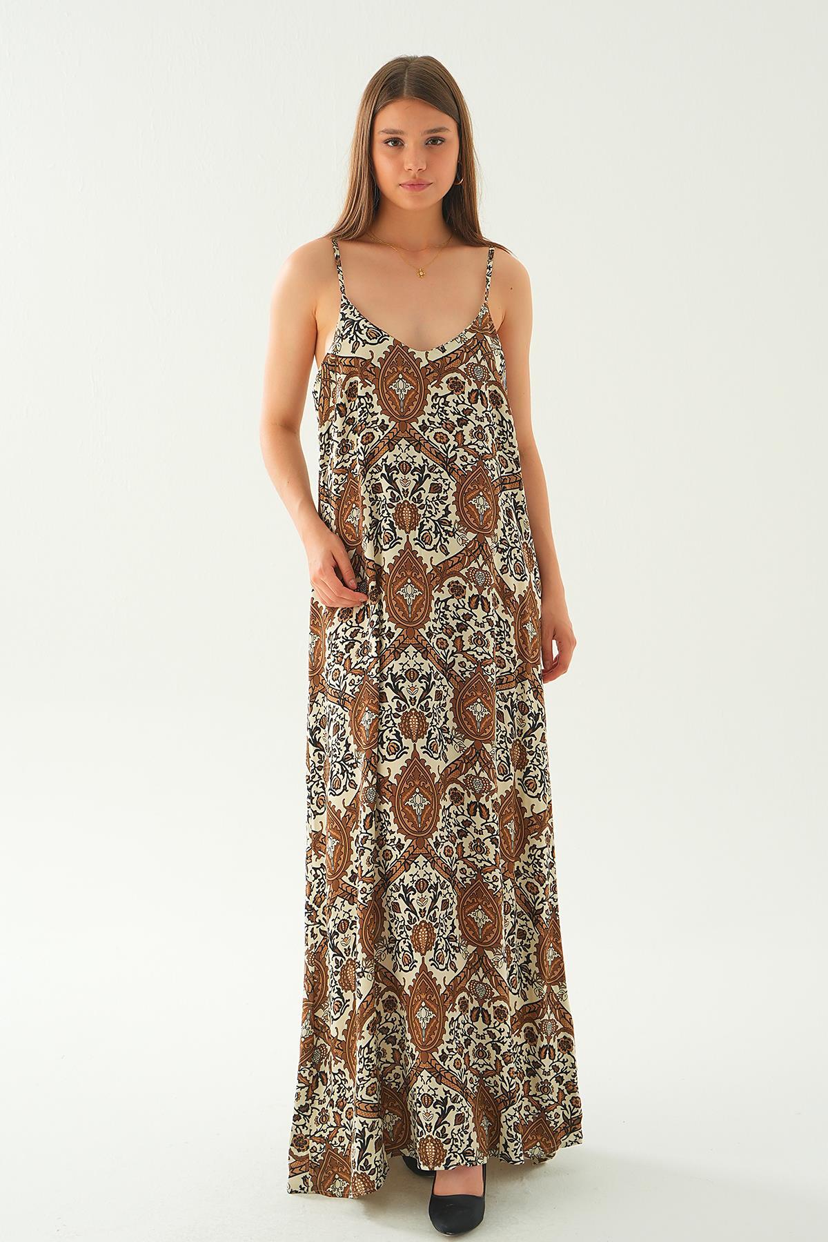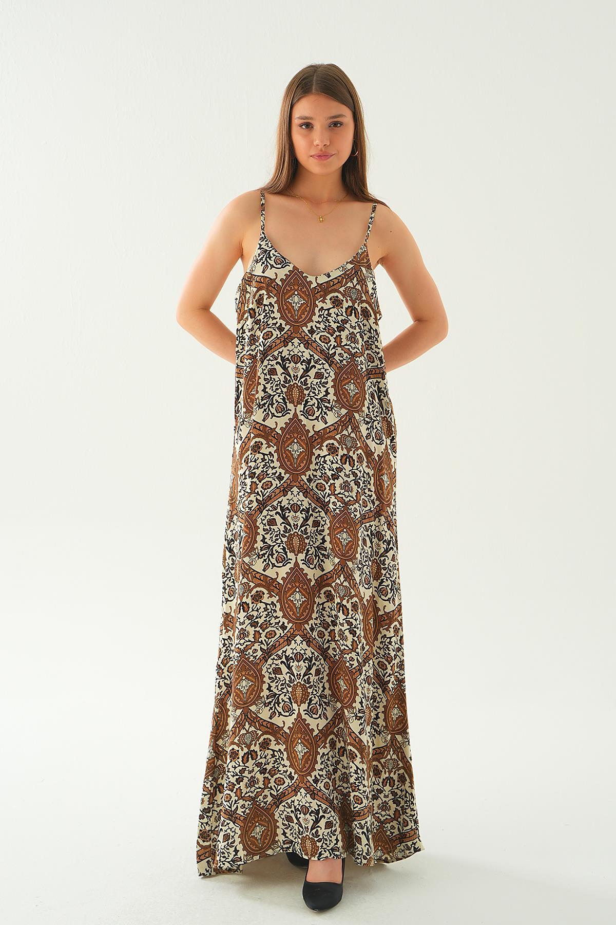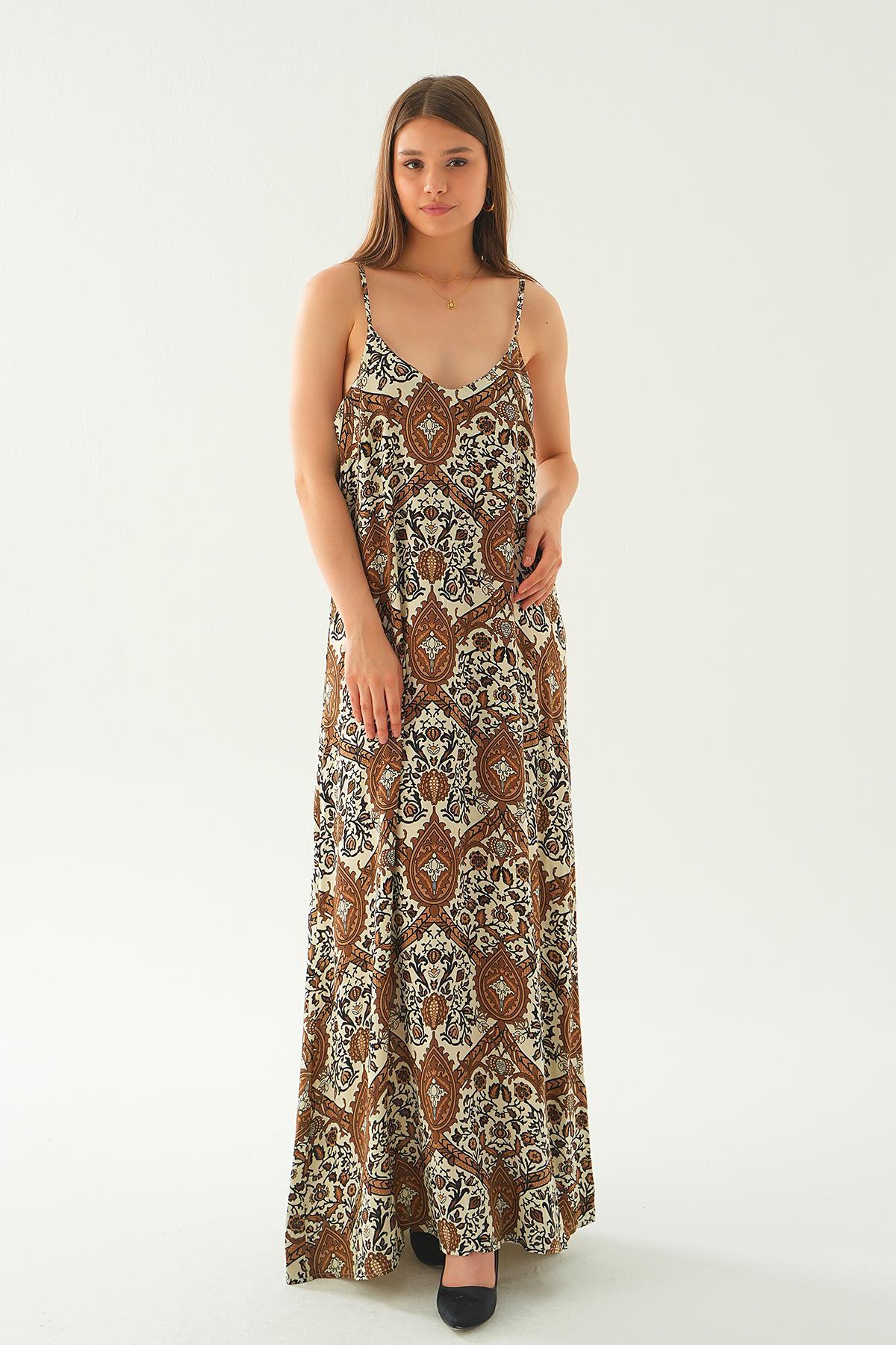 Kahve Etnik Desenli Kemerli Elbise 35560 - RAYS Kahve Etnik Desenli Kemerli Elbise 35560 - RAYS (1)