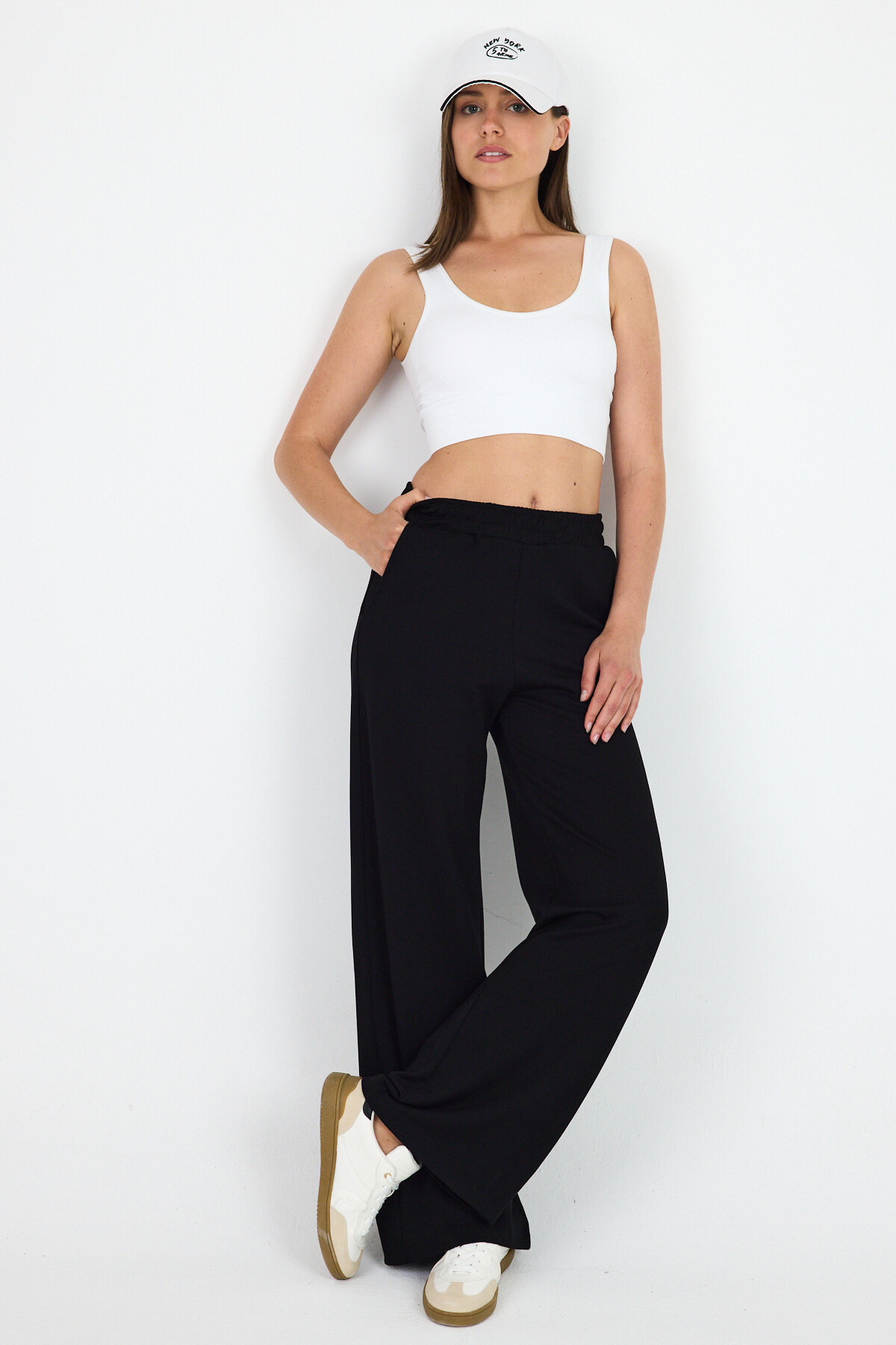 Siyah Bel Lastik Geniş Paça Eşofman 2001