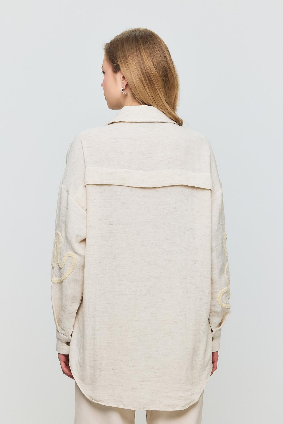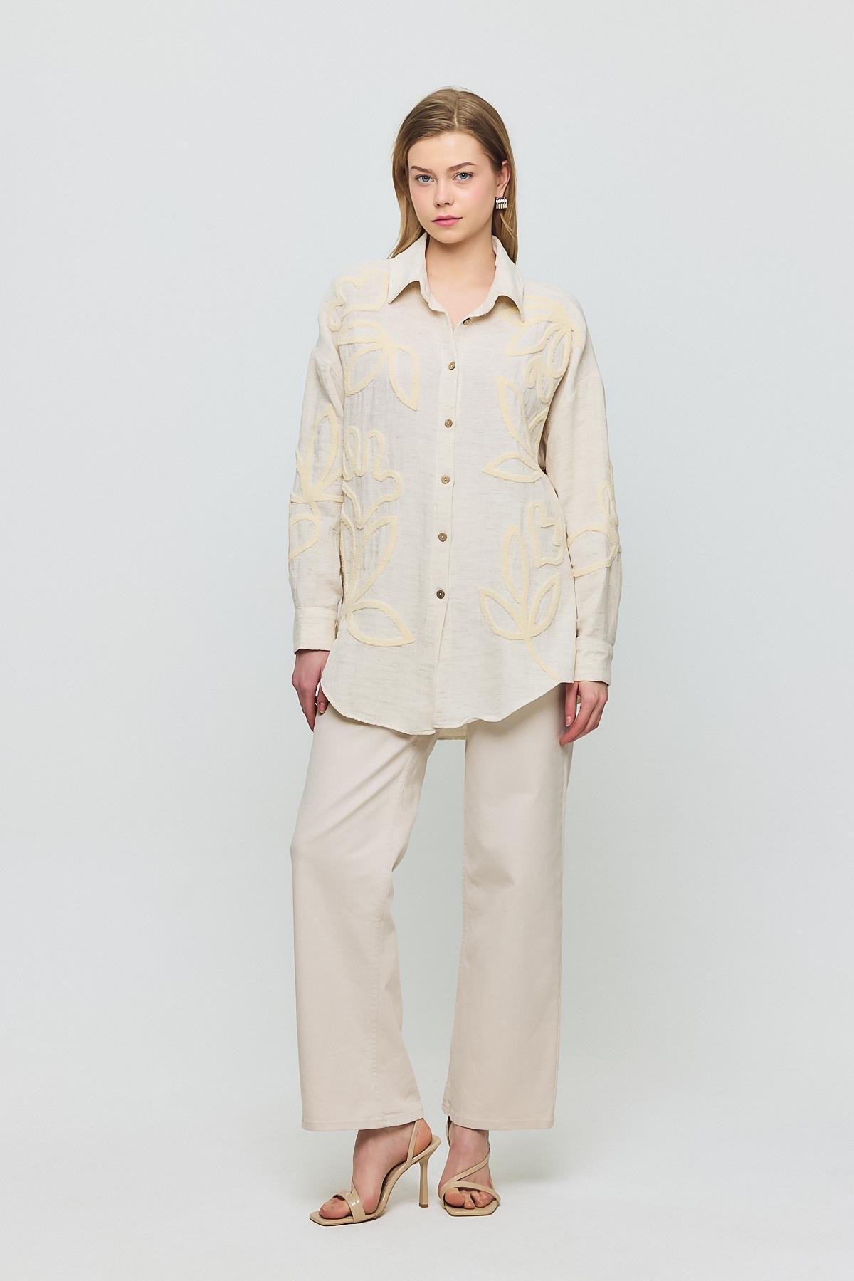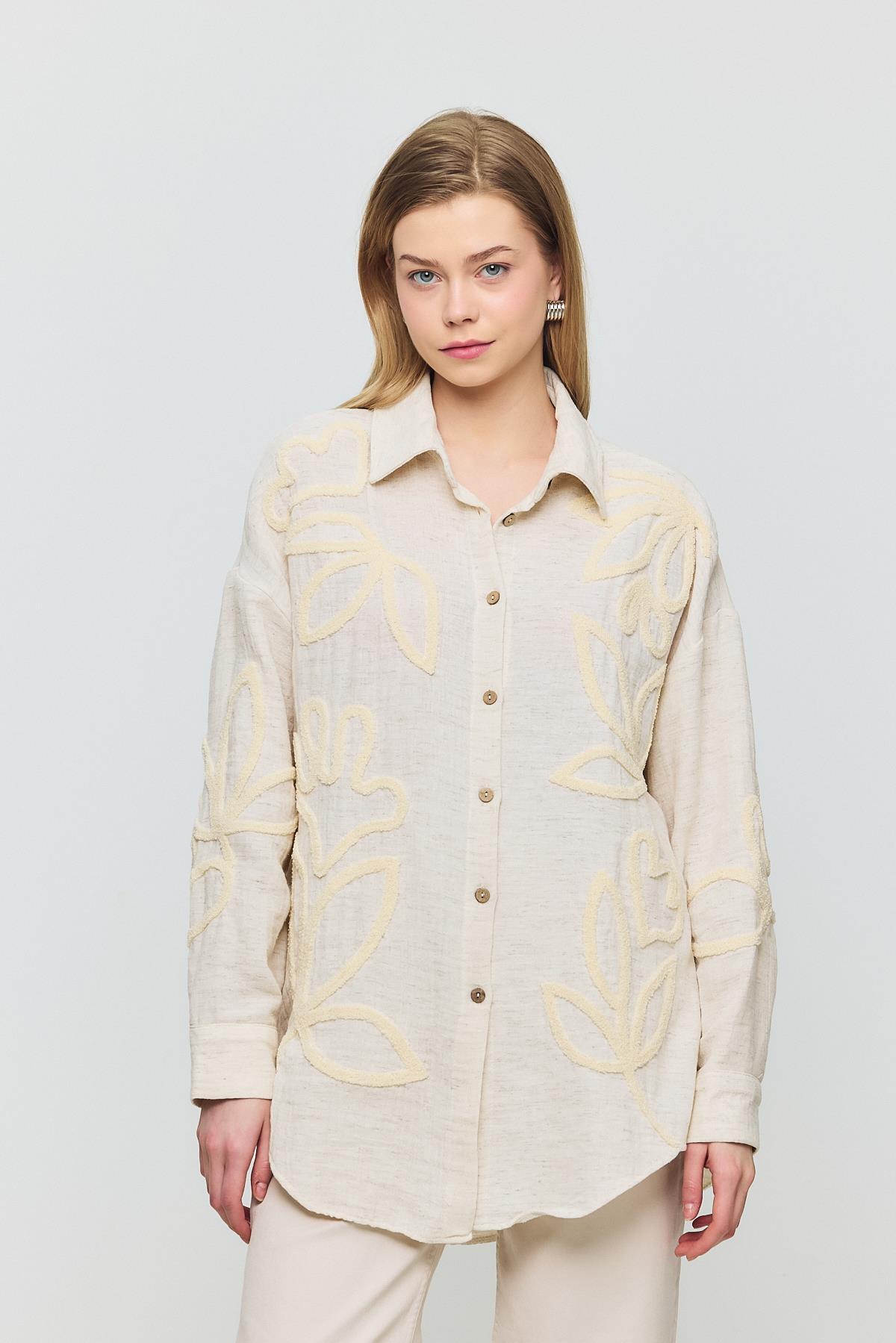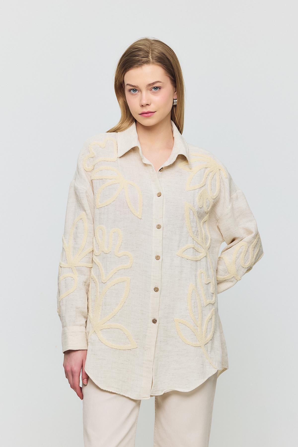 Bej Önü Yaprak Nakışlı Gömlek 2004