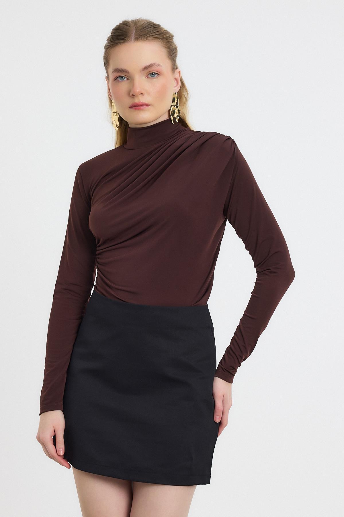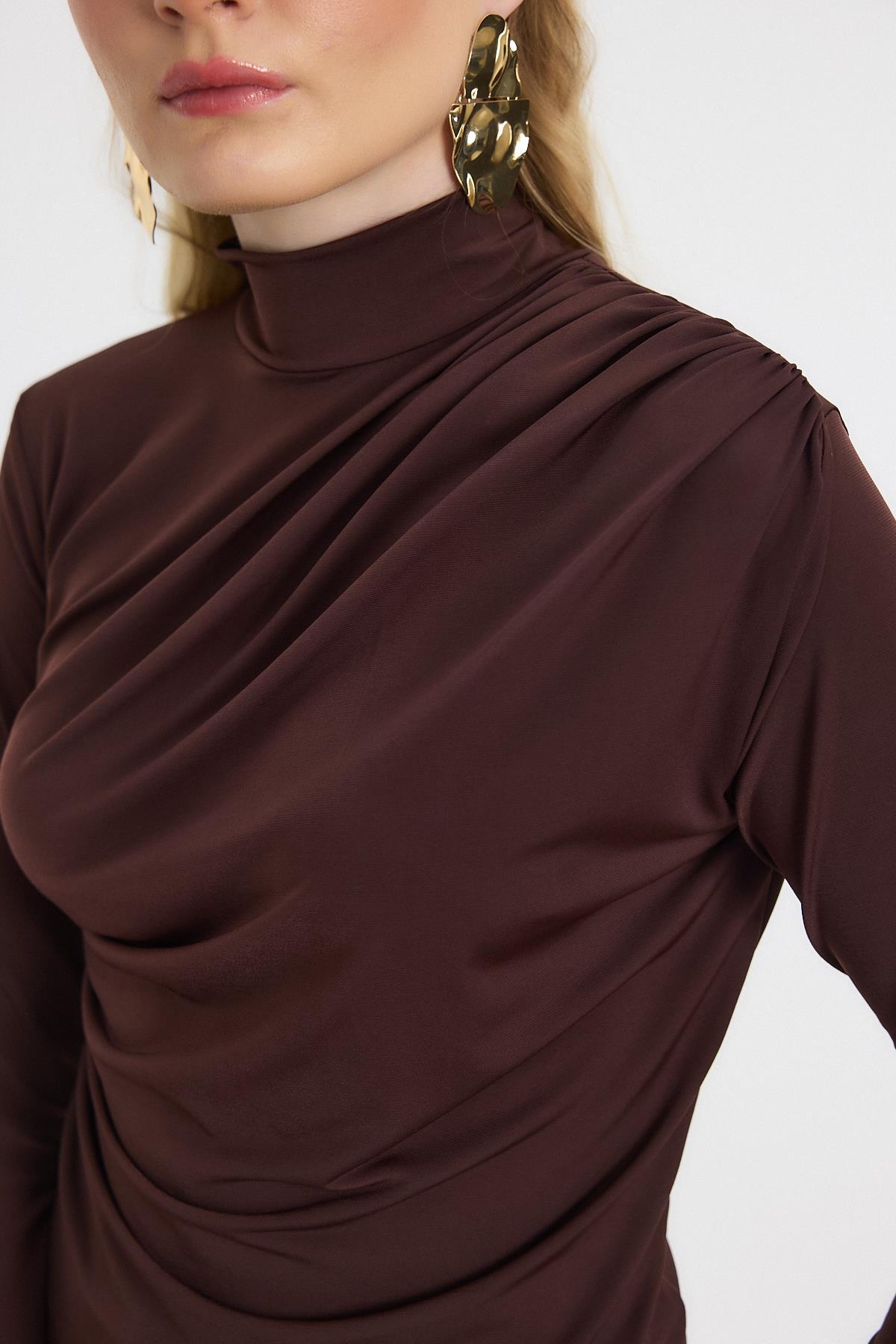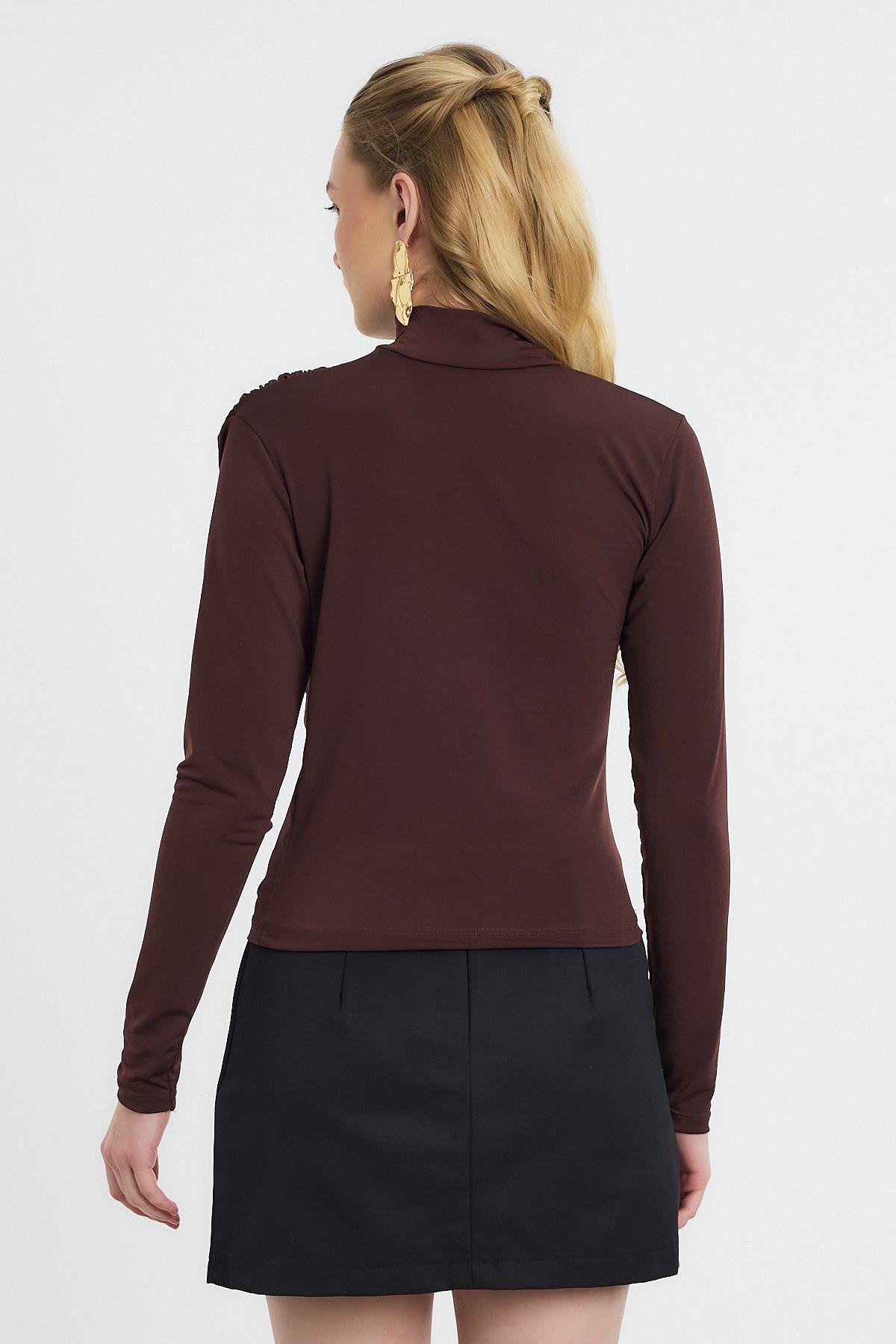 20059 Büzgü Detay Sandy Bluz Acı Kahve