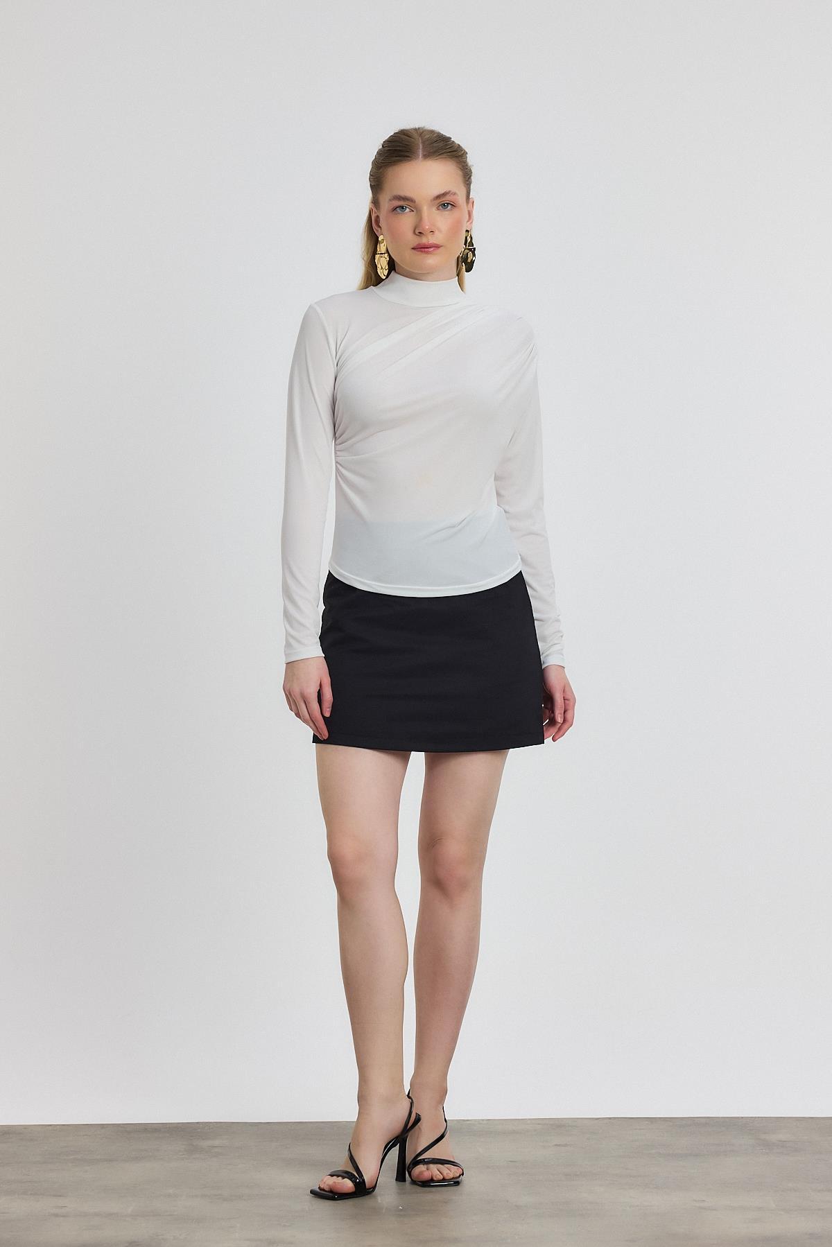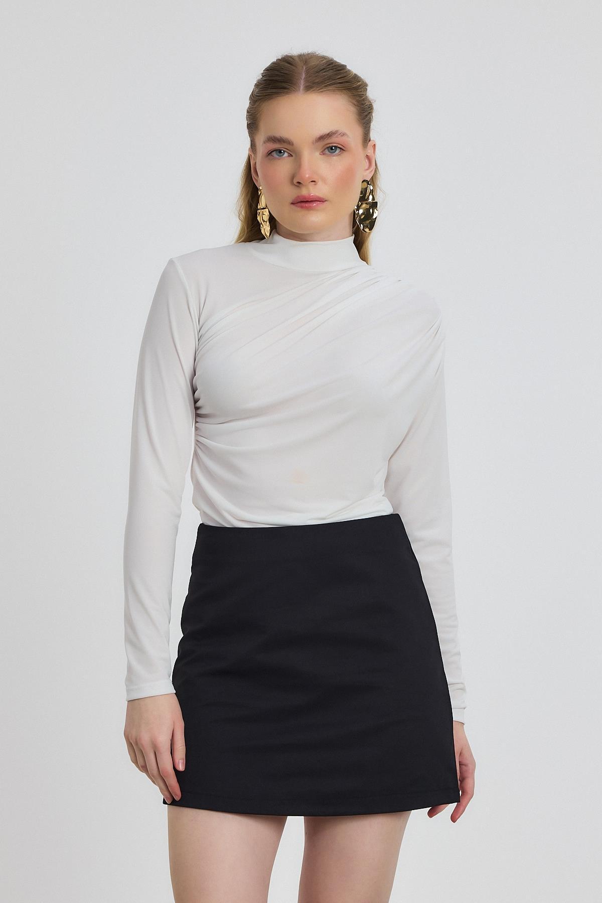 20059 Büzgü Detay Sandy Bluz Beyaz