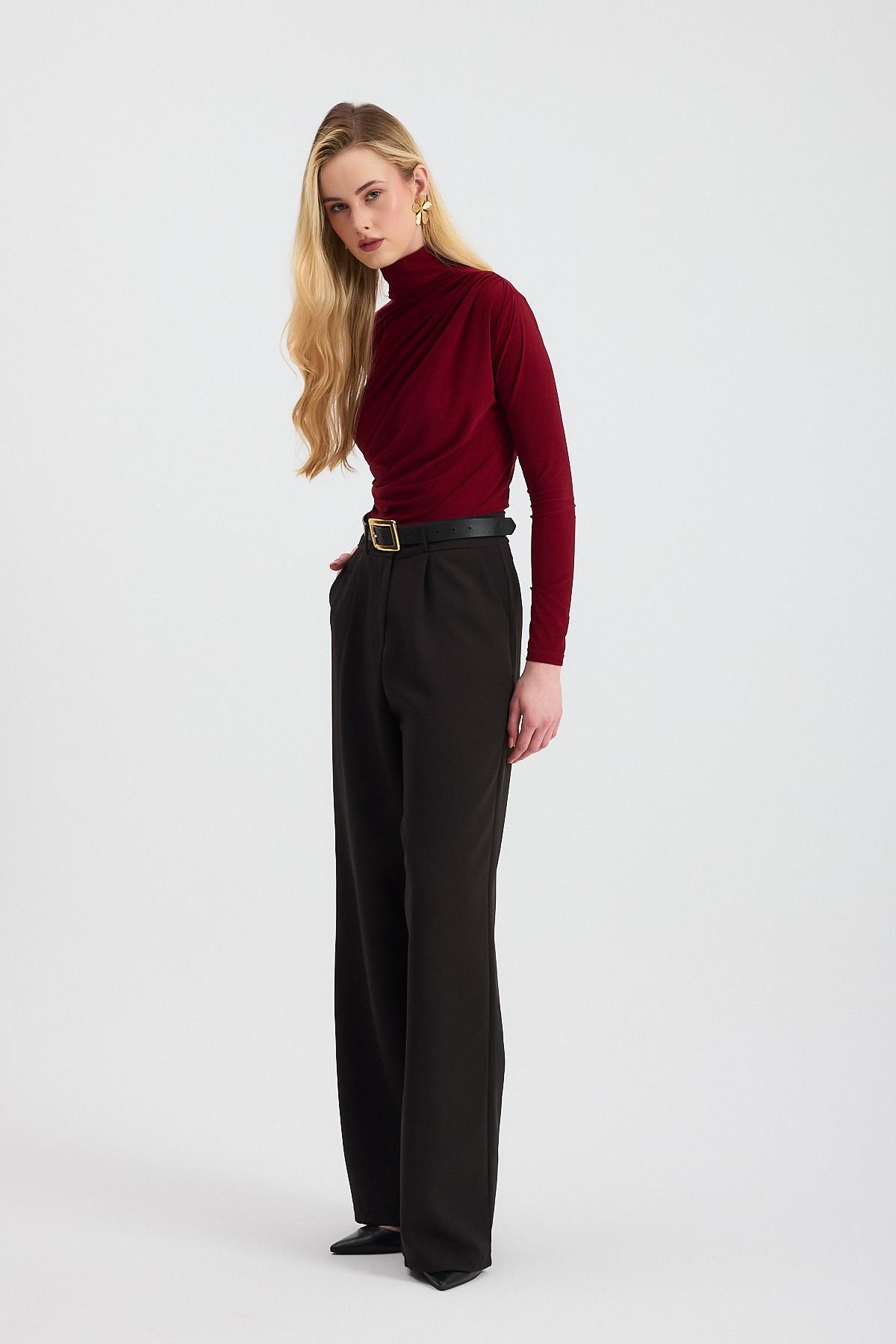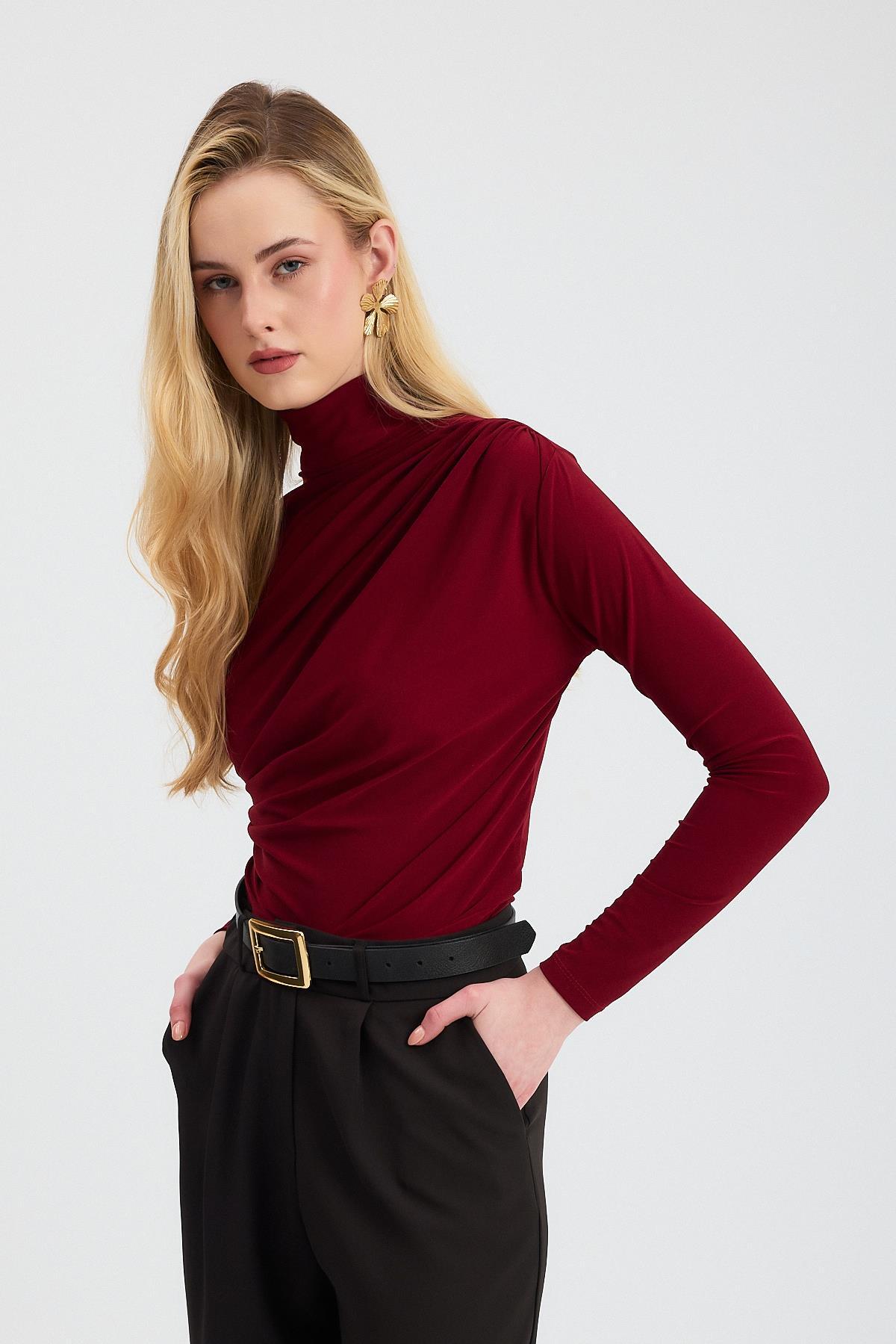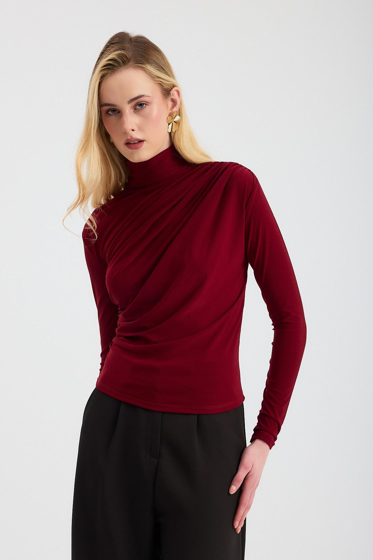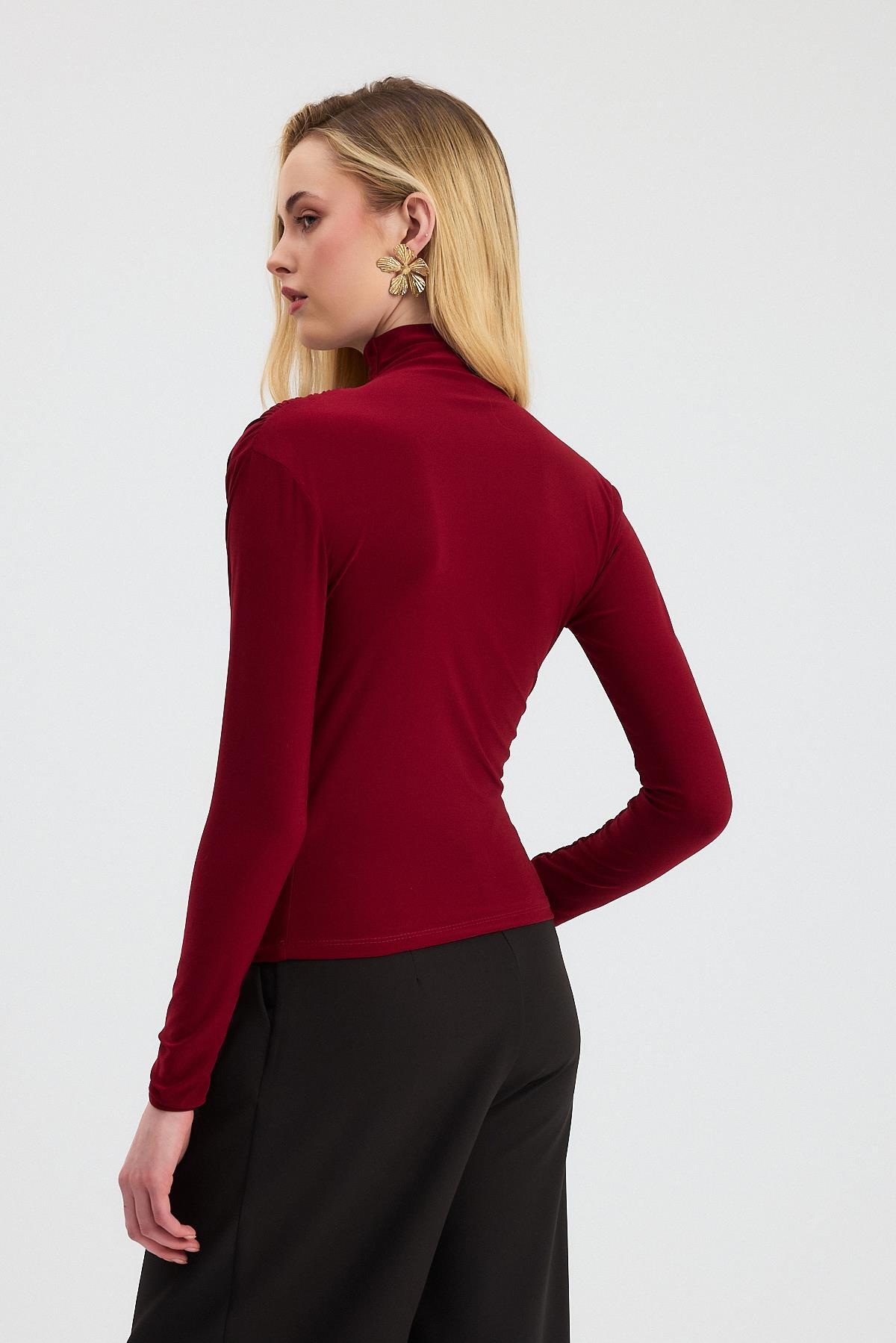 20059 Büzgü Detay Sandy Bluz Bordo