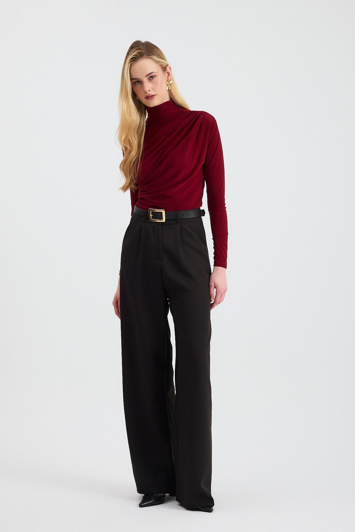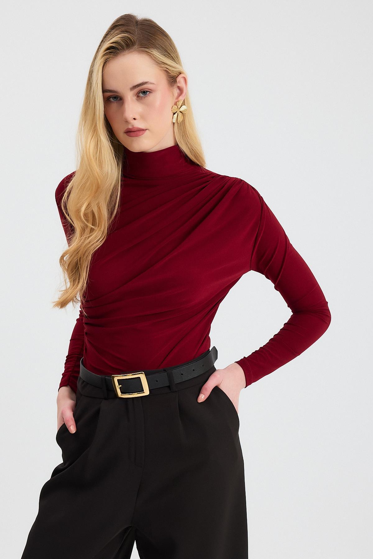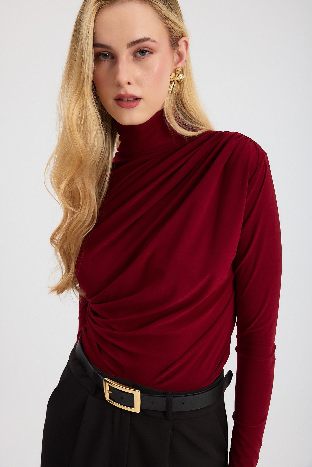 Bordo Büzgü Detay Sandy Bluz 20059