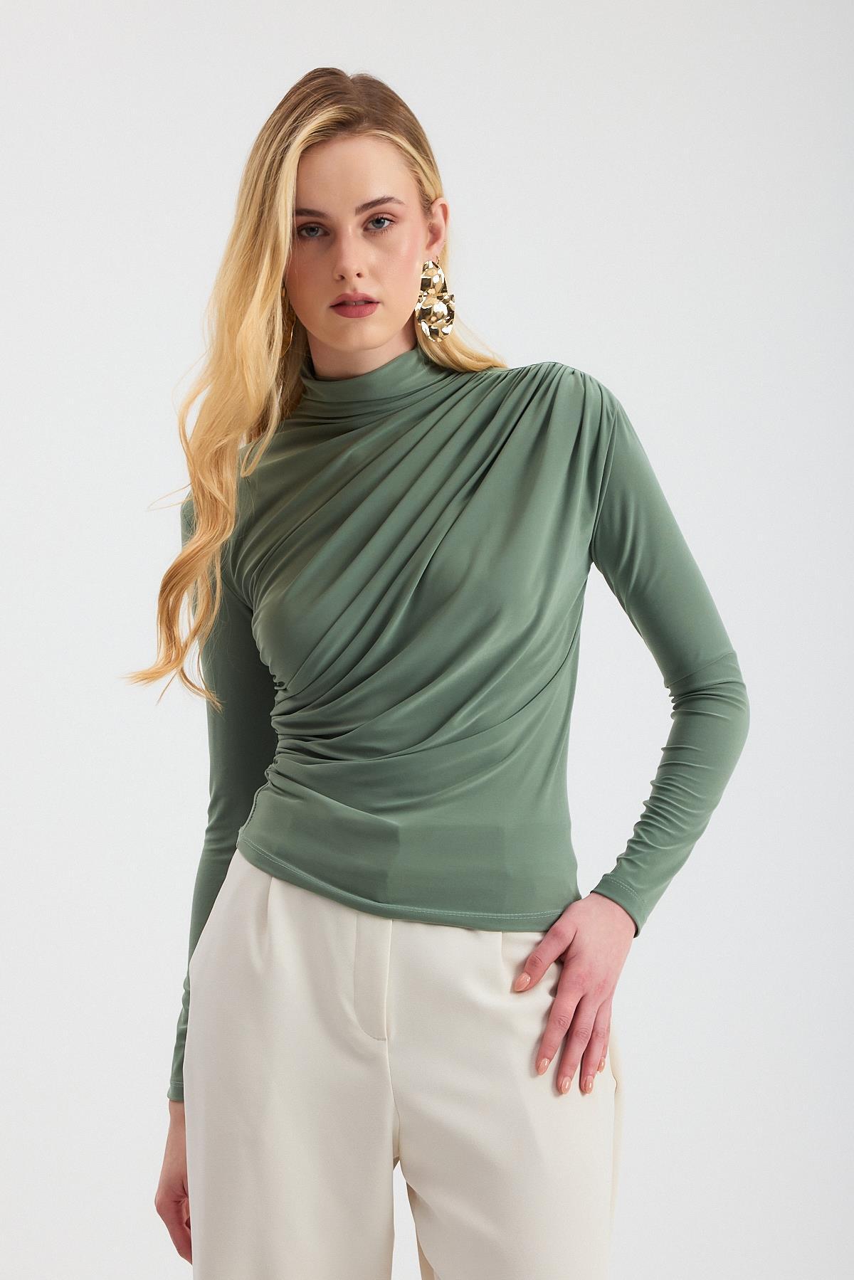 Çağla Yeşili Büzgü Detay Sandy Bluz 20059
