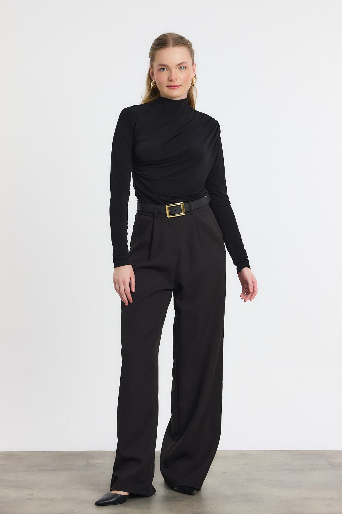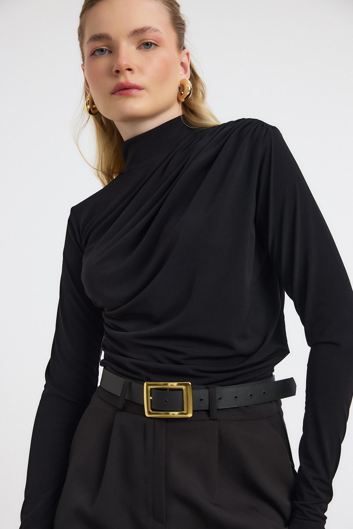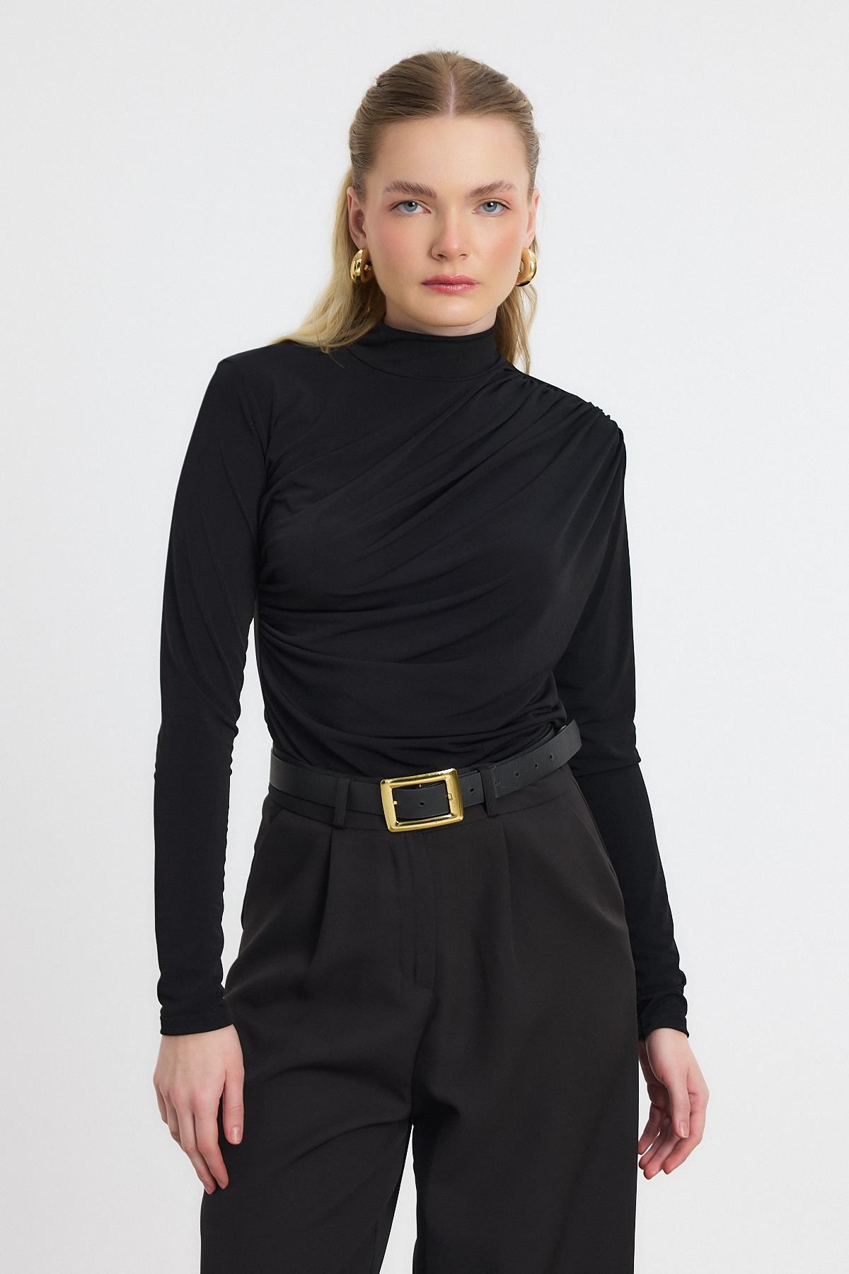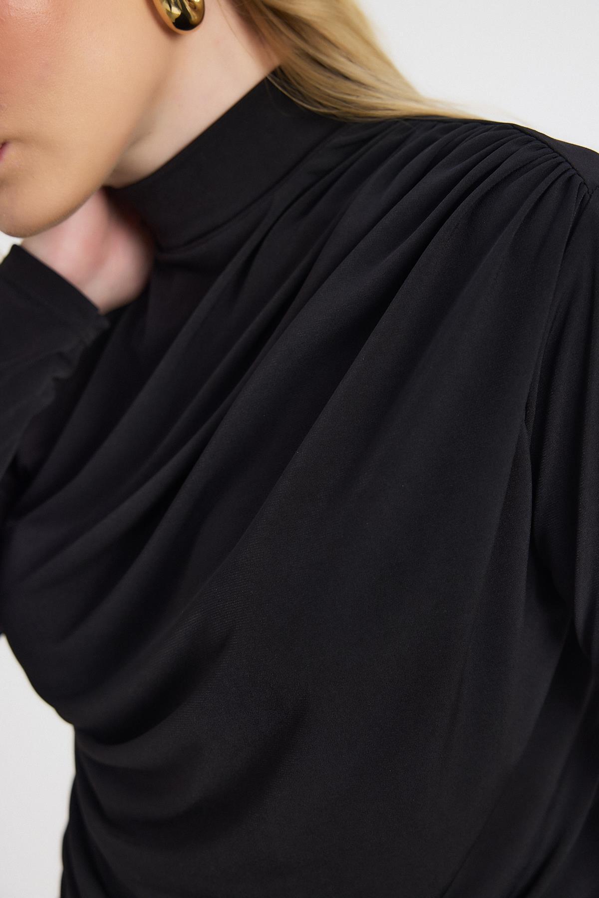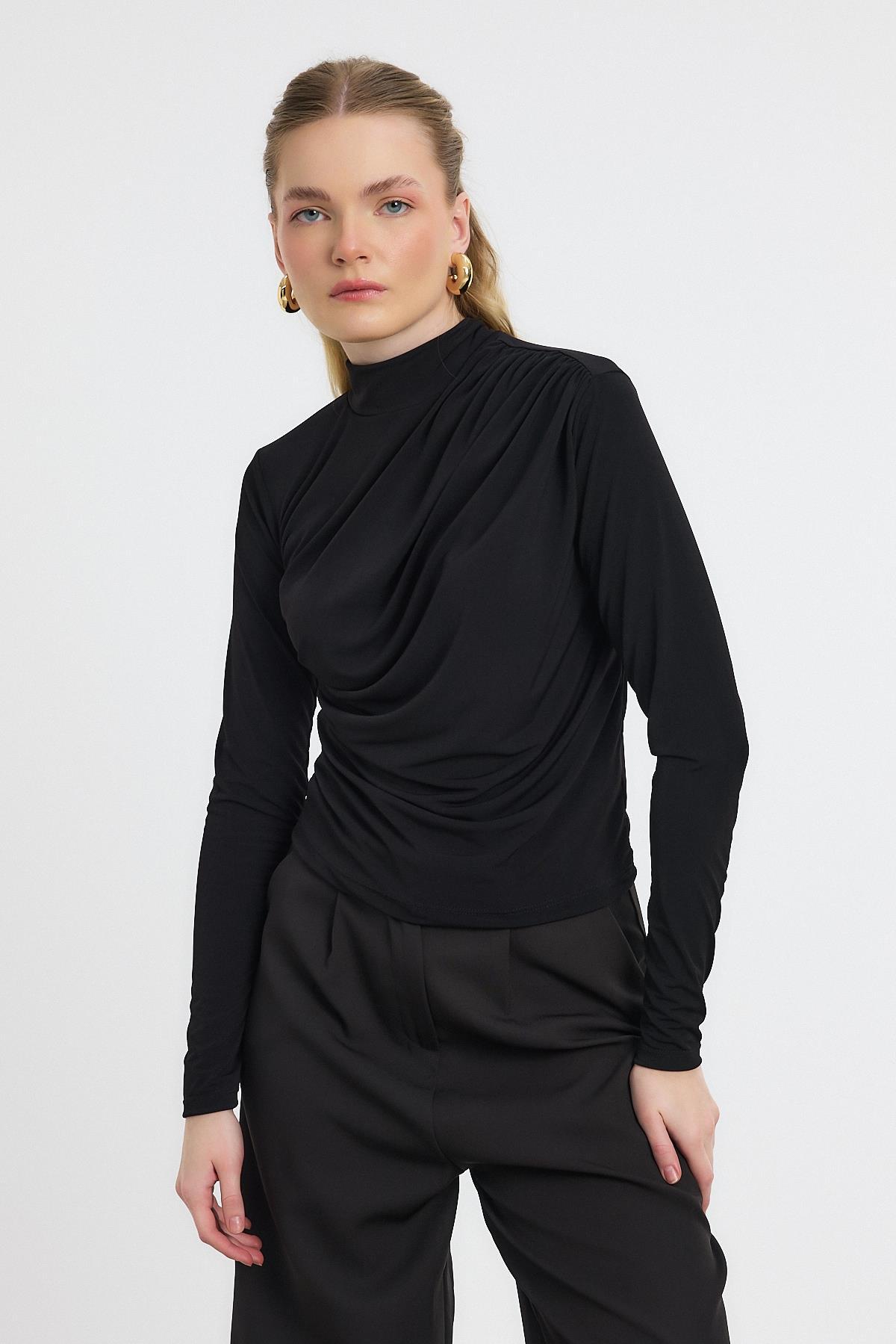 20059 Büzgü Detay Sandy Bluz Siyah