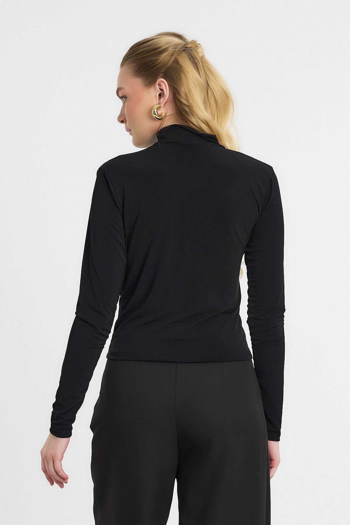 251298 Kruvaze Yaka Bluz Siyah