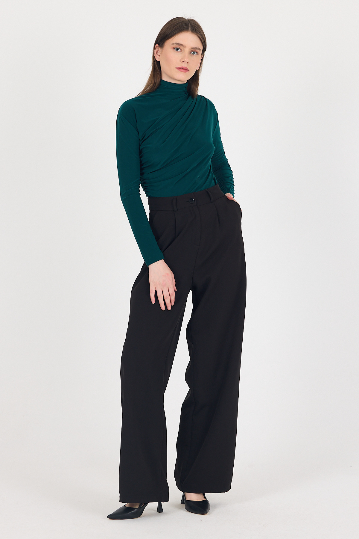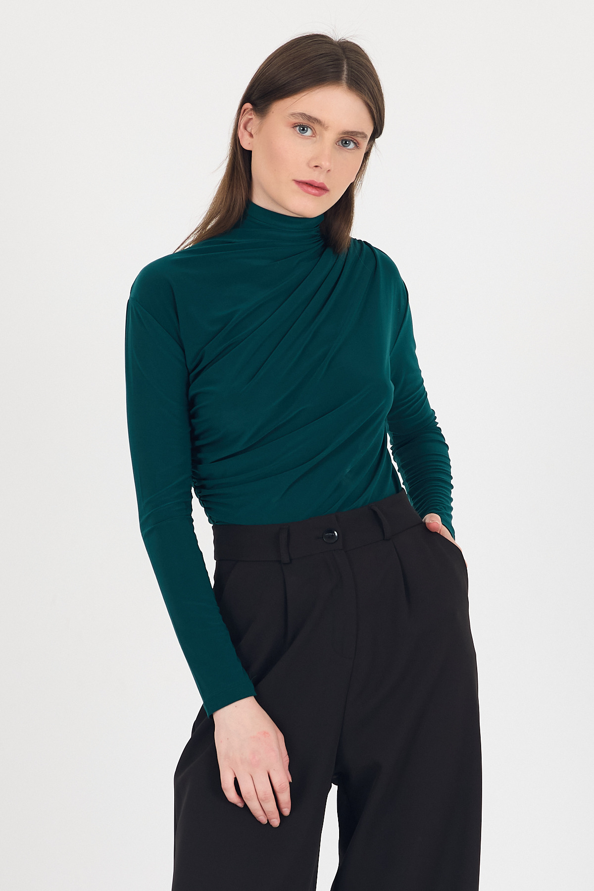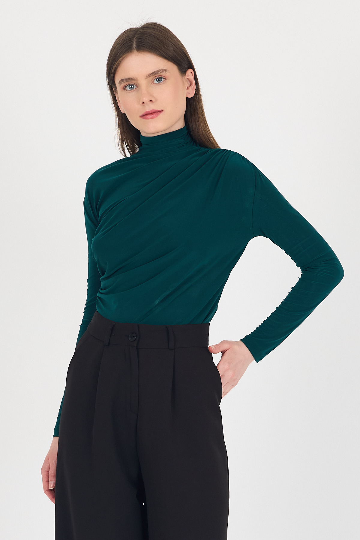 20059 Büzgü Detay Sandy Bluz Zümrüt