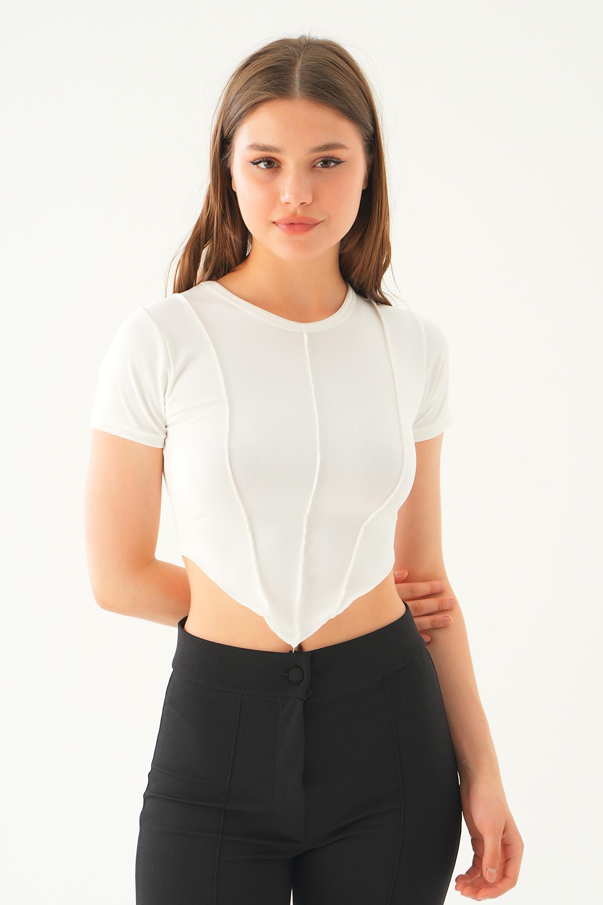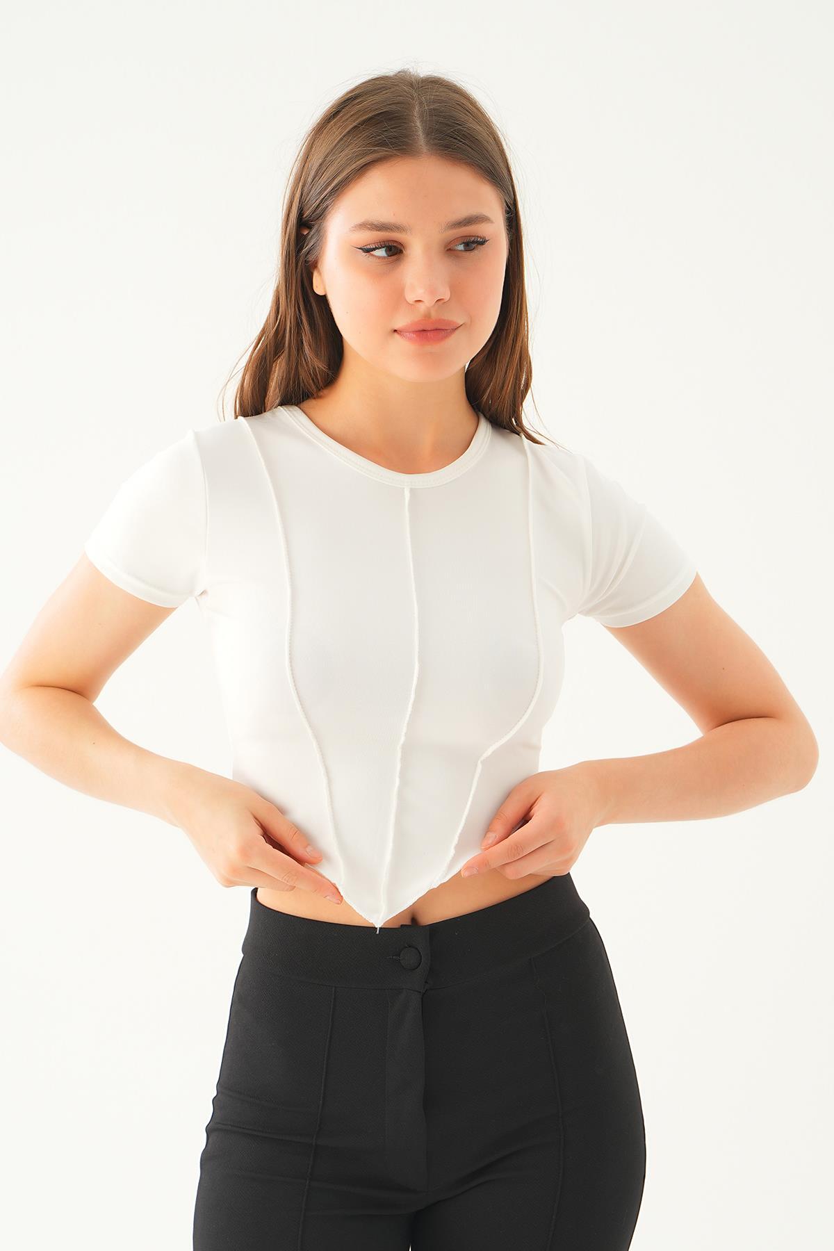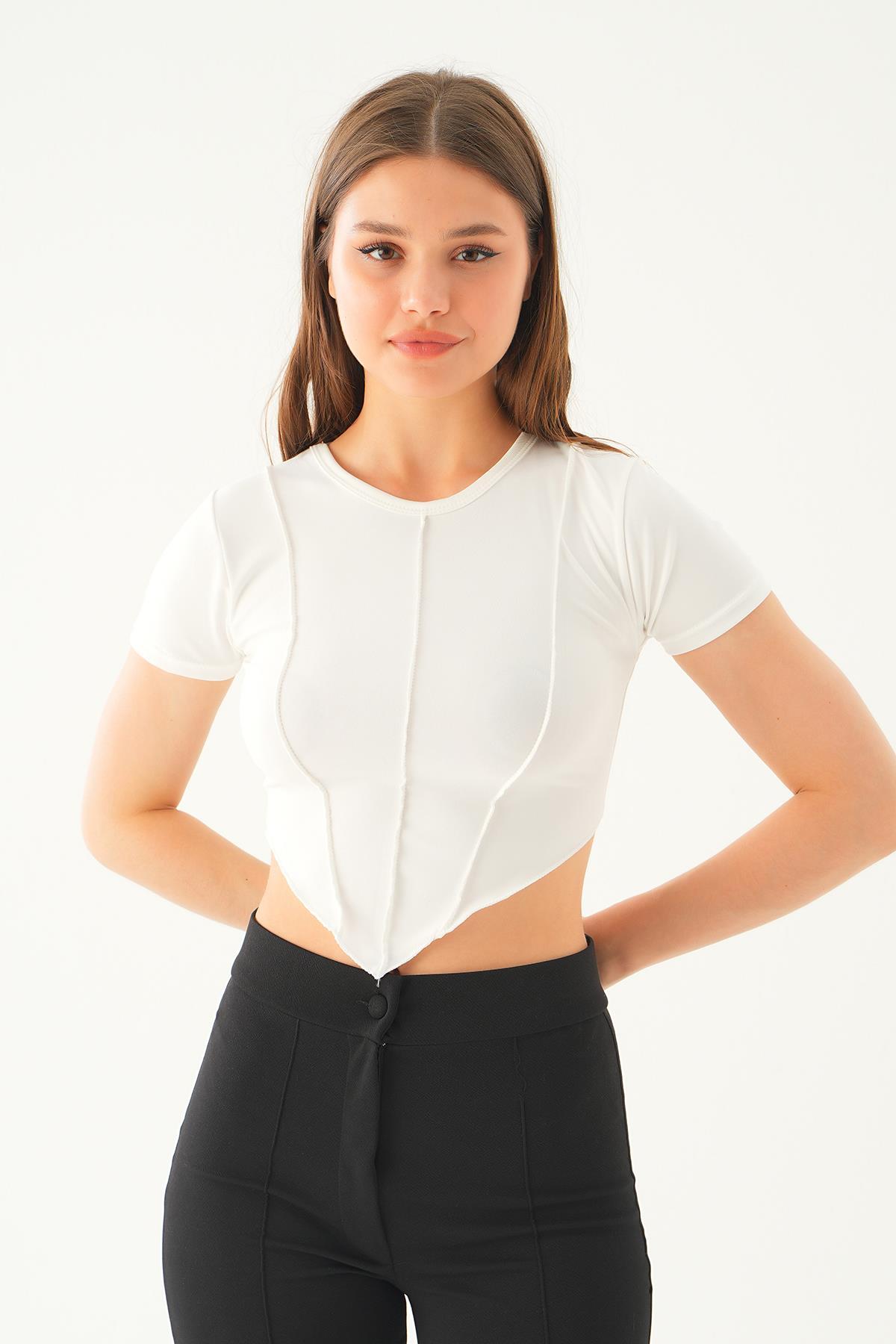 Beyaz Pis Dikiş Detay Bluz 2018