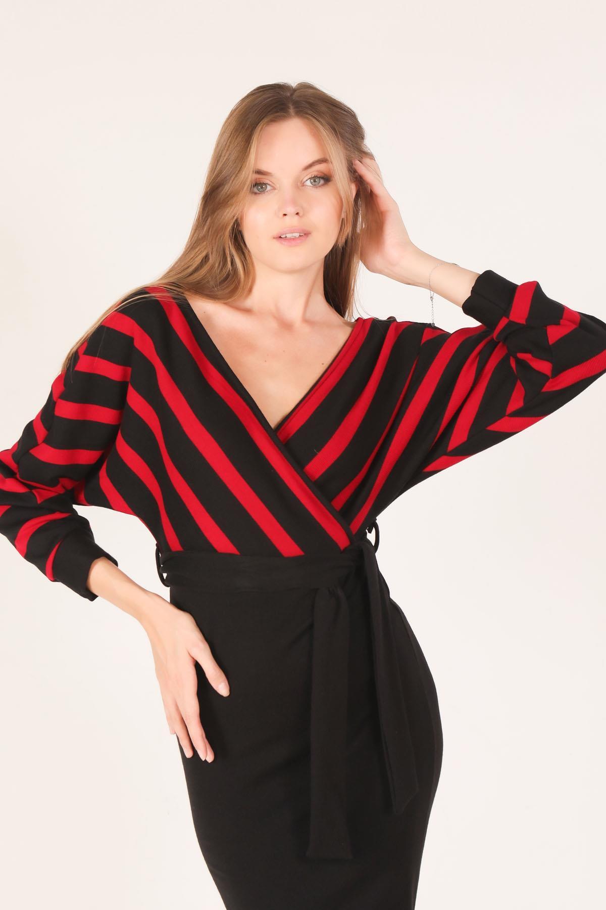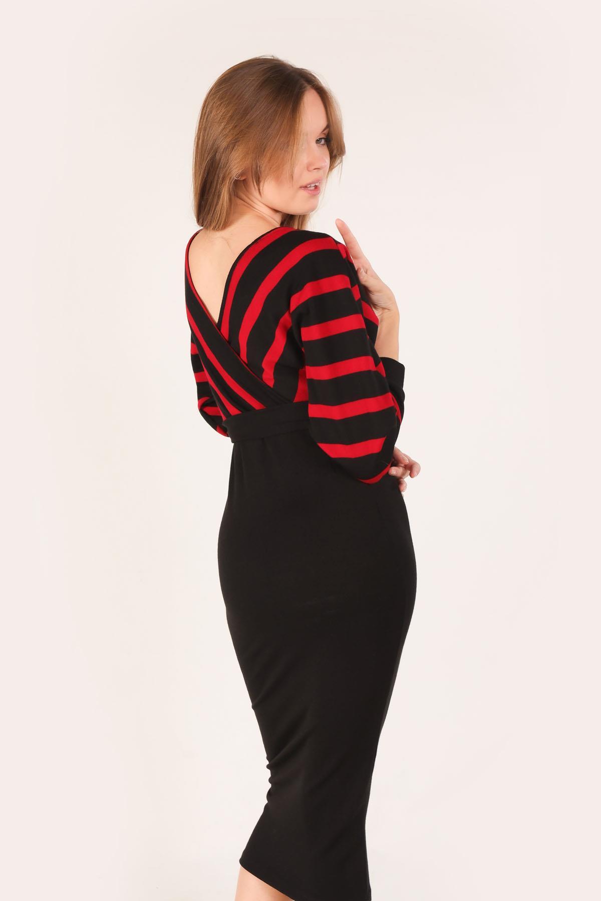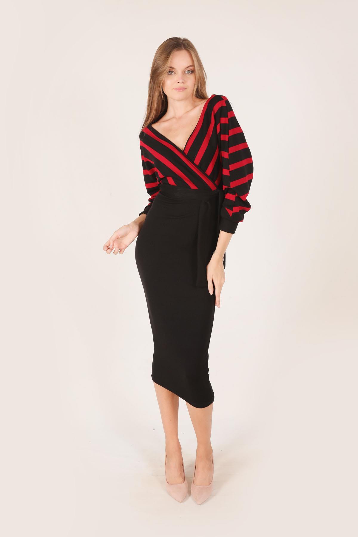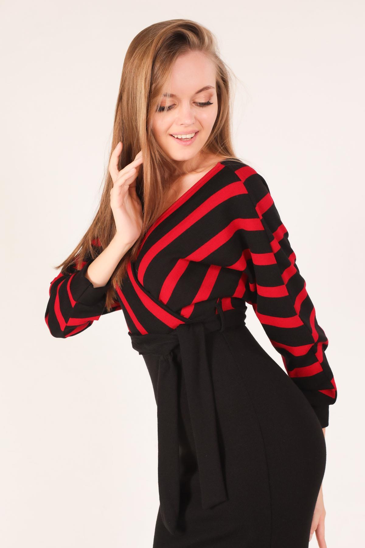 Kırmızı Bel Kuşaklı Triko Elbise 2021