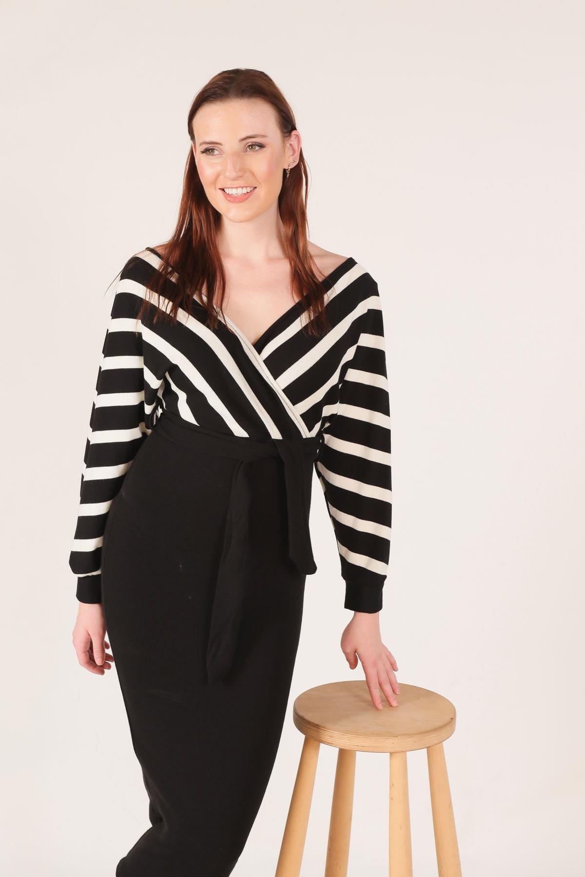Beyaz Bel Kuşaklı Triko Elbise 2021