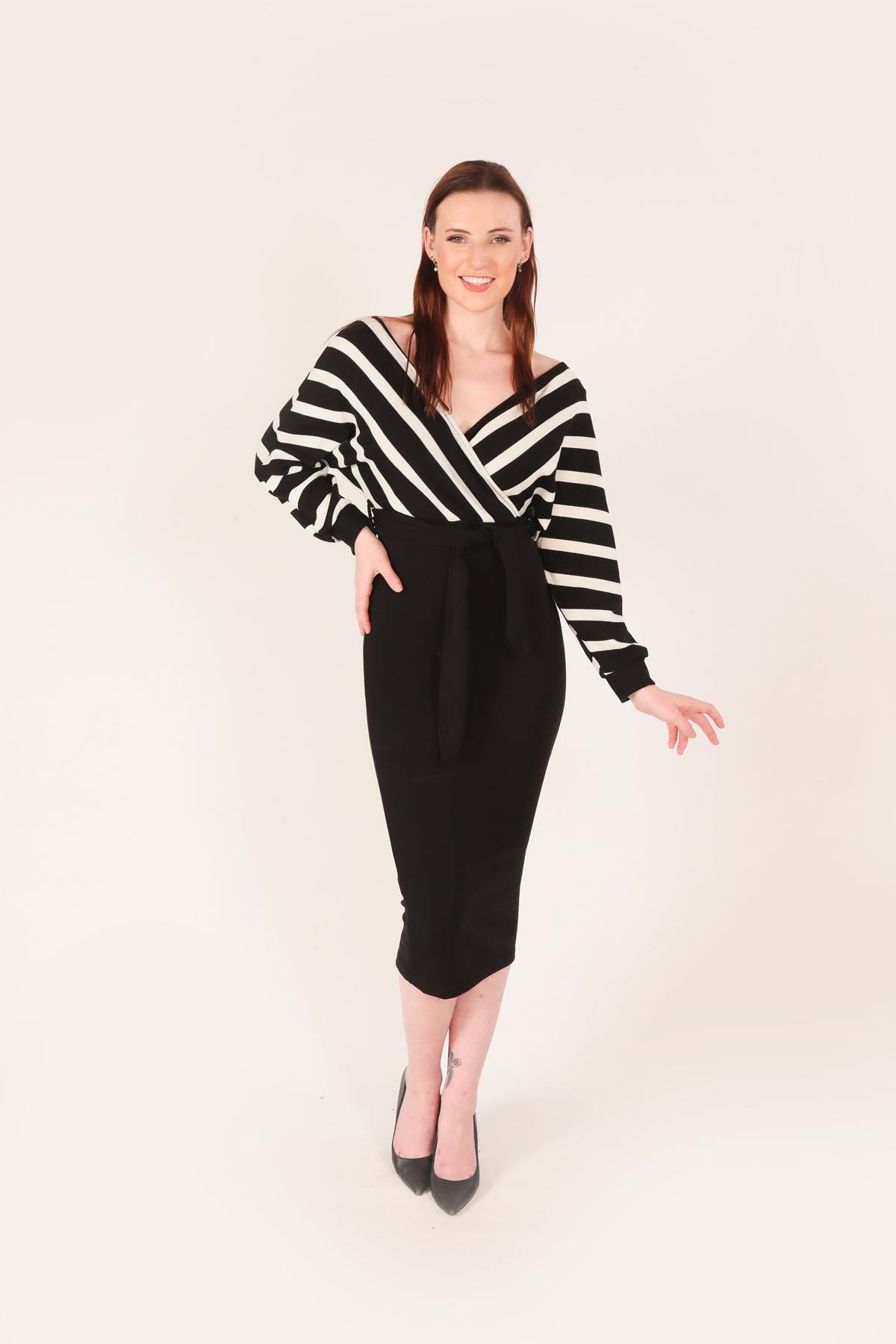 Siyah Düğmeli Kat Kat Elbise 2817
